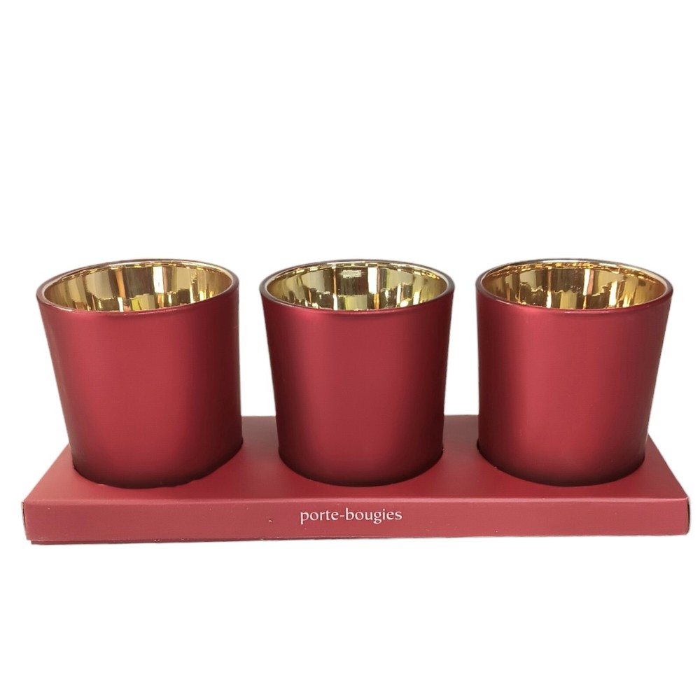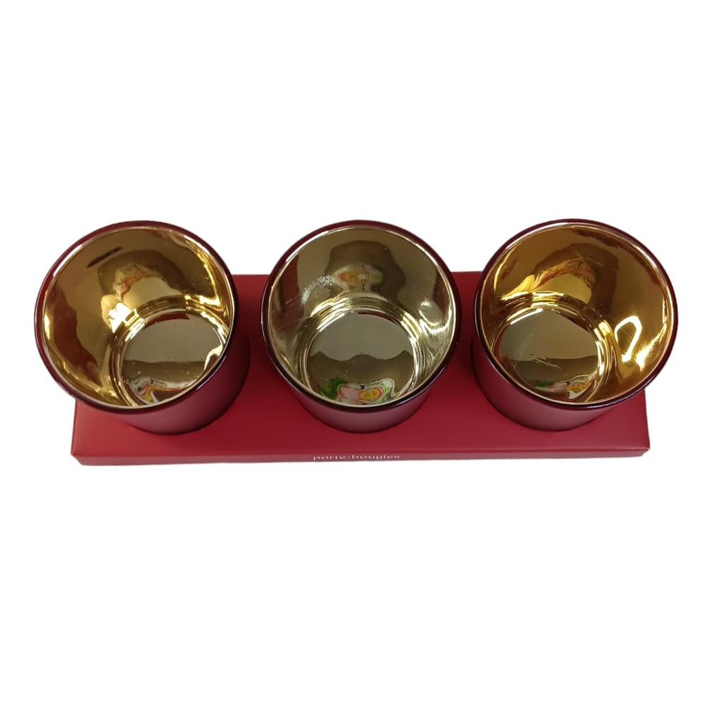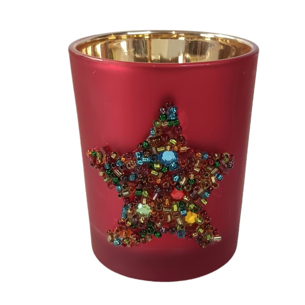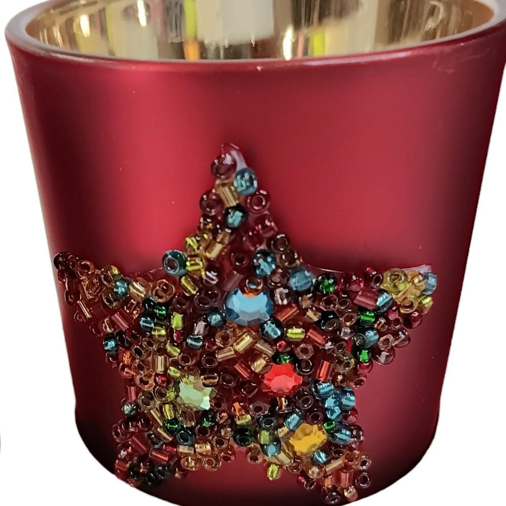 Pier One Glass Candleholders Red Frosted Star Bead Design Three in a box New in box Approximately 2.5" Tall For use with votive or tea light candles Excellent condition *Four boxes available *...