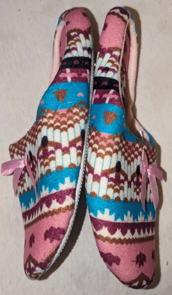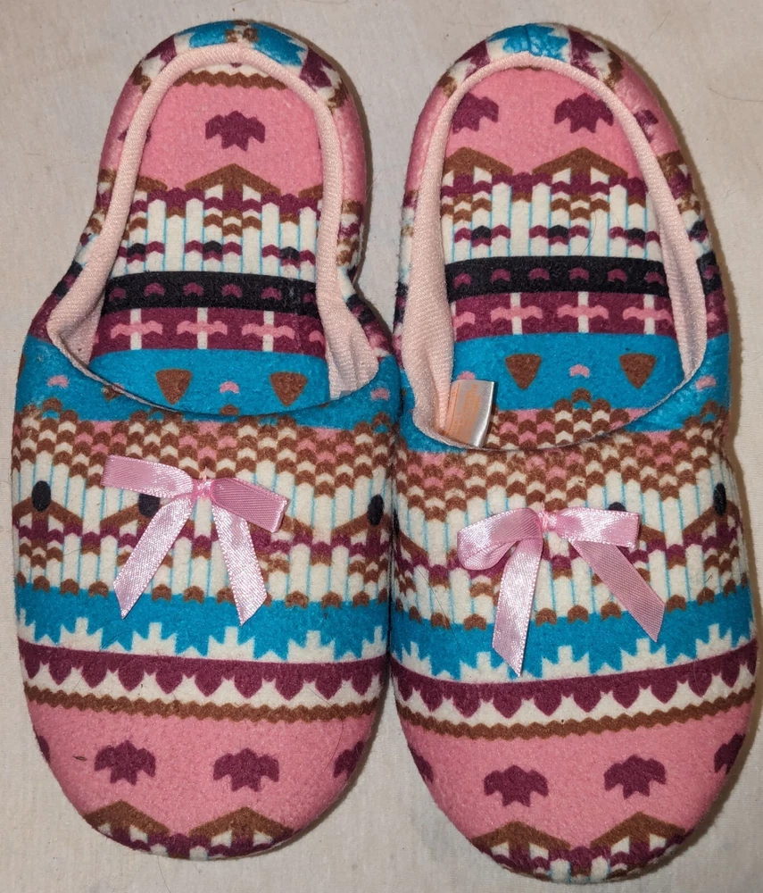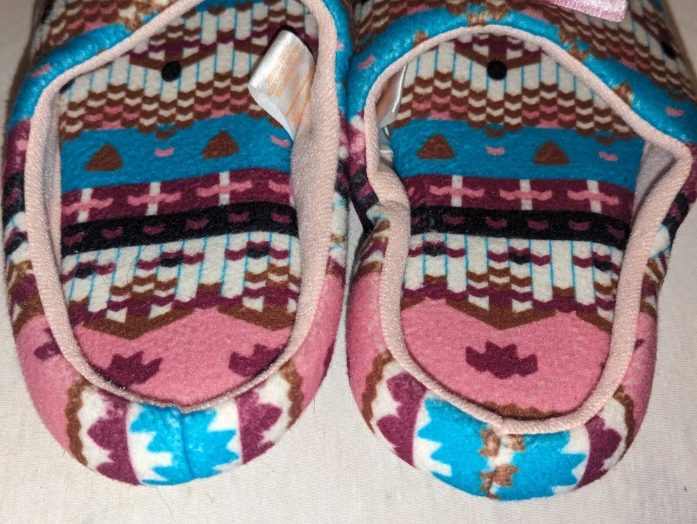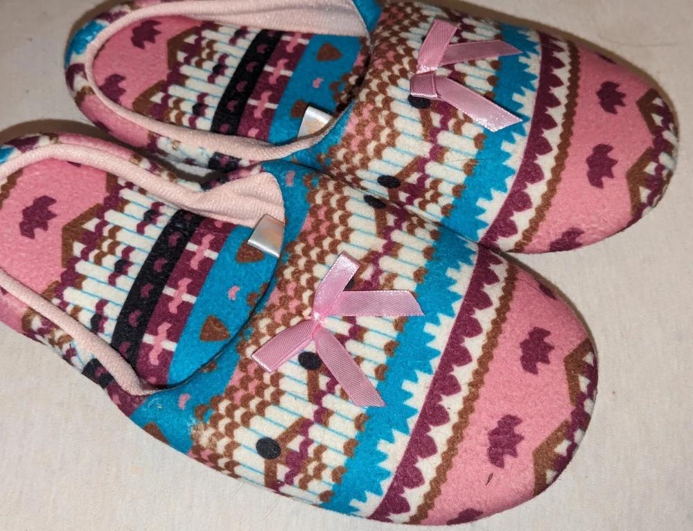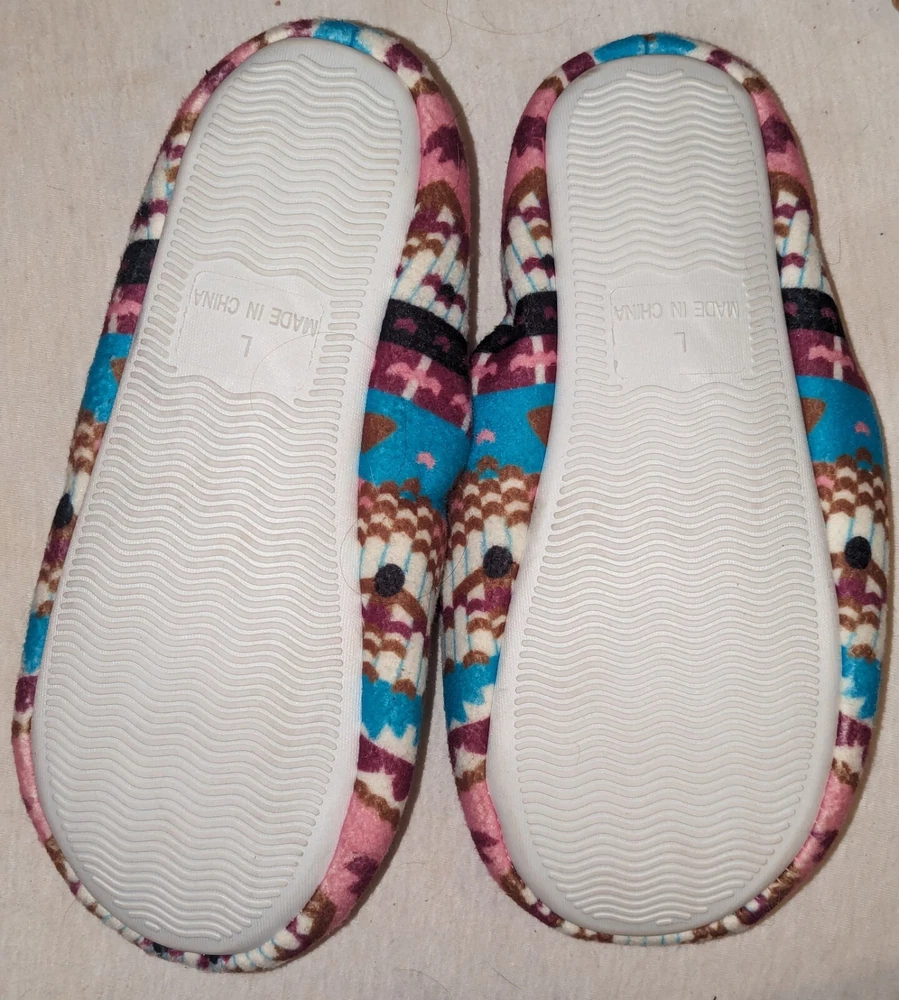 Canyon Sky Women's Aztec Pattern Soft & Comfy Slippers, size Large (L) Nice pre-owned condition. Minimal wear. No marks or damage. See all 12 pictures for more specific details and any imperfections.