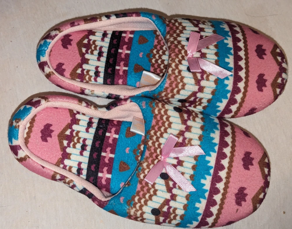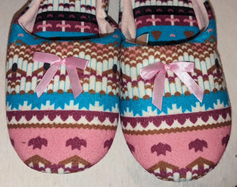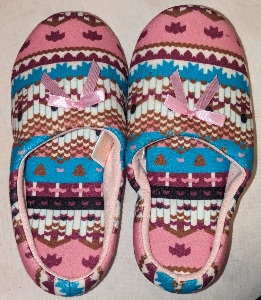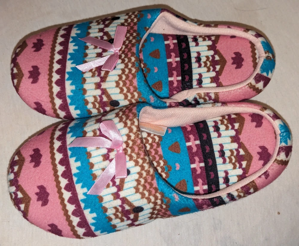 Canyon Sky Women's Aztec Pattern Soft & Comfy Slippers, size Large (L) Nice pre-owned condition. Minimal wear. No marks or damage. See all 12 pictures for more specific details and any imperfections.