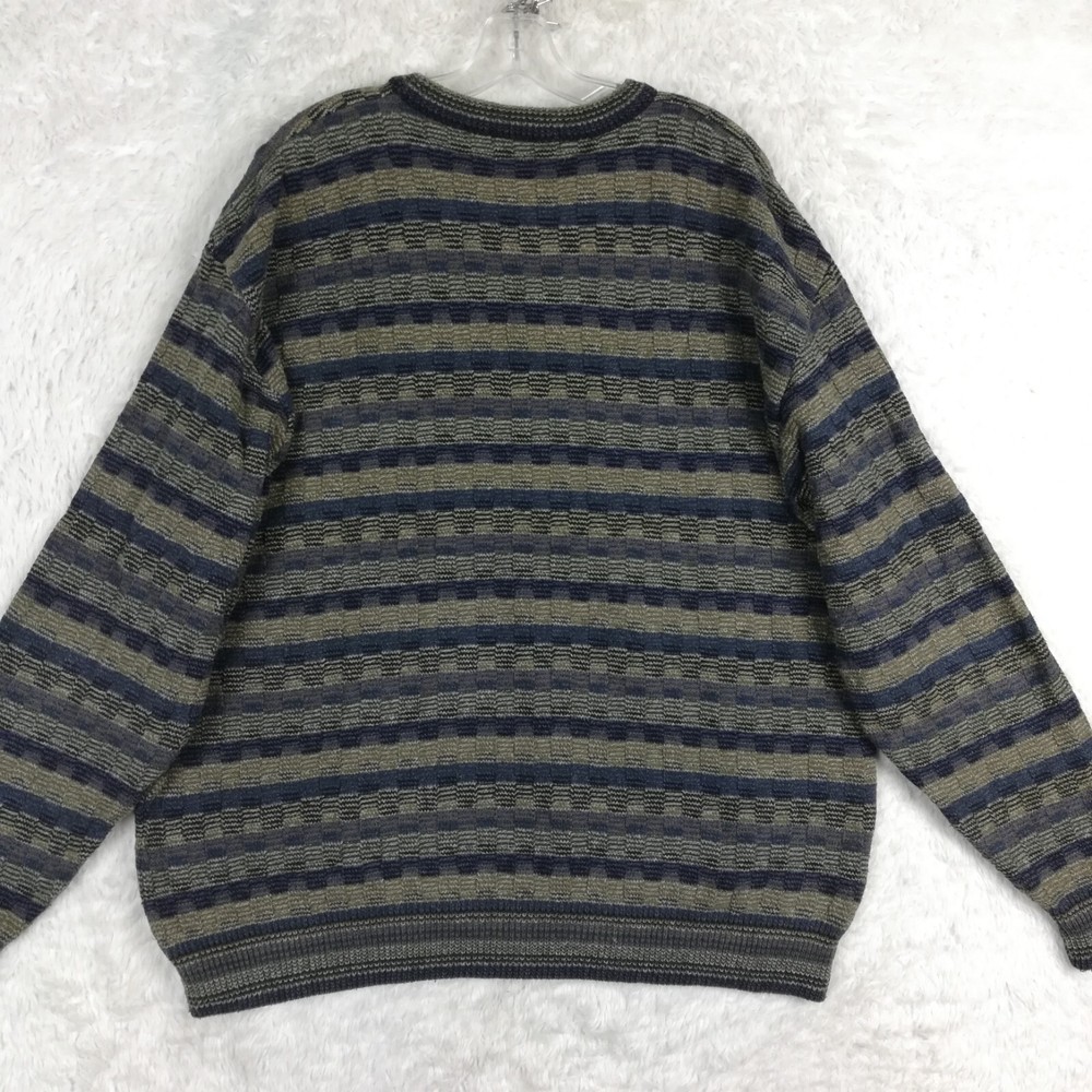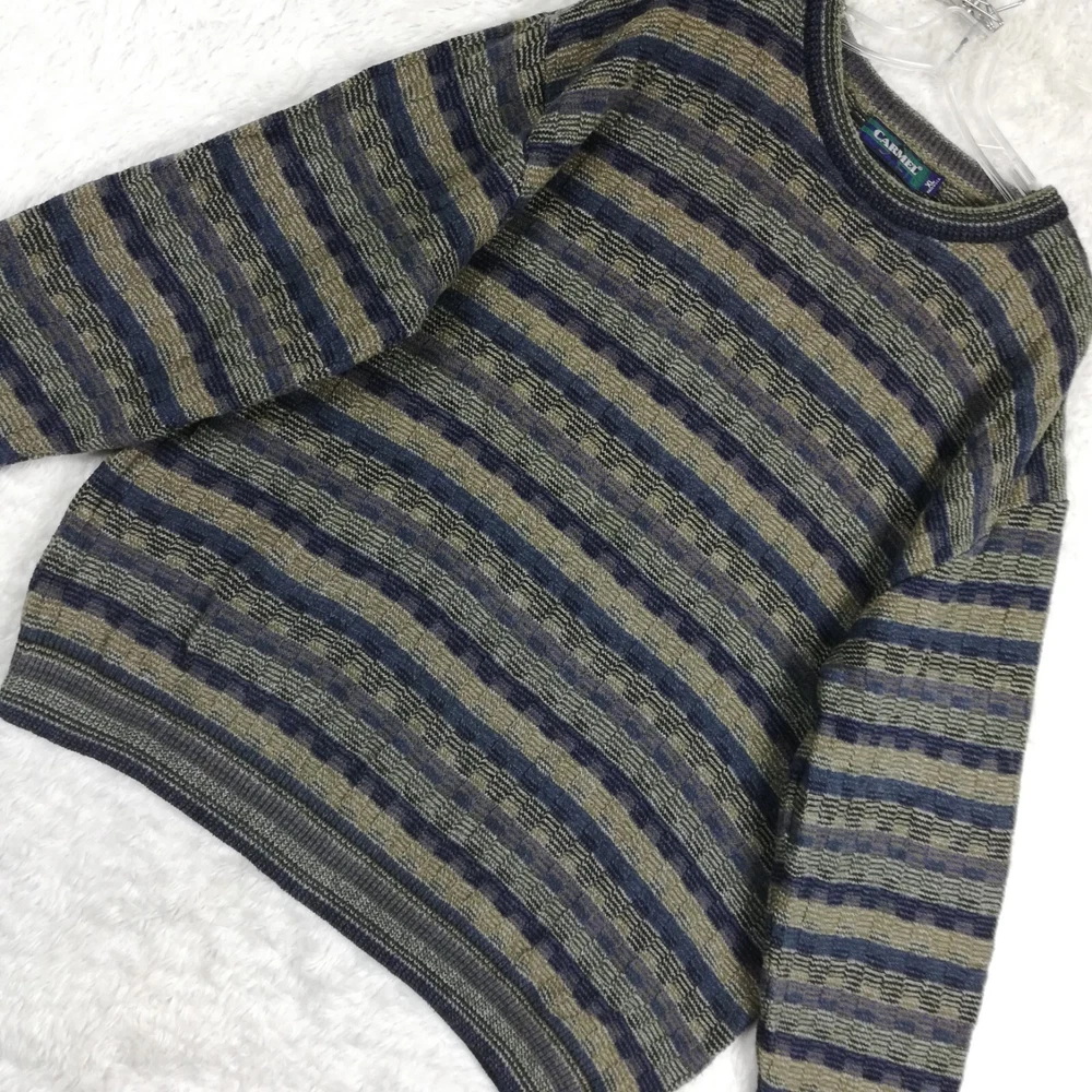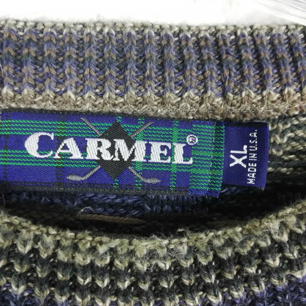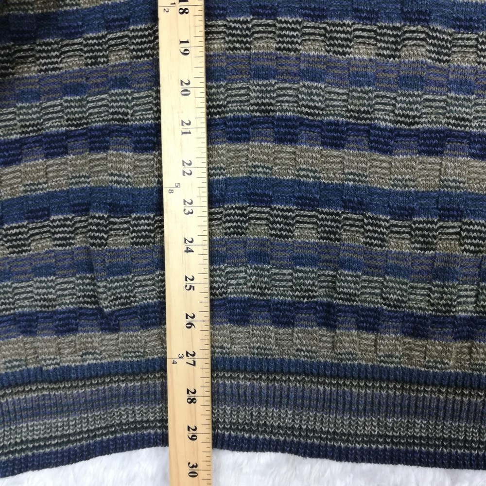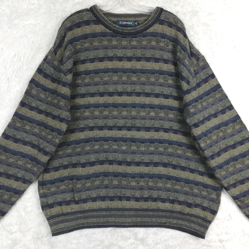 Carmel Mens Sweater Golf Grandpa Ribbed Knit Blue Brown Stripe Cozy Comfort XL Good Condition. Some faint wear. Missing material tag. Please review photos for measurements and condition. Item will be shipped within one business day. We ship items daily Monday-Friday. * Product color may vary slightly due to photographic lighting or your monitor settings.