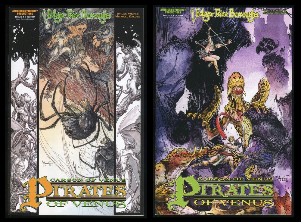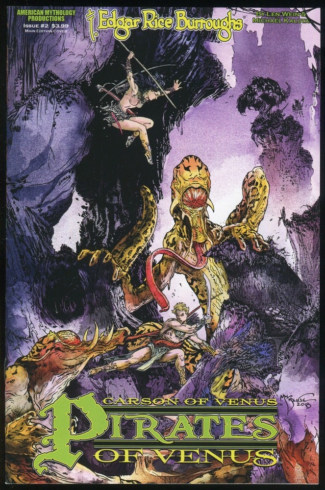 Carson of Venus: Pirates of Venus Comics Lot Adapted from Edgar Rice Burroughs’ Novel, “Pirates of Venus ”. Awesome!! Complete Cover A Collection. Writer: Len Wein Artist: Michael Wm. Kaluta Editors: James Kuhoric , S.A. Check, & Mike Wolfer All A Covers by: Michael Wm. Kaluta & Bezzz Studios Over four decades ago, comic legends Michael Kaluta and Len Wein developed an adaptation of Edgar Rice Burroughs' novel, Pirates of Venus for DC Comics. These vibrant stories were serialized as backup features in Korak Son of Tarzan. American Mythology is proud to present a remastered edition of this incredible work . In 2020, Edgar Rice Burroughs, Inc. launched the Edgar Rice Burroughs Universe, a series of interconnected novels by today's top sci-fi writers... And it all began at American Mythology with a groundbreaking comics prequel series to the first ERB Universe novel, Matt Betts' Carson of Venus: The Edge of All Worlds. Now, another entry into the Carson of Venus saga. American Mythology Productions presents, Edgar Rice Burroughs’ “Pirates of Venus ” . Story/Spoilers: In issue #1A, (Originally Published in DC Comics’ Korak, Son of Tarzan (1972) Issues #46-49) Pirates of Venus, Part 1 Mars-- or Bust ! 9 pages Carson Napier takes off for Mars but ends up on Venus instead; When he parachutes to the surface, he pincher-clawed beast attacks him; Three Venusians rescue him, but take him as their captive. Pirates of Venus, Part 2 The Girl in the Garden 6 pages As a Venusian captive, Carson learns the Venusian language, customs, and more. With his education almost complete... Carson spies some strangers in the Venusian jungle and learns that their intent is to kidnap a woman. Upon seeing the woman, Carson thinks that she is the most beautiful woman he has ever seen. Filled with renewed purpose, Carson springs in action to thwart the kidnappers and save the woman. Pirates of Venus, Part 3 Battle Cry ! 6 pages During a jog, Carson comes upon some thieves; He realizes that the thieves mean to harm a beautiful woman in the garden; He leaps into action believing he will startle the intruders, instead they turn to fight, with weapons in hand; Though out-numbered five-to-one, Carson battles them, but then retreats when he notices several Venusian warriors coming after the intruders too. Pirates of Venus, Part 4 Gathering Tarel 7 pages While jogging, Carson comes upon thieves and battles them; When Venusian warriors enter the scene, Carson retreats; Carson hunts for "Tarel" in the lush Venusian forest with Duran's son, Kamlotad . Finally in issue #2A, (Originally Published in DC Comics’ Korak, Son of Tarzan (1973) Issues #50-53) Pirates of Venus, Part 5: Terror from the Sky 6.5 pages While searching for "Tarel" (cobwebs), Karson and Kamlot climb up a tree only to find a giant spider ready to protect its web; While going home through the forest, they get attacked by flying furies ( Klangan ) Pirates of Venus, Part 6: Mutiny at Sea 6.5 pages After Carson and Kamlot hunt for "Tarel" (cobwebs), the two go home through the vast Venusian forest and get attacked by flying furies ( Klangan ); While a prisoner on a Thorist's warship, Carson begins to organize a group of "Soldiers of Liberty" and awaits for their chance to strike; Days later, a sea-monster attacks the boat; Carson's and his Soldiers of Liberty attack the ship's captain and his men; After the mutiny, Carson is hailed as the new captain. Pirates of Venus, Part 7: Duare ...Princess of Venus 5 pages Carsons crew of liberated prisoners, now pirates, set sail to the enemy's land to fight the Thoras ; Another Thora warship confronts them; The ship's captain has captured Duare , the Princess of Venus. Pirates of Venus, Part 8: Catastrophe 5 pages It's been several months since Carson of Venus rescued Princess Duare ; Now they sail together on his ship, arguing about love; Winged furies ( Klangans ) burst into the room and kidnap the princess. Comics lot contains : Carson of Venus: Pirates of Venus {Complete Cover A Collection} (2018-2019) Issues #1-2 . American Mythology Productions Comics are bagged & boarded and will be carefully / securely packaged then shipped via USPS Priority Mail to ensure that it arrives to you perfectly and quickly . All First Printings Publisher: American Mythology Productions Publication Date: 2018 - 2019 Format per comic: FC, 32 pages, Comic, 10.25" x 6.5" UPC: 856091006410 90111 Collectible Entertainment note: Comics #1A,2A are in Fine to Fine + condition . Nice Set ! Please See Scans!! A must have for any serious Edgar Rice Burrough and/or Carson of Venus collector / enthusiast . A fun & entertaining read . Highly Recommended. Please read return policy. Please check out all my other X-Files or Ralph Snart or 3-D or TMNT or X-Men or Sherlock Holmes or Mummy or Frankenstein or Dracula or Sergio Aragonés or Groo or Tarzan or Conan or Magazines or Horror or Werewolf or Zombie or Frank Frazetta or GI Joe or War or Judge Dredd or Infinity or Marvel Secret Wars or Crisis on Infinite Earths or Spawn or Venom or Carnage or Toxin or Kolchak or Mad Max or Kolchak or Star Trek or Starship Troopers or Science Fiction or Horror or James Bond or Adventure Time or Movie Adaptations or Spider-Man or Flash Gordon or Richard Corben or Indiana Jones or Star Wars or Jurassic Park or Dinosaurs Attack or Mars Attacks or Planet of the Apes or Godzilla or Thing or Robocop or Aliens or Predator or Terminator listings by visiting my store and typing X-Files or Ralph Snart or 3-D or TMNT or X-Men or Sherlock Holmes or Mummy or Frankenstein or Dracula or Sergio Aragonés or Groo or Conan or Tarzan or Magazine or Horror or Werewolf or Zombie or Frank Frazetta or GI Joe or War or Judge Dredd or Infinity or Marvel Secret Wars or Crisis on Infinite Earths or Spawn or Venom or Carnage or Toxin or Mad Max or Kolchak or Star Trek or Starship Troopers or Science Fiction or James Bond or Adventure Time or Movie or Spider-Man or Flash Gordon or Rich