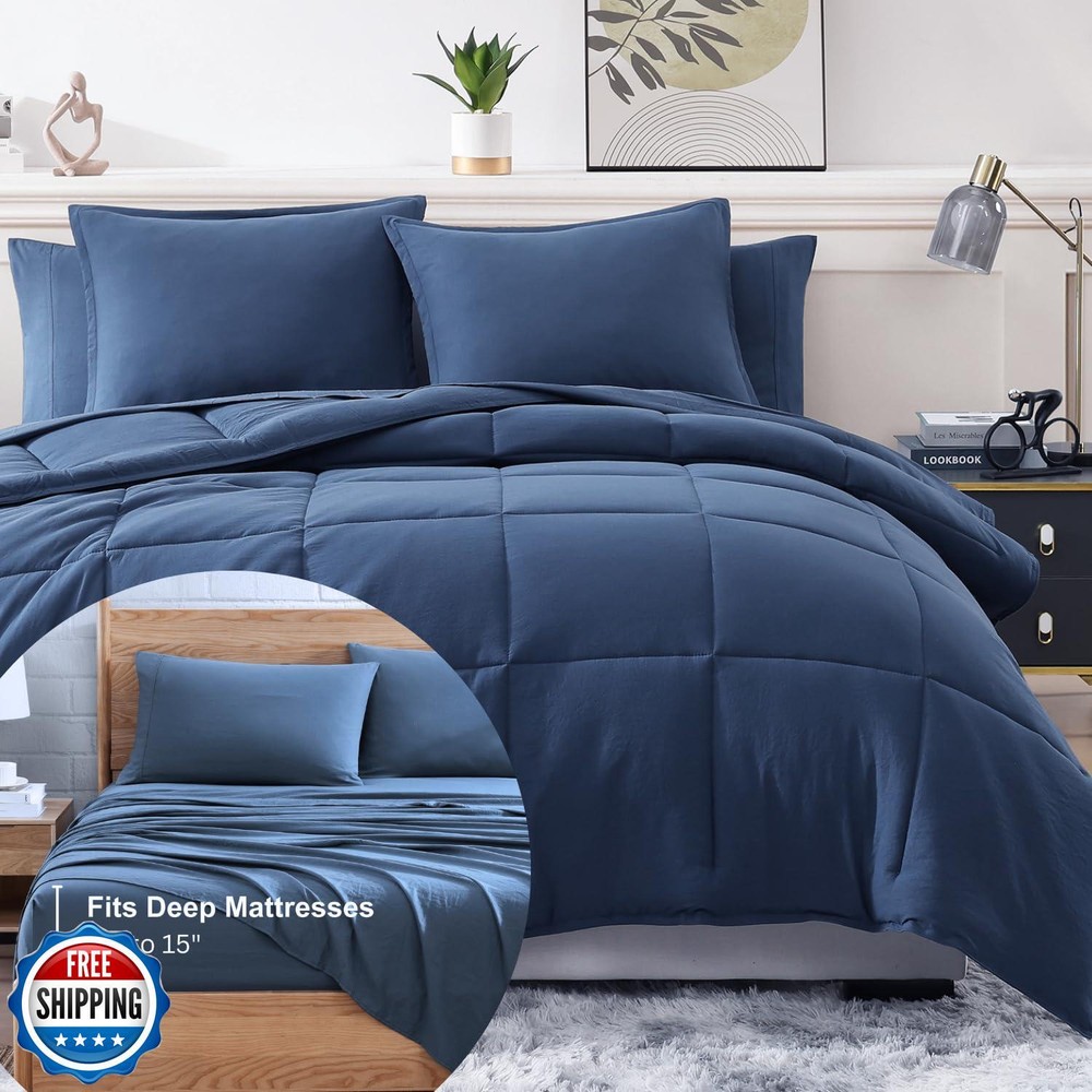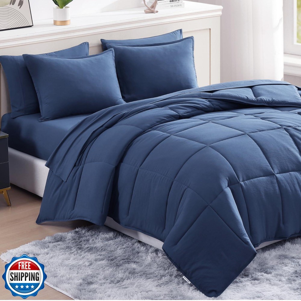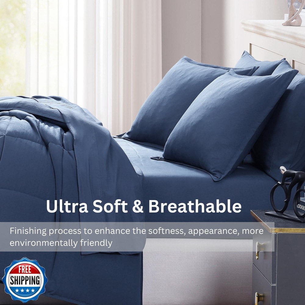 Casa Platino King Bed Set Pre-Washed Soft and Cozy 100% Brushed Microfiber King Size Bed in a Bag with Comforter, Flat Sheet, Fitted Sheet, 2 Pillowcases and 2 Shams Navy Features All in One King Size Comforter Set: Satisfy all your Bedding needs with Casa Platino’s Pre-Washed Soft & Cozy 7 Piece King Comforter Set. This Bed in a Bag King includes: 1 Comforter (104"x90"), 1 Flat Sheet (108x109"), 1 Fitted Sheet (78"x 80"x15"), 2 Pillow Cases (20"x 40") and 2 Pillow Shams (20"x36"). Timeless Luxury & Comfort: Our Pre-Washed King Size Comforter Set 7 Pieces can suit any home décor & will add to the elegance of any home aesthetic. Indulge in the exceptional softness of our fine brushed Pre-Washed 100% Microfiber sheets, pillowcases & shams. This set is specially made for you to have a comfortable and restful sleep. Versatile Bedding Solution: We offer our King Size Bed Set in various sizes and colors, suiting to all your customized needs. It will match any bedroom design that you are looking to create. Our Hydro-Brushed Super Soft King Bed Set with Sheets will give your bedroom that cozy, comfy feel. The washing process makes for a super soft comfy feel and will bring a coziness to your bedroom. Perfect Gifting Solution: Our King Size Bed in a Bag makes for the perfect gift all year round. Spoil your loved ones with this new luxurious King Bed Comforter Set. Or better yet, treat yourself to a great night’s sleep with this exceptional & unique King Size Comforter Set with Sheets. Effortless Maintenance: Casa Platino’s Premium 100% Brushed Pre-Washed Microfiber Bedding King Size Comforter Set is very easy to maintain. This King Bed in a Bag Set can be machine washed with cold water on a gentle cycle and tumble dried on low. Shipping Free & Fast Shipping: We offer free shipping to most of the USA with a normal delivery time of 3-7 days. However, due to the current situation, additional delivery time (up to 3 weeks) may be required for some items. Alternative Carriers: We may use alternative carriers (e.g., USPS, FedEx, UPS) to ensure your package arrives safely and on time. Due to the use of multiple carriers, we are unable to provide a tracking number automatically. Handling Time: Orders are processed and shipped within 1-2 business days of receiving cleared payment. Shipping Restrictions: Shipping to Alaska, Hawaii, Puerto Rico, Guam, and other US territories may incur shipping charges or delivery restrictions. Please contact us before ordering, or your order can be refunded/cancelled. State Restrictions: Certain items may not be shipped to California due to state regulations. Contact for Tracking Updates: If you require tracking updates or have any concerns about the delivery of your order, please feel free to contact us, and we will be happy to assist you. Return Policy 30-Day Hassle-Free Returns: If you are not completely satisfied with your purchase, you can return the item for free within 30 days of receiving it for a full refund or exchange. Easy Return Process: Contact us, and we will provide you with a prepaid return shipping label and detailed instructions. No Restocking Fee: There are no restocking fees for returns. However, the buyer is responsible for return shipping costs if the return is not due to a seller"s error. Refund Processing: Refunds will be processed within 1 business day of receiving the returned item in its original condition. Feedback Your feedback is extremely important to us. We strive to provide the best products and customer service possible. If you are satisfied with your purchase, please take a moment to leave us a positive review. If you have any concerns or issues with your order, please contact us before leaving negative feedback. We are committed to resolving any problems and ensuring your satisfaction. Contact Us If you have any questions or concerns, please feel free to reach out to our customer support team. You can contact us through the eBay messaging system. We are available Monday to Friday, 9:00 am to 5:00 pm EST, and we will do our best to respond to your inquiry within 24 hours. Thank you for supporting our small family business!