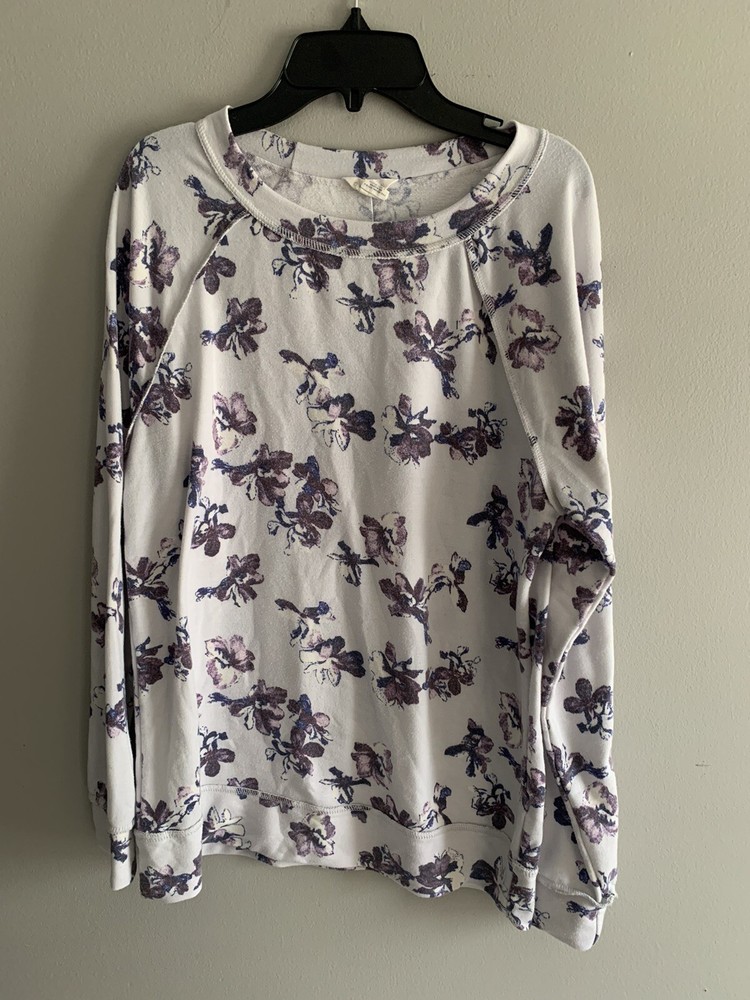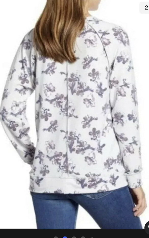 Caslon Cozy Print Sweatshirt Pullover Soft Floral Ivory Purple XSmall....