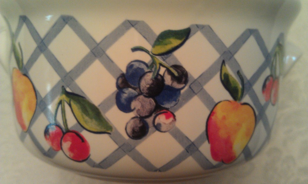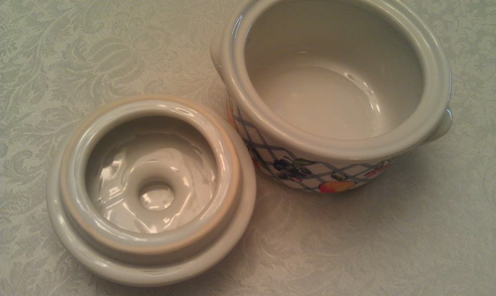 This auction is for a Beautiful Nice Pansy Soup Beans Casserole Bowls Fruits Design with Lids by Jay Import Co. Measures: 4 1/2"H x 5 1/2" in diameter. Beautiful addition to your home! It is heavy. If you would like to buy two bows like this one, please look my other listings. In excellent condition, no chips or cracks. From a smoke-free home. Please see below for more pictures. Photos are of the actual item you are purchasing, so please look at them closely for specifics on condition. Don't forget to check out my other auctions. I combine shipping! Paypal payment only. Payment is required within 3 days of end of auction. Sales within the USA only. Please email me with any additional questions. Thank you!