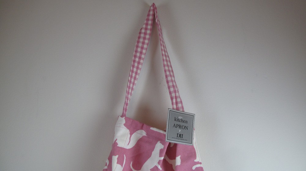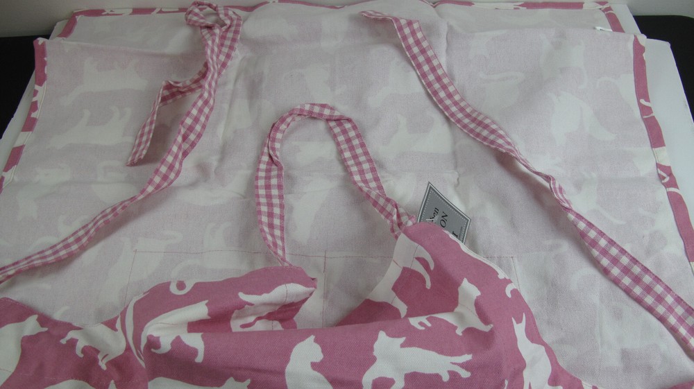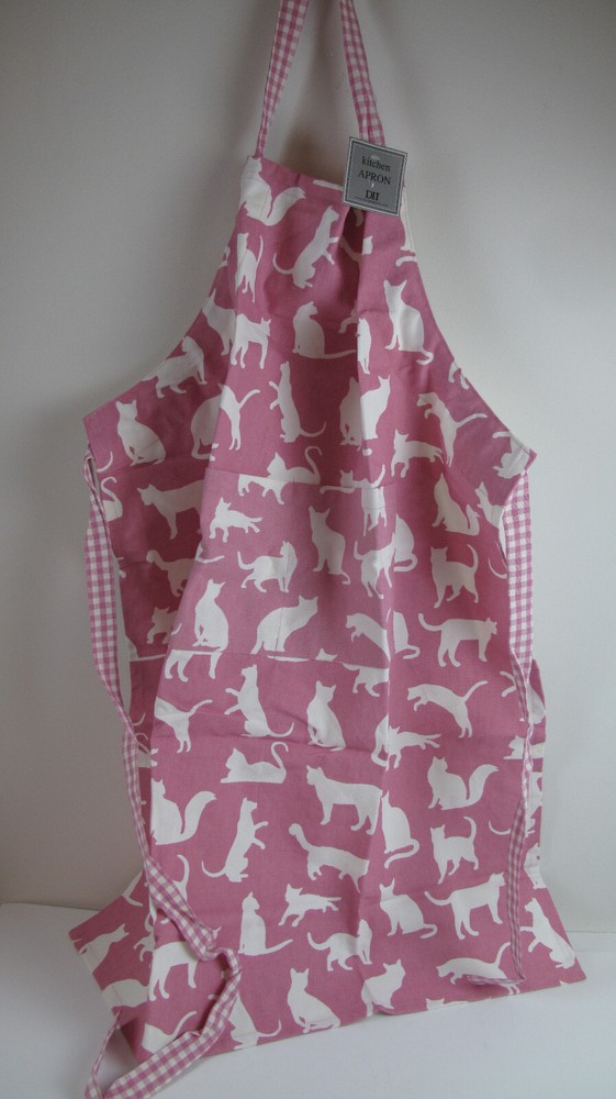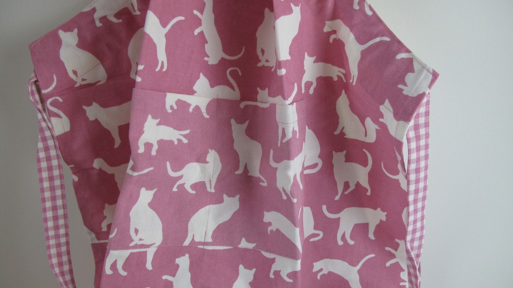 Cat Apron Pink/White/Kitchen/Arts & Crafts/Checker Straps/Pockets/Made in India/100% Machine Washable Design Imports