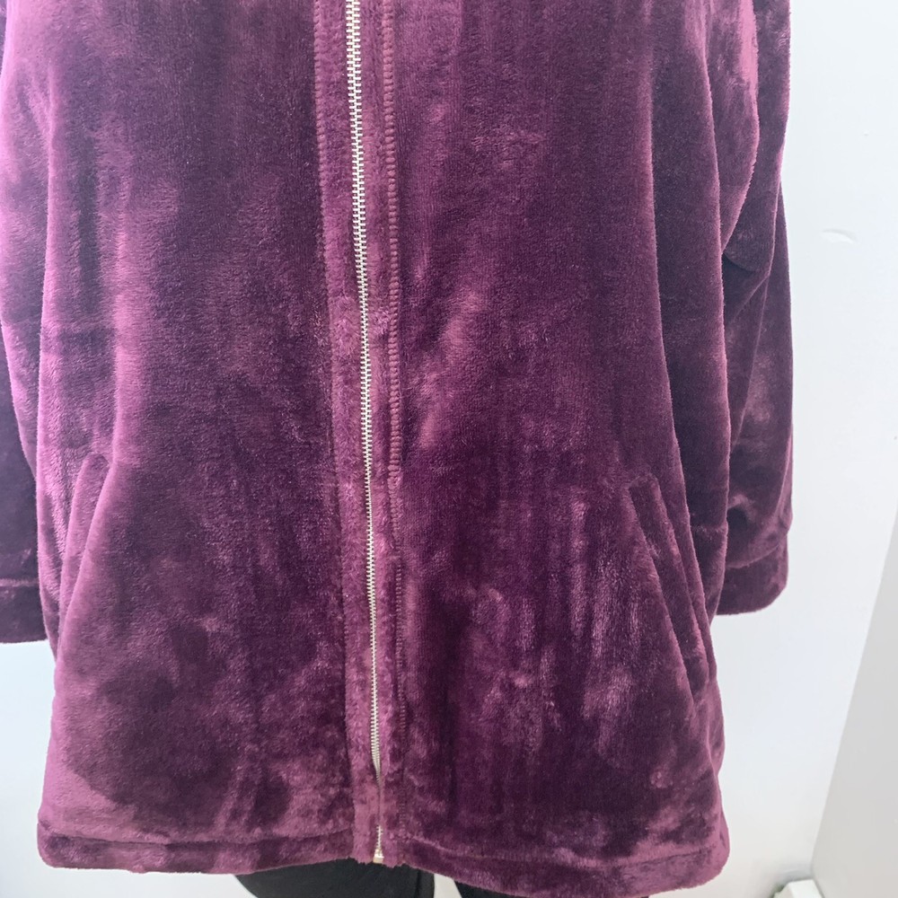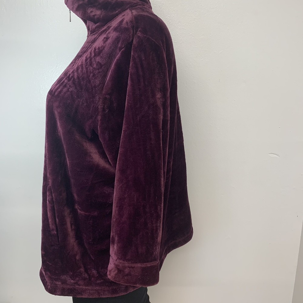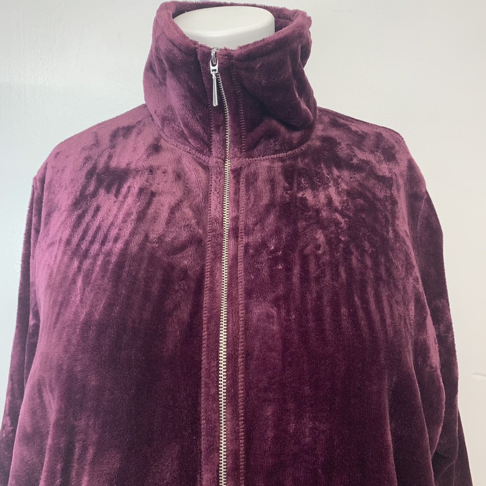 Catherines Womans Velour Fuzzy Cardigan Jacket 22WP Petite Full Zip Purple Long Sleeve Soft High Neck Side Pockets Medium Weight Pre -Owned, Good Condition , No Stains or Tears Measurements in photos taken lying flat Smoke free, dog friendly, home. Buy with confidence. I inspect each item carefully. Glad to Combine Shipping