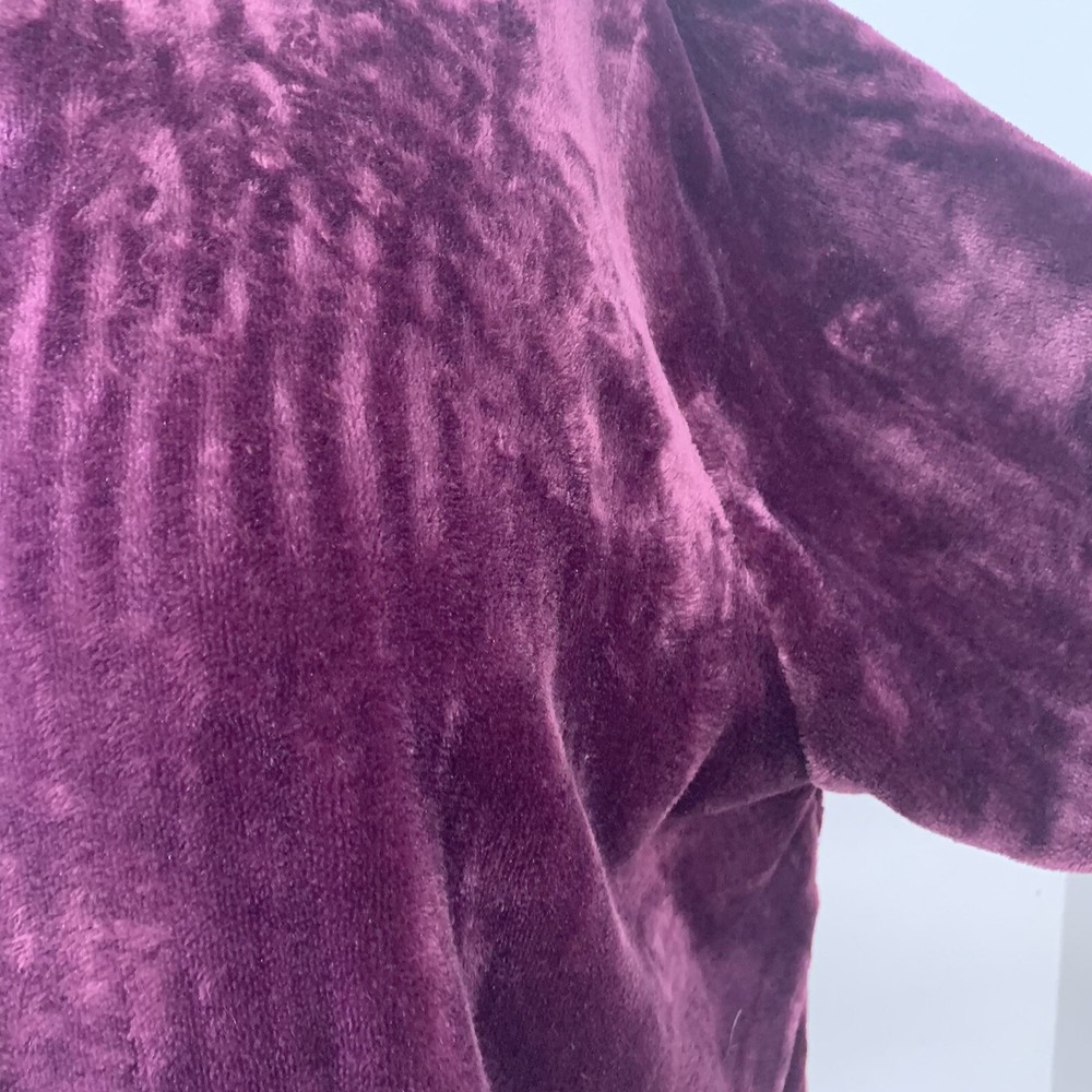 This velour cardigan is my new favorite find! The fabric feels incredibly soft and cozy, with perfect medium weight that's ideal for layering. I love the deep pockets and flattering high neck design. Arrived in excellent pre-owned condition just as described - no stains or pilling. Such a comfortable piece that instantly elevates my casual outfits!