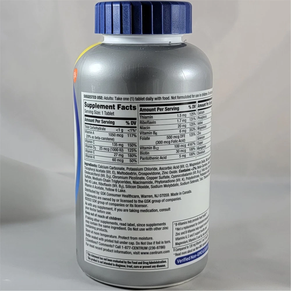 Centrum Silver MultiVitamin MultiMineral Complete Vitamin 250+25 total 275 Tabs Men Over 50+