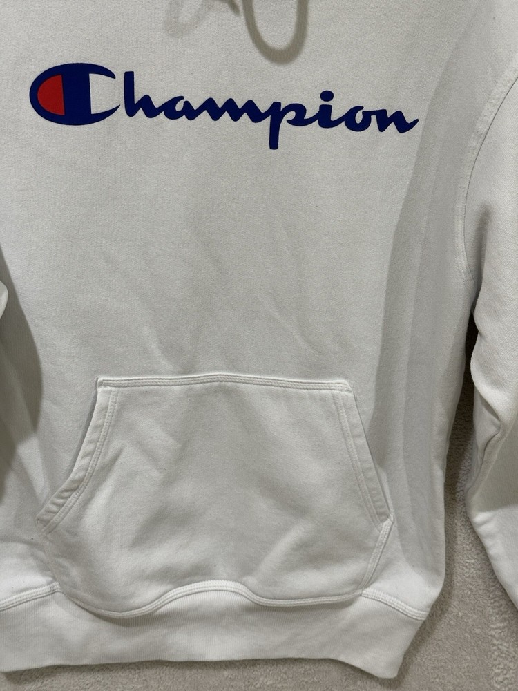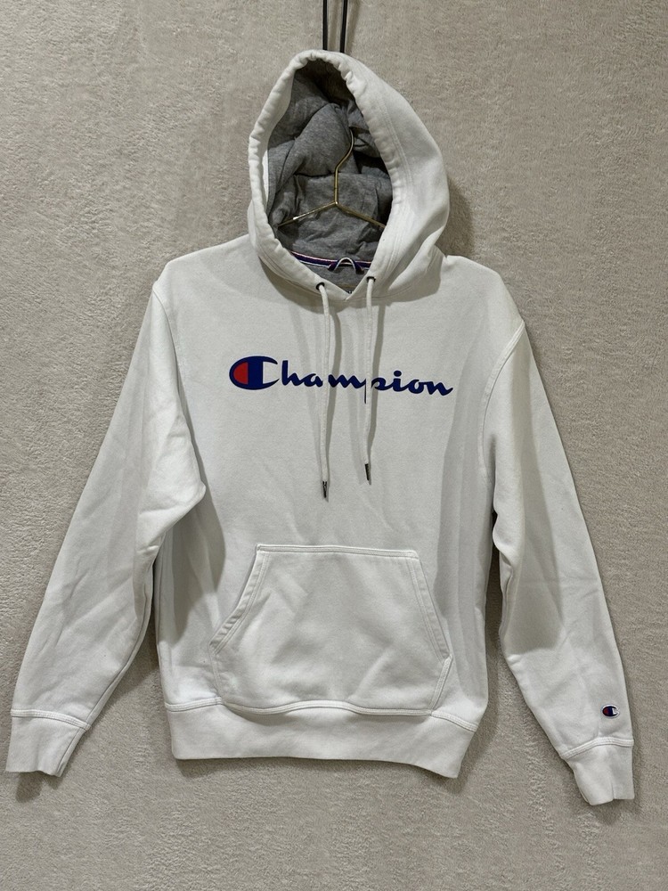 Champion Hoodie Sweatshirt Size Small White Spell-out Comfort Cozy. Condition is Pre-owned. Shipped with USPS Ground Advantage....