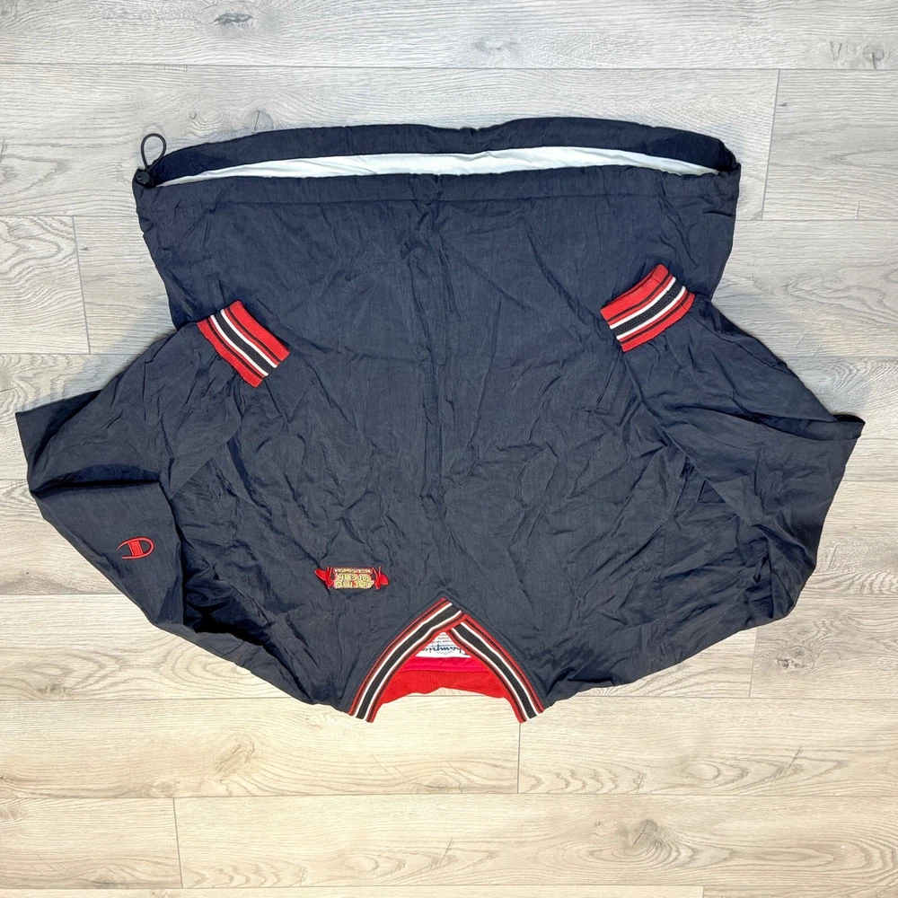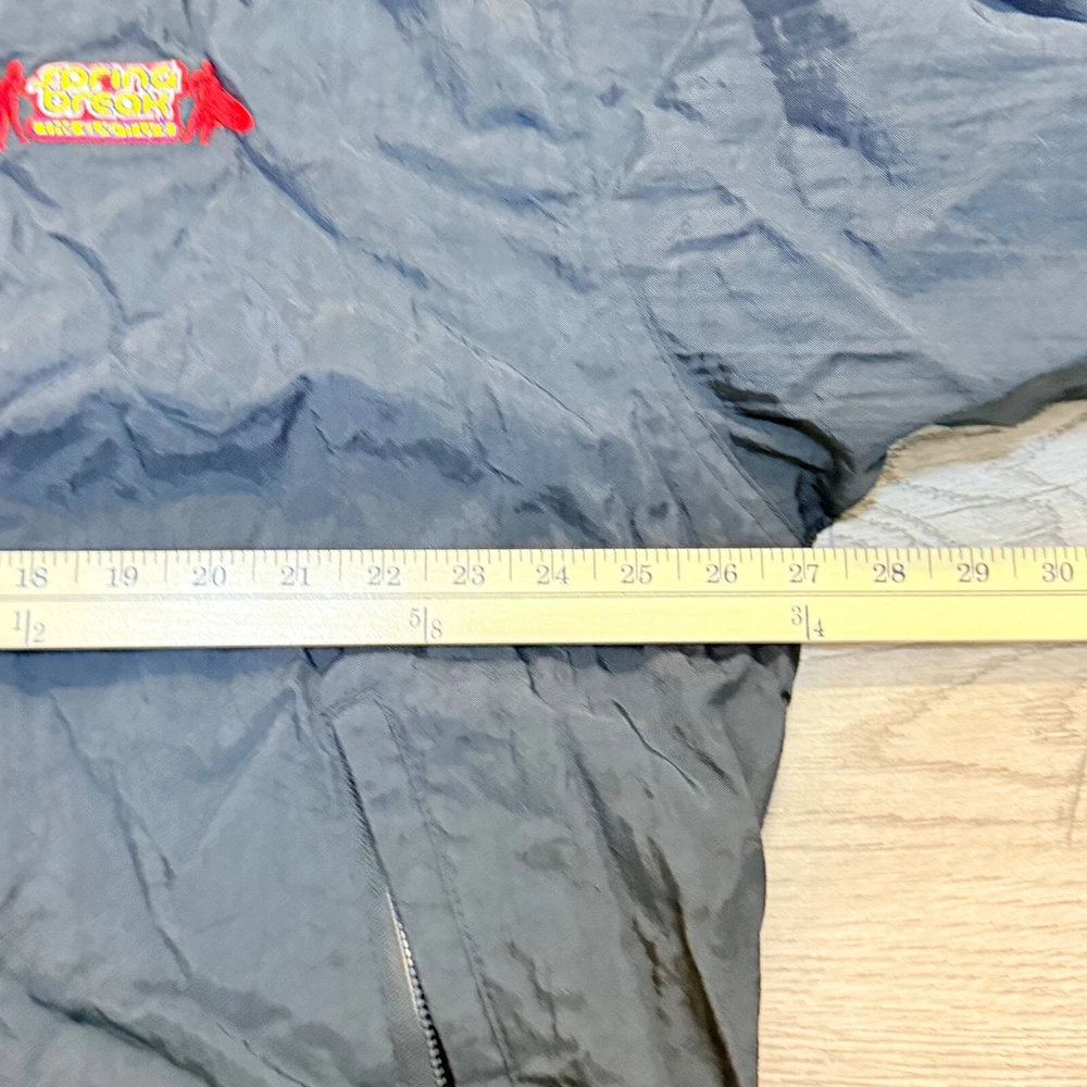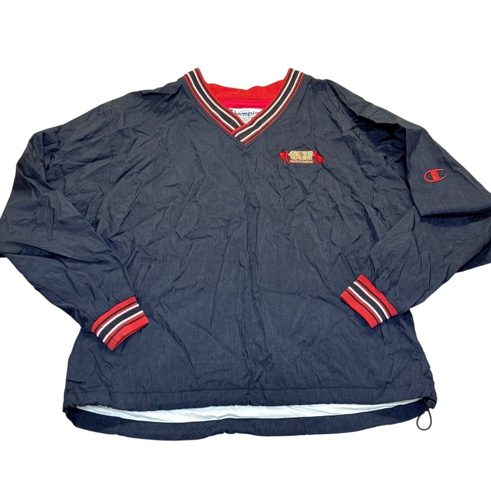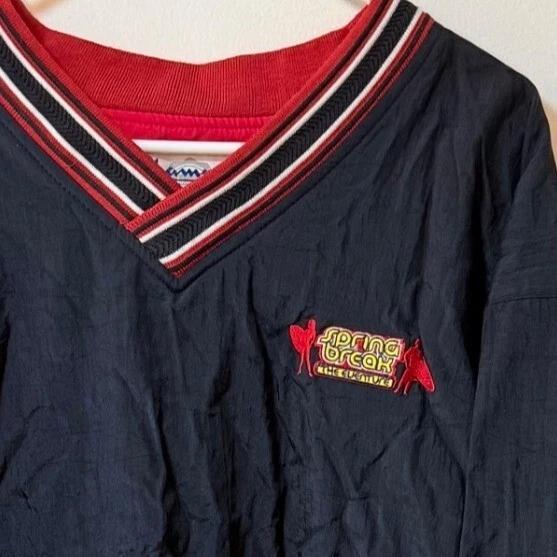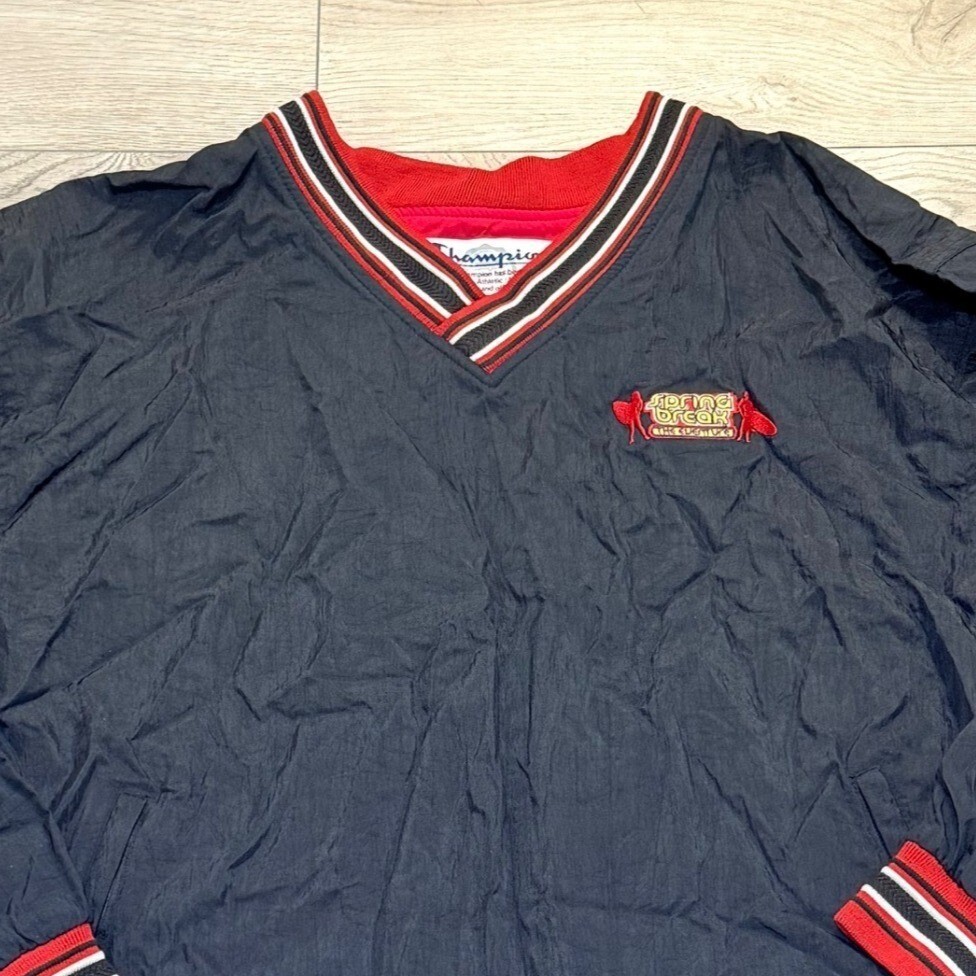 Champion VTG 90s Mens Spring Break Surfboard Embroidered Windbreaker Jacket V-Neck Pullover Jumper Sportswear Activewear Athletic Retro Sports Sweatshirt Outerwear Black Red Braided Accent Trim This Champion Mens/Womens Retro Trim Sporting Windbreaker Jacket is solid black with Red, White and Black Embroidered Trim. It is in size L and has a striking Spring Break embroidered surfs up on the chest. The Champioin logo on the upper back adds a touch of class to this polyester jumper sportswear jacket, perfect for a party on the beach at night to wear with purpose back home on campus. • Brand: Champion • Color: Black and Red • Size: L • Style: Windbreaker Sports Jacket • Material: Polyester • Design: Pullover with adjustable pull tab • Special Feature: Surf Board Spring Break and Back Logo Preowned in good condition. Please see all photos as they are part of the description. spring break, windbreaker, champion, champion sportswear, vintage champion, 90s, mens jacket, pullover coat, activewear, athleticwear, beach, sweatshirt, retro, mens sweatshirt, embroidered Features: Windbreaker Size: Unisex L Condition: Pre-Owned Good Champion VTG 90s Mens Spring Break Windbreaker Jacket V-Neck Pullover Jumper Sportswear Activewear Athletic Retro Sports Sweatshirt Black Red Braided Embroidered Accent Trim lillycoopercloset