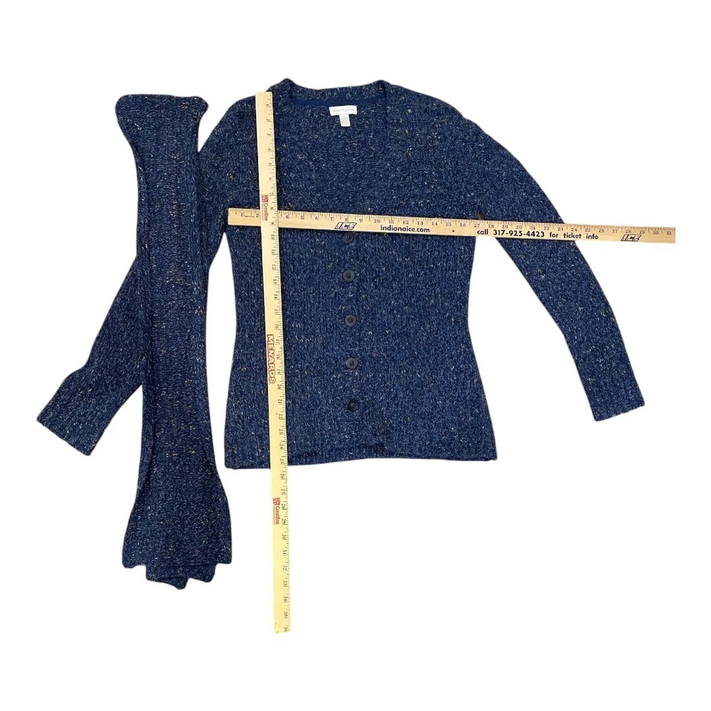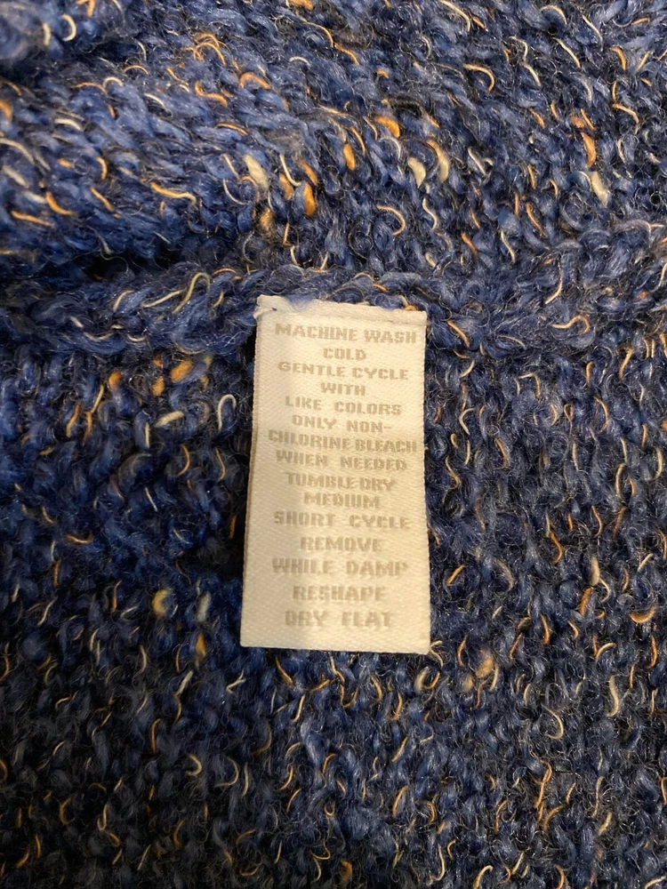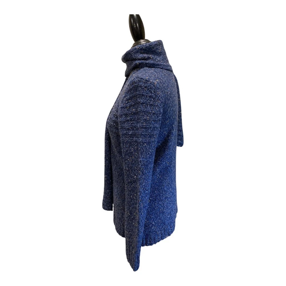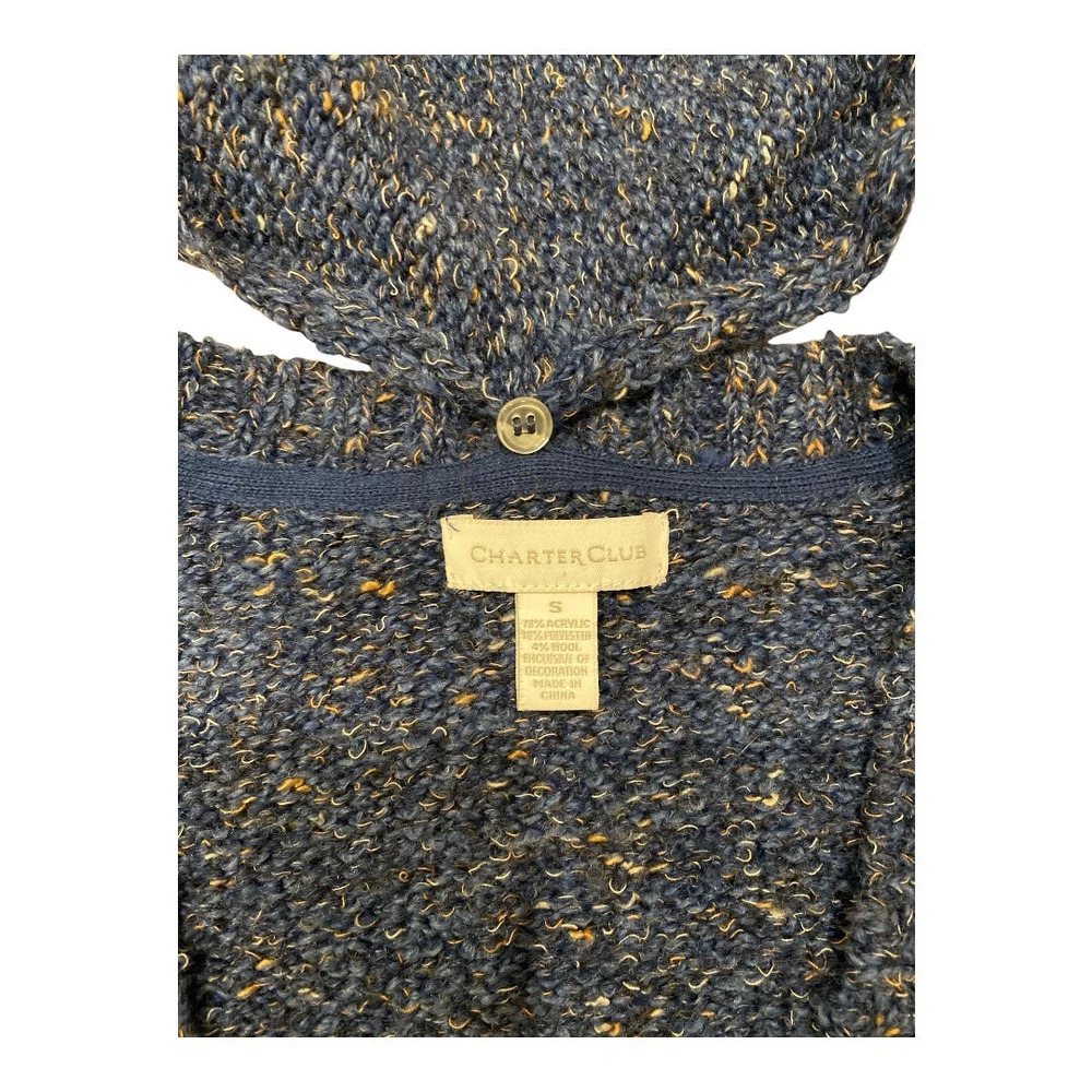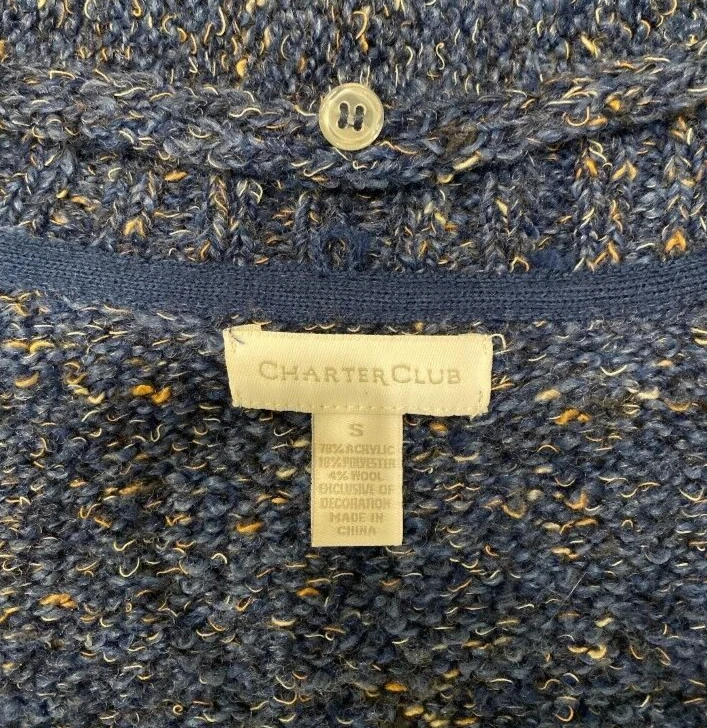 This Charter Club cardigan sweater is perfect for any occasion, whether it's a casual day out or a day at work. The blue wool blend fabric with orange speckles adds a touch of rustic charm, while the chunky-knit style and scarf attachment at the back make it a versatile piece. The sweater features a V-neckline, long sleeves, and a button-up front. The sweater is machine washable, making it easy to care for, and its regular fit and stretchy fabric make it comfortable to wear in any season. Its peasant and cozy themes are perfect for winter, fall, and spring. This sweater is a great addition to any wardrobe and is available in women's size small. Need it soon?? I ship daily. Offers? Questions? Please reach out. I am here and love to chat! Like my style? Check out my other listings. Thanks for visiting, my fashionable friend!