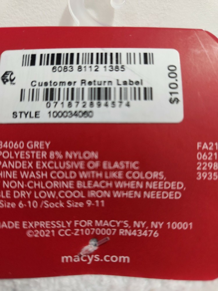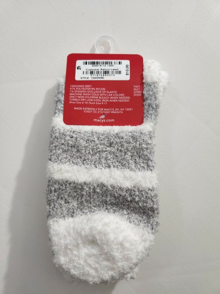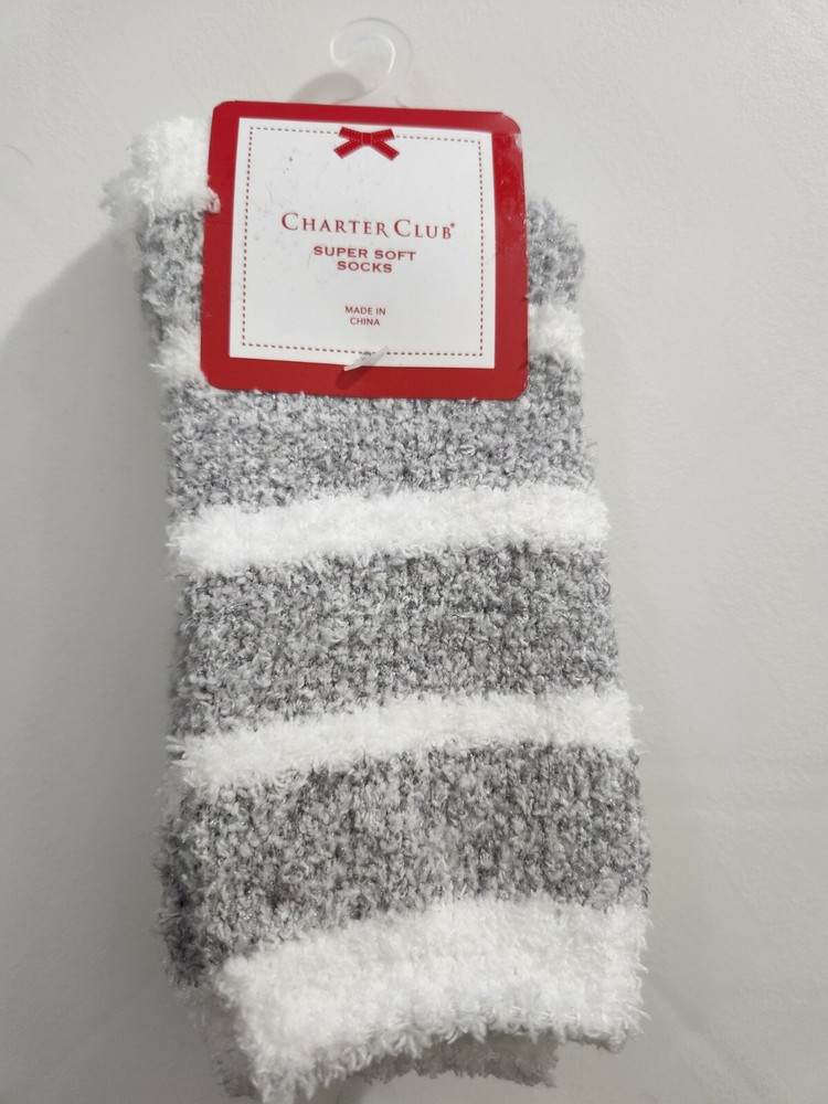 Charter Club Womens Size 9-11 Butter Super Soft Cozy Crew Socks Gray Striped $10 MJ1/385. Charter Club's solid butter socks offer a completely soothing experience in a chenille-like fabric infused with gentle stretch. Created for Macy's Texture: Knit Pack Includes: 1 pair Imported Size & Fit Sock size 9-11: Fits shoe sizes 4-10.5 Materials & Care Polyester/spandex Machine washable
