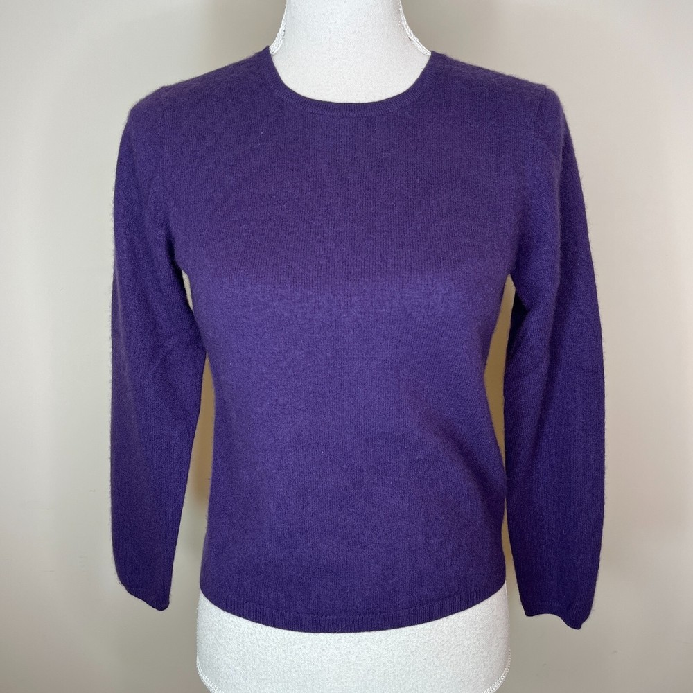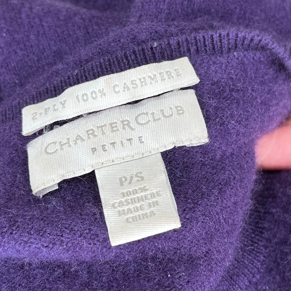 Charter Club Women's Sweater Size Small 2 ply Cashmere Purple Soft Cozy Luxe. Bust 15" Shoulder 15" Length 21" #48