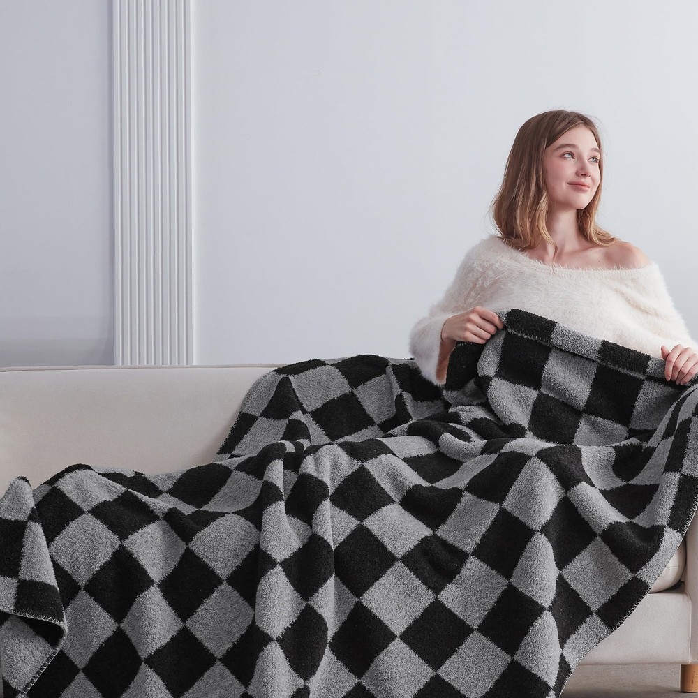 Checkered Throw Blanket - Comfortable Blanket, Cozy and Warm Blanket for Couch Ultra-Heavyweight Blanket: Our checkered knit blanket is made of premium 550 GSM microfiber. The high-quality material makes our checkered blanket warmer, softer, and more durable. Stylish and Elegant: This checkered knit blanket comes in a variety of color combinations, making it a perfect gift for various occasions and easy to coordinate with most home decor styles. Versatile: Featuring a classic checkered design, this blanket can be hung on a sofa, chair, or bed to add a unique decorative touch to any room. It's also perfect for relaxing at home, outdoor travel, watching TV, or reading. Easy to Care: Machine washable and fade-resistant, this blanket retains its softness and vibrant colors wash after wash. Reminder: Due to packaging and shipping, the blanket may appear flattened upon arrival. Simply wash before first use to restore its fluffy and full texture, enhancing its softness and overall comfort. Perfect Gift: This exquisite blanket is an ideal gift for family, friends, and elders. Combining warmth and style, it brings extra comfort and coziness to every special occasion.
