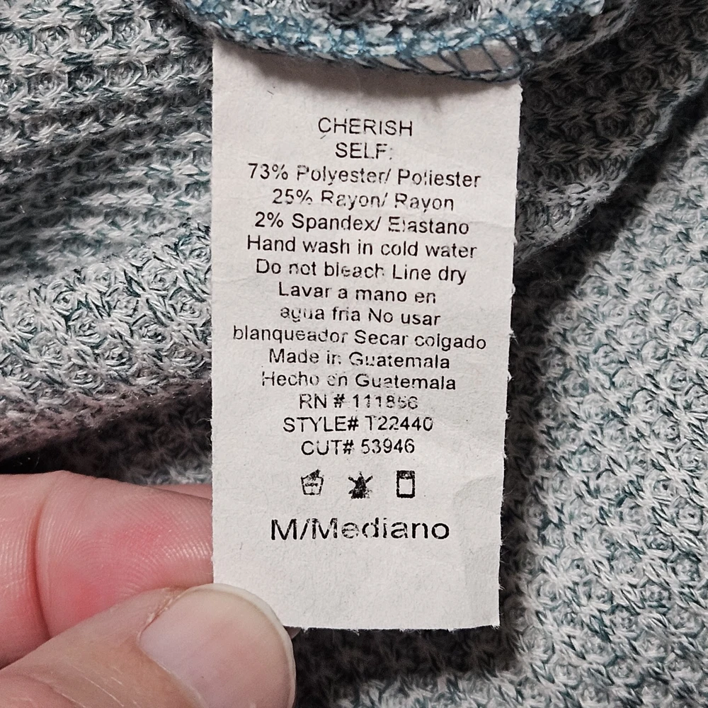Cherish Story Sweater Sz M Baggy Oversized Comfort Cozy Heathered Teal. Shirt is in good, gently used condition. No rips, tears or stains. Please reference photos for details and measurements. It has plenty of use left!