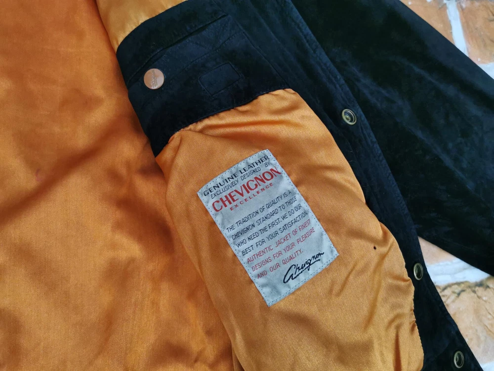 Original Classic Shop eBay offer TO THE SHOP TO THE SHOP CHEVIGNON SUEDE JACKET FROM A NON-SMOKING HOME! COLLECTORS KNOW THEIR TRUE VALUE COLOR: BLACK CONDITION: VERY GOOD TIGHT CUFFS LOTS OF STICKERS (SEE PICTURES) TWO OUTSIDE POCKETS NORMAL TRACKS OF WEARING AND USAGE YOU HAVEN'T BUYED IN YEARS Size: XL Shoulder width: 55.00cm Arm length: 66.00 cm Total width: 65.00 cm Total length: 65.00 cm Free Shipping . FAIR PRICES . PAYPAL, COLLECTION or TRANSFER possible Original Classic Shop eBay offer TO THE SHOP TO THE SHOP CHEVIGNONÂ SUEDE JACKET FROM A NON-SMOKING HOME! COLLECTORS KNOW THEIR TRUE VALUE COLOR: BLACK CONDITION: VERY GOOD TIGHT CUFFS LOTS OF STICKERS (SEE PICTURES) Â TWO OUTSIDE POCKETS NORMAL TRACKS OF WEARING AND USAGE YOU HAVEN'T BUYED IN YEARS Size: XL Shoulder width: 55.00cm Arm length: 66.00 cm Total width: 65.00 cm Total length: 65.00 cm Free Shipping . FAIR PRICES . PAYPAL, COLLECTION or TRANSFER possible