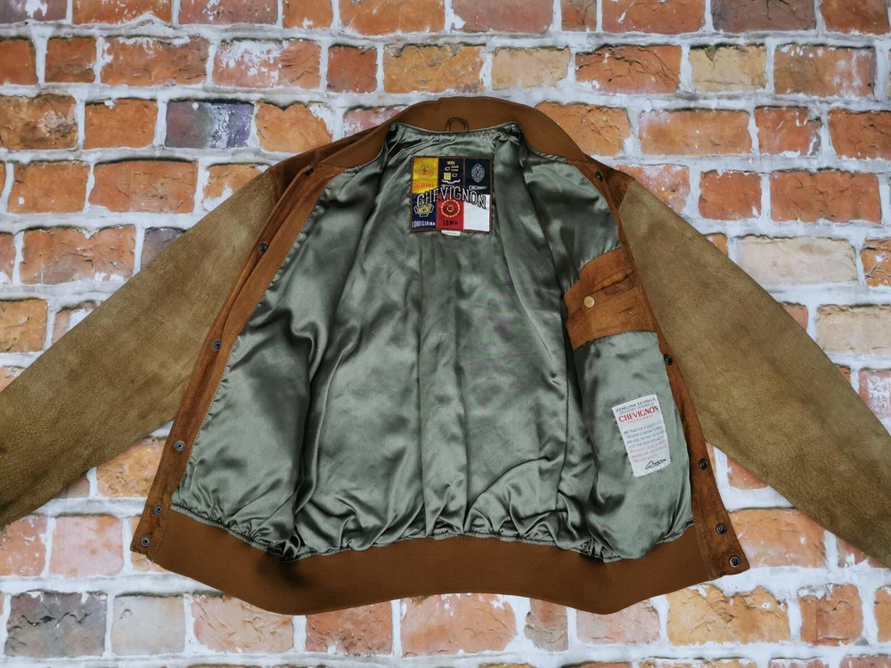 Original Classic Shop eBay offer TO THE SHOP TO THE SHOP CHEVIGNON SUEDE JACKET FROM A NON-SMOKING HOME! COLLECTORS KNOW THEIR TRUE VALUE COLOR: BEIGE / Braun CONDITION: VERY GOOD TIGHT CUFFS LOTS OF STICKERS (SEE PICTURES) TWO OUTSIDE POCKETS NORMAL TRACKS OF WEARING AND USAGE YOU HAVEN'T BUYED IN YEARS Size: XL Shoulder width: 56.00cm Arm length: 69.00 cm Total width: 67.00 cm Total length: 65.00 cm Free Shipping . FAIR PRICES . PAYPAL, COLLECTION or TRANSFER possible Original Classic Shop eBay offer TO THE SHOP TO THE SHOP CHEVIGNONÂ SUEDE JACKET FROM A NON-SMOKING HOME! COLLECTORS KNOW THEIR TRUE VALUE COLOR: BEIGE / Braun CONDITION: VERY GOOD TIGHT CUFFS LOTS OF STICKERS (SEE PICTURES) Â TWO OUTSIDE POCKETS NORMAL TRACKS OF WEARING AND USAGE YOU HAVEN'T BUYED IN YEARS Size: XL Shoulder width: 56.00cm Arm length: 69.00 cm Total width: 67.00 cm Total length: 65.00 cm Free Shipping . FAIR PRICES . PAYPAL, COLLECTION or TRANSFER possible