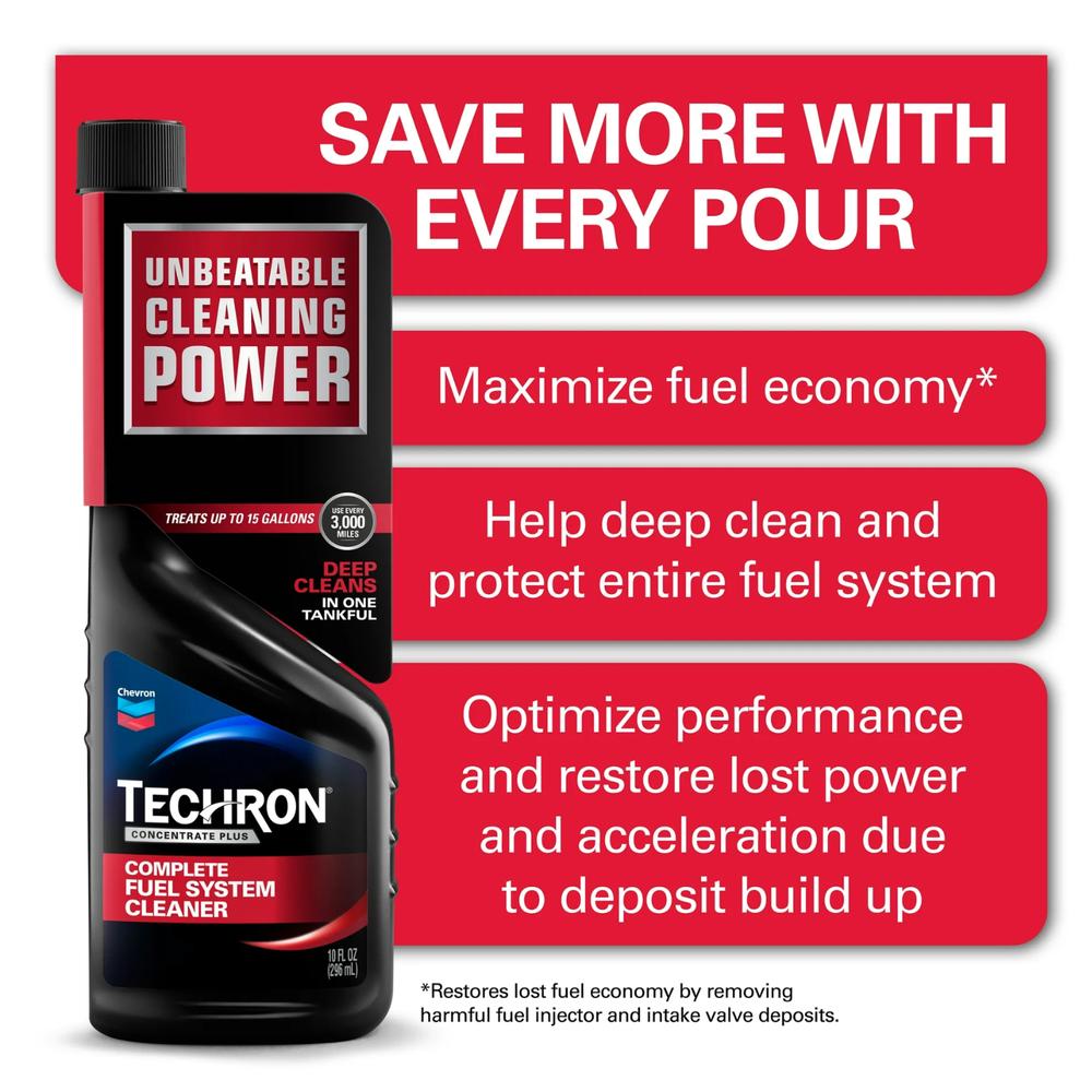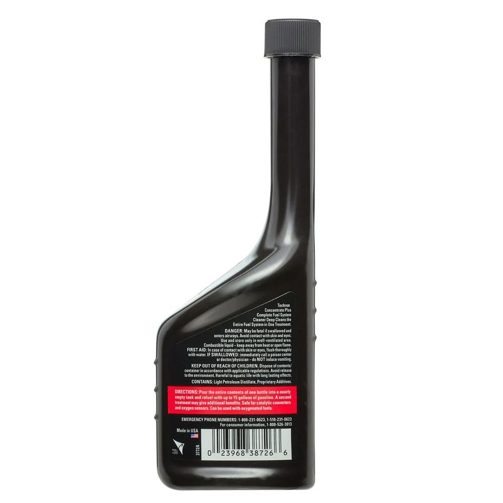 Chevron Techron Complete Fuel System Cleaner, Deep Cleans In One Tankful, 10 oz Keep your ride running smoothly with the Chevron Techron Concentrate Plus Complete Fuel System Cleaner. It minimizes emissions to reduce your car's carbon footprint. Techron Concentrate Plus is a Complete Fuel System Cleaner that works in one tankful. It is formulated for gasoline powered passenger cars and light trucks, including carbureted, two-stroke, port fuel injected and direct injected engines. Techron Concentrate Plus, Complete Fuel System Cleaner, with its exclusive formula, is unsurpassed in cleaning the entire fuel system (fuel injectors, intake valves and combustion chambers) in one tankful. Its use can maximize fuel economy and restore lost power, performance and acceleration. Techron Concentrate Plus, Complete Fuel System Cleaner, is formulated with a proprietary deposit control additive which can clean sulfur corrosion, a possible cause of fuel gauge malfunction. Regular use can help prevent harmful sulfur components in gasoline from attacking sensitive electronic fuel sending units on some vehicles. Techron Concentrate Plus, Complete Fuel System Cleaner, works in one tankful and is unbeatable at helping your engine achieve maximum performance and operate with the lowest possible harmful emissions. Also, by cleaning combustion chamber deposits, it can relieve cold start problems and minimize deposit-related knock and ping. Techron Concentrate Plus, Complete Fuel System Cleaner, is fully compatible and protective in all commercially available ethanol blends (E10, E85, etc). Chevron Techron Concentrate Plus, 10 oz helps minimizes emissions Restore lost power and performance Restore and protect operation of the fuel gauge sensor Minimize harmful exhaust emissions Formulated to clean and protect the complete fuel system Maximizes performance and fuel economy Relieve cold start problems Fuel system cleaner gives you results in just 1 treatment Recommended every 3,000 miles or at your oil change Minimize deposit-related knock and ping Restore lost acceleration Shipping We offer FREE shipping on all orders! We ship within Three business days of payment, usually sooner. We use a selection of shipping services such as UPS, FedEx, USPS etc. We only ship to the lower 48 states, no APO/FPO addresses or PO Boxes allowed. Local pickups and combined shipping options are not provided at this time. Return You can return a product for up to 30 days from the date you purchased it. Any product you return must be in the same condition you received it and in the original packaging. Please keep the receipt. Payment We accept payment by any of the following methods: PayPal Please pay as soon as possible after winning an auction, as that will allow us to post your item to you sooner! Feedback Customer satisfaction is very important to us. If you have any problem with your order, please contact us and we will do our best to make you satisfied. Contact Us If you have any queries, please contact us via ebay. We usually respond within 24 hours on weekdays. Please visit our eBay store to check out other items for sale! Thank you for shopping at our store.