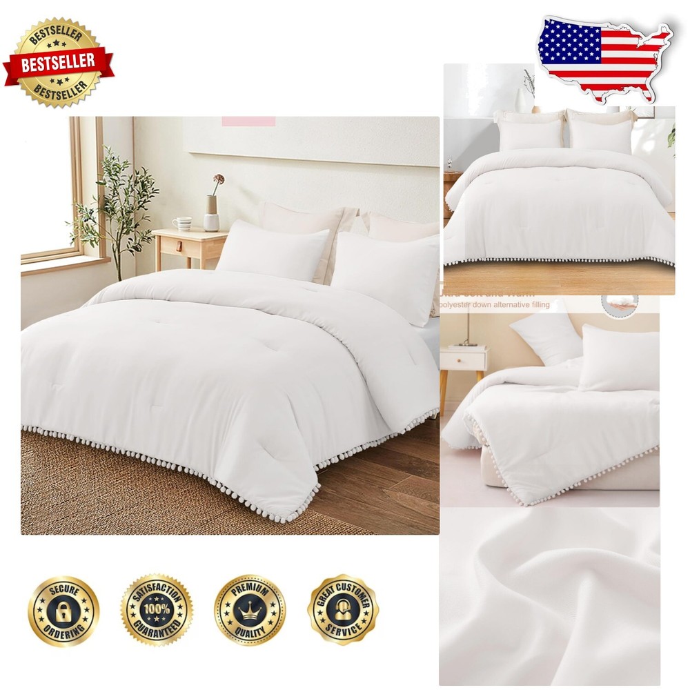Chic Boho Pom Pom Fringe King Size Comforter Set - All Season Cozy Bedding ‹ › ‹ › ‹ › ‹ › ‹ › ‹ › ‹ › ‹ › Chic Boho Pom Pom Fringe King Size Comforter Set - All Season Cozy Bedding for a Luxurious Sleep Package Includes: King Size Comforter: 104 x 90 inches Two Envelope Pillowcases: 20 x 36 inches (Note: Pillow inserts not included) Features: Crafted from premium brushed microfiber for unparalleled softness Filled with down alternative polyester for breathability and coziness Lightweight yet warm enough for year-round use Hidden dot-shaped stitching ensuring stability while maintaining aesthetic appeal Handmade pom pom ball fringe on three sides adds a chic bohemian flair Available in a variety of vibrant colors to complement your décor Benefits: Ultra-soft, breathable, and cozy for all-night comfort Acts as a striking focal point in your bedroom, enhancing your personal style Versatile design easily fits any room decoration theme Effortless maintenance with machine washable fabric Why Choose Our Chic Boho Comforter Set? Transform your bedroom into a sanctuary of style and comfort with our Chic Boho Pom Pom Fringe King Size Comforter Set. This stunning bedding ensemble combines the softness of premium brushed microfiber with the warm embrace of down alternative filling, ensuring a restful night’s sleep in any season. The unique ball pom fringe design offers a delightful touch of bohemian charm, enhancing your space with its eye-catching aesthetic. Offered in an array of vibrant colors, this comforter set is designed to blend seamlessly with your home’s décor, while making a bold statement. Plus, its easy-care features make it a practical choice for busy lifestyles. Indulge in luxury and style—invest in our Chic Boho Comforter Set and elevate your bedroom today! Shipping Free & Fast Shipping - We offer free shipping to most of the USA with a normal delivery time of 3-7 days. However, due to the current situation, additional delivery time (up to 3 weeks) may be required for some items. Alternative Carriers - We may use alternative carriers (e.g. USPS, FedEx, UPS, etc.) to ensure your package arrives safely and on time. Due to the use of multiple carriers, we are unable to provide a tracking number automatically. Handling Time - Orders are processed and shipped within 1-2 business days of receiving cleared payment. Shipping Restrictions - Shipping to Alaska, Hawaii, Puerto Rico, Guam, and other US territories may incur shipping charges or delivery restrictions. Please contact us before ordering, or your order can be refunded/cancelled. State Restrictions - There may be restrictions based on your state of purchase. For example, certain items may not be shipped to California due to state regulations. Contact for Tracking Updates - If you require tracking updates or have any concerns about the delivery of your order, please feel free to contact us, and we will be happy to assist you. Return 30-Day Hassle-Free Returns - We want you to be completely satisfied with your purchase. If you are not, you can return the item within 30 days of receiving it for a full refund or exchange. Easy Return Process - To start a return, simply contact us and we will provide you with a prepaid return shipping label and detailed instructions. Restocking Fee - There are no restocking fees for returns. However, the buyer is responsible for return shipping costs if the return is not due to a seller's error. Refund Processing Time - Refunds will be processed within 5 business days of receiving the returned item in its original condition. Payment We accept all major credit cards, PayPal, and Apple Pay for your convenience. Your payment information is secure and encrypted to ensure a safe and seamless transaction. Please complete your payment within 3 days of purchase to avoid any delays in shipping. Feedback Your feedback is extremely important to us. We strive to provide the best products and customer service possible. If you are satisfied with your purchase, please take a moment to leave us a positive review. If you have any concerns or issues with your order, please contact us before leaving negative feedback. We are committed to resolving any problems and ensuring your satisfaction. Contact Us If you have any questions or concerns, please feel free to reach out to our customer support team. You can contact us through the eBay messaging system. We are available Monday to Friday, 9:00 am to 5:00 pm EST, and we will do our best to respond to your inquiry within 24 hours. Buy it now and enjoy a pleasant shopping experience! UPC: Not Set Model: Not Set Set Includes: Comforter,Pillowcase Material: Microfiber,Polyester Features: Breathable,Lightweight Character: Not Set Theme: Boho Care Instructions: Machine Wash,Machine Wash Cold,Tumble Dry on Low Heat Department: Adults Room: Bedroom Labels & Certifications: Not Set Size: King Type: Comforter Set Brand: Unbranded Color: White Fill Material: Polyester Pattern: Cute Pom Pom Item Width: Not Set Item Length: Not Set MPN: Not Set Character Family: Not Set Number of Items in Set: 3 Insulation: All Seasons Style: Bohemian Season: All Country/Region of Manufacture: Not Set Closure Type: No Closure Thread Count: 200 or Less Drop Length: Not Set GSM (Grams per Square Meter): 150 to 300 Product Line: Not Set Personalize: Not Set