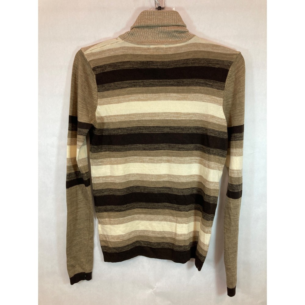 Chic Striped Beige Turtleneck Sweater for Women Cozy Comfort