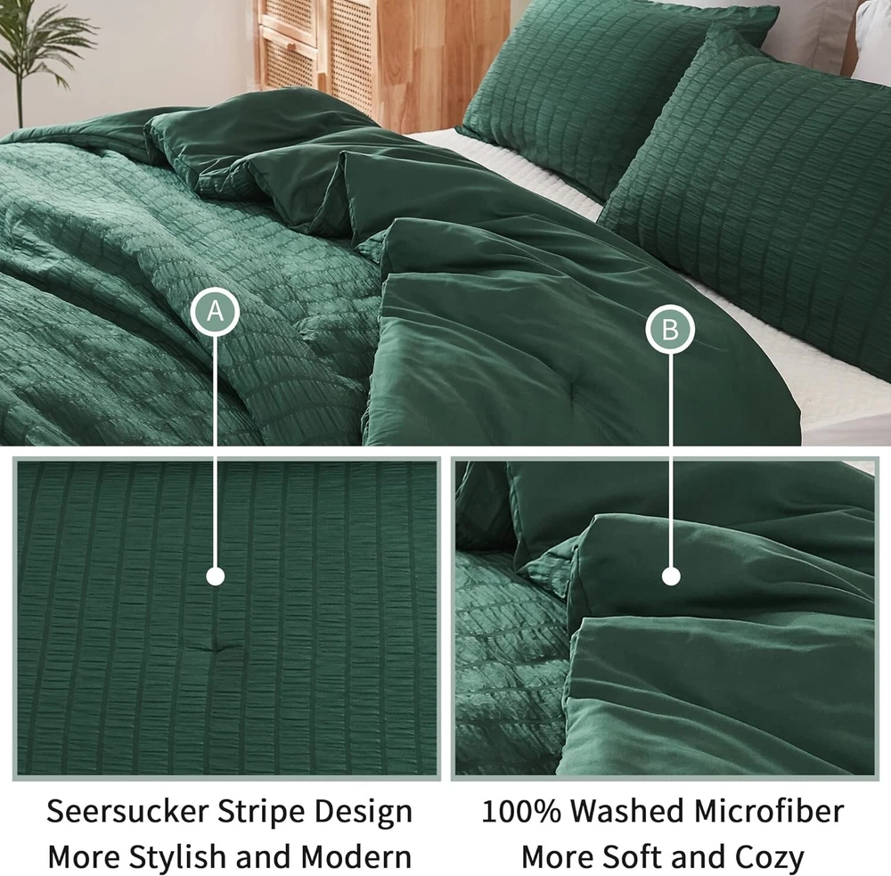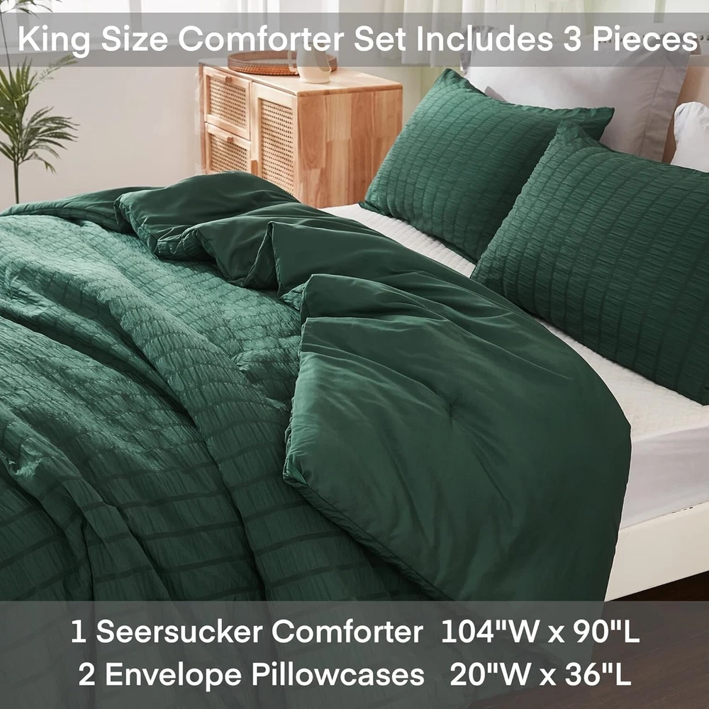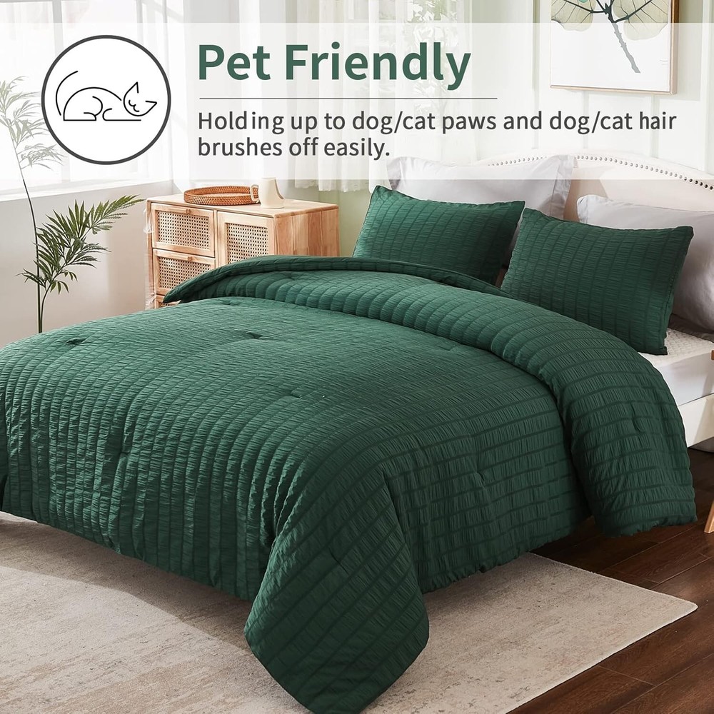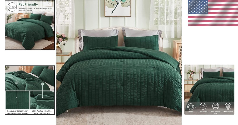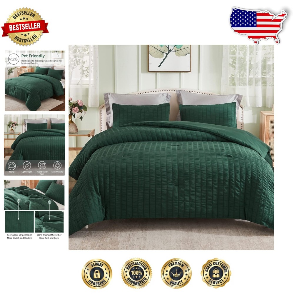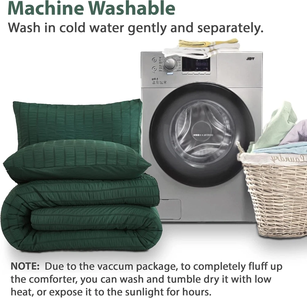 Chic Seersucker King Comforter Set - Soft Microfiber, 3 Pieces for Cozy Nights ‹ › ‹ › ‹ › ‹ › ‹ › ‹ › ‹ › ‹ › ‹ › Chic Seersucker King Comforter Set - Soft Microfiber, 3 Pieces for Cozy Nights Transform your bedroom into a haven of style and comfort with this exquisite chic seersucker king comforter set. Crafted for those who appreciate the finer things in life, this set combines elegance with functionality, ensuring your nights are not only beautiful but cozy. Features: Chic Seersucker Design: The delicate and beautiful seersucker texture brings a fashionable touch to your bedding, ensuring you fall in love with its pattern at first sight. Comfortable and Soft: Made of 100% washed microfiber, this comforter set features a sumptuous 300 GSM filling, providing warmth and coziness throughout all seasons. Lightweight and Fluffy: The king size comforter offers a cloud-like sleeping experience without adding unnecessary weight, enabling you to melt into peaceful slumber. Easy Care and Pet Friendly: Designed for convenience, this comforter is machine washable and maintains its charm while repelling pet hair effortlessly. Size & Measurement: This luxurious king size set includes one comforter (104x90 inches) and two pillowcases (20x36 inches), perfect for versatile use as a duvet insert or a standalone comforter. Benefits: Elevates bedroom decor with its modern and stylish design. Provides warmth and comfort all round. Lightweight fabric ensures a restful nights' sleep. Effortless maintenance keeps your bedding fresh and clean. Perfect gift for weddings, housewarmings, and special occasions. Why Choose Our Chic Seersucker King Comforter Set? Indulge in the luxury of the Chic Seersucker Comforter Set that brings not just warmth but an upscale touch to your bedroom décor. Inspired by beautiful objects, fine fabrics, and impeccable craftsmanship, this comforter set is designed to enhance your sleeping experience, ensuring you drift into sweet dreams night after night. Don’t settle for ordinary when you can embrace the extraordinary. Elevate your sleep sanctuary with our chic seersucker comforter set today! Shipping Free & Fast Shipping - We offer free shipping to most of the USA with a normal delivery time of 3-7 days. However, due to the current situation, additional delivery time (up to 3 weeks) may be required for some items. Alternative Carriers - We may use alternative carriers (e.g. USPS, FedEx, UPS, etc.) to ensure your package arrives safely and on time. Due to the use of multiple carriers, we are unable to provide a tracking number automatically. Handling Time - Orders are processed and shipped within 1-2 business days of receiving cleared payment. Shipping Restrictions - Shipping to Alaska, Hawaii, Puerto Rico, Guam, and other US territories may incur shipping charges or delivery restrictions. Please contact us before ordering, or your order can be refunded/cancelled. State Restrictions - There may be restrictions based on your state of purchase. For example, certain items may not be shipped to California due to state regulations. Contact for Tracking Updates - If you require tracking updates or have any concerns about the delivery of your order, please feel free to contact us, and we will be happy to assist you. Return 30-Day Hassle-Free Returns - We want you to be completely satisfied with your purchase. If you are not, you can return the item within 30 days of receiving it for a full refund or exchange. Easy Return Process - To start a return, simply contact us and we will provide you with a prepaid return shipping label and detailed instructions. Restocking Fee - There are no restocking fees for returns. However, the buyer is responsible for return shipping costs if the return is not due to a seller's error. Refund Processing Time - Refunds will be processed within 5 business days of receiving the returned item in its condition. Payment We accept all major credit cards, PayPal, and Apple Pay for your convenience. Your payment information is secure and encrypted to ensure a safe and seamless transaction. Please complete your payment within 3 days of purchase to avoid any delays in shipping. Feedback Your feedback is extremely important to us. We strive to provide the best products and customer service possible. If you are satisfied with your purchase, please take a moment to leave us a positive review. If you have any concerns or issues with your order, please contact us before leaving negative feedback. We are committed to resolving any problems and ensuring your satisfaction. Contact Us If you have any questions or concerns, please feel free to out to our customer support team. You can contact us through the eBay messaging system. We are available Monday to Friday, 9:00 am to 5:00 pm EST, and we will do our best to respond to your inquiry within 24 hours. Buy it now and enjoy a pleasant shopping experience! Set Includes: Comforter,Pillowcase Material: Microfiber,100% Soft Washed Microfiber Features: Breathable,Lightweight,Durable,Machine Washable,Pet Friendly Theme: Love Care Instructions: Do Not Bleach,Machine Wash Department: Unisex Baby & Toddler,Kids,Teens,Adults Room: Bedroom Size: King Type: Comforter Set Color: Dark Green Fill Material: Microfiber Pattern: Solid Insulation: All Seasons Number of Items in Set: 3 Style: Chic Seersucker Season: All Closure Type: No Closure Thread Count: 200 or Less GSM (Grams per Square Meter): 301 to 450