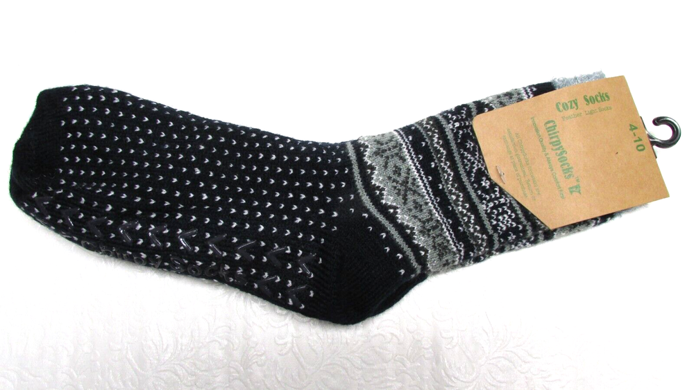 DESCRIPTION: You are purchasing a NEW pair of Chirpysocks Cozy Socks Winter Pattern Thick And Soft size: Womens 4-10 Fibers- Shell:86% ACrylic/13% Polyester/1% Spandex. Lining:99% Polyester/1 This comes from a smoke free home! I will combine shipping on multiple purchases! (slipper tote) SHIPPING INFO: Buyer to pay shipping costs. Items sold as is! Item to be sent via USPS. BIDDING and PAYMENT INFO: Winning bidder must make payment within 3 days of close of auction or item will be re-listed. ***BEFORE BIDDING*** * Please see pictures for more detailed information and condition of item; pictures are part of description. * Descriptions are to the best of my ability, remember what might be excellent or good condition to me may not be excellent or good to you. Please inquire with any questions. * Please see pictures for more detailed information and condition of item; pictures are part of description. * Most items are used & are sold "As is" unless noted differently in the description. You will get what is pictured. Multiple pictures with different views are taken to show condition. * Due to the item's age do not expect items to be in perfect condition and I may not describe every little scratch or spot. * Please note 'used' or 'previously owned' items will to some degree show some signs of normal use such as scuffs, scratches, chips, creases, small dings/dents, rust, spots, stains, dirt, dust, signs of installation/removal, previous owners name/initials and may have wear that you would not expect from purchasing a new item and any more noteworthy condition issues than such will be mentioned above. Item may need cleaning. * I have no control over shipping costs. It is what it is. All items are sold as is, where is. I will only accept returns if you find that I have misrepresented myself. Most of my items are vintage and will naturally show wear from age and use. This is an auction, and the sale of this item will be considered final. I have endeavored to photograph and accurately describe every item as to its condition and authenticity to the best of my ability. I am happy to answer any questions during the auction! PAYMENT: Payment must be received within 3 days of the closing date of the auction. Email me if you have any questions about payment. Your order will be shipped to the address registered with Ebay. If you want the item shipped to a different address, you must email me and receive a confirmation of your request. Otherwise, the item will be shipped to the registered address.