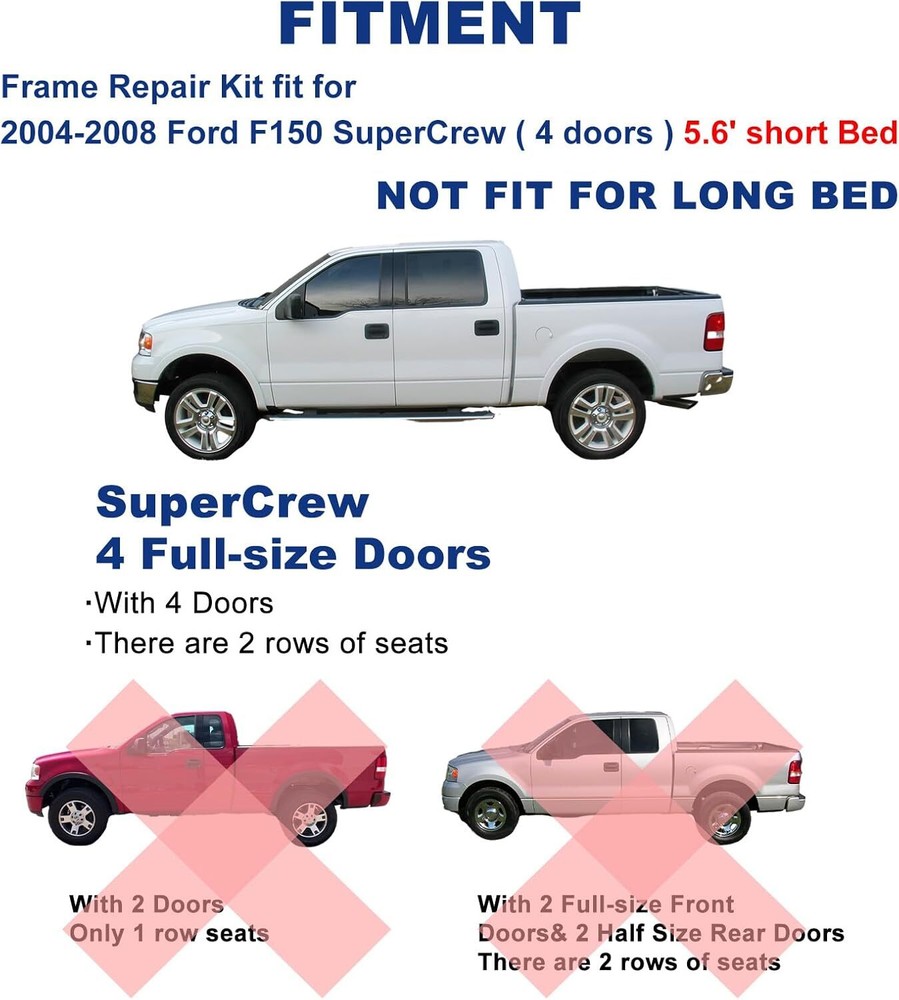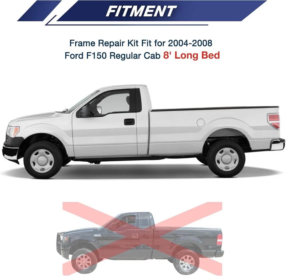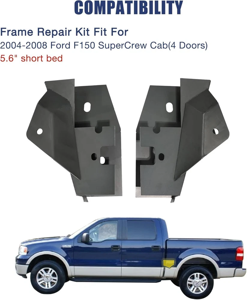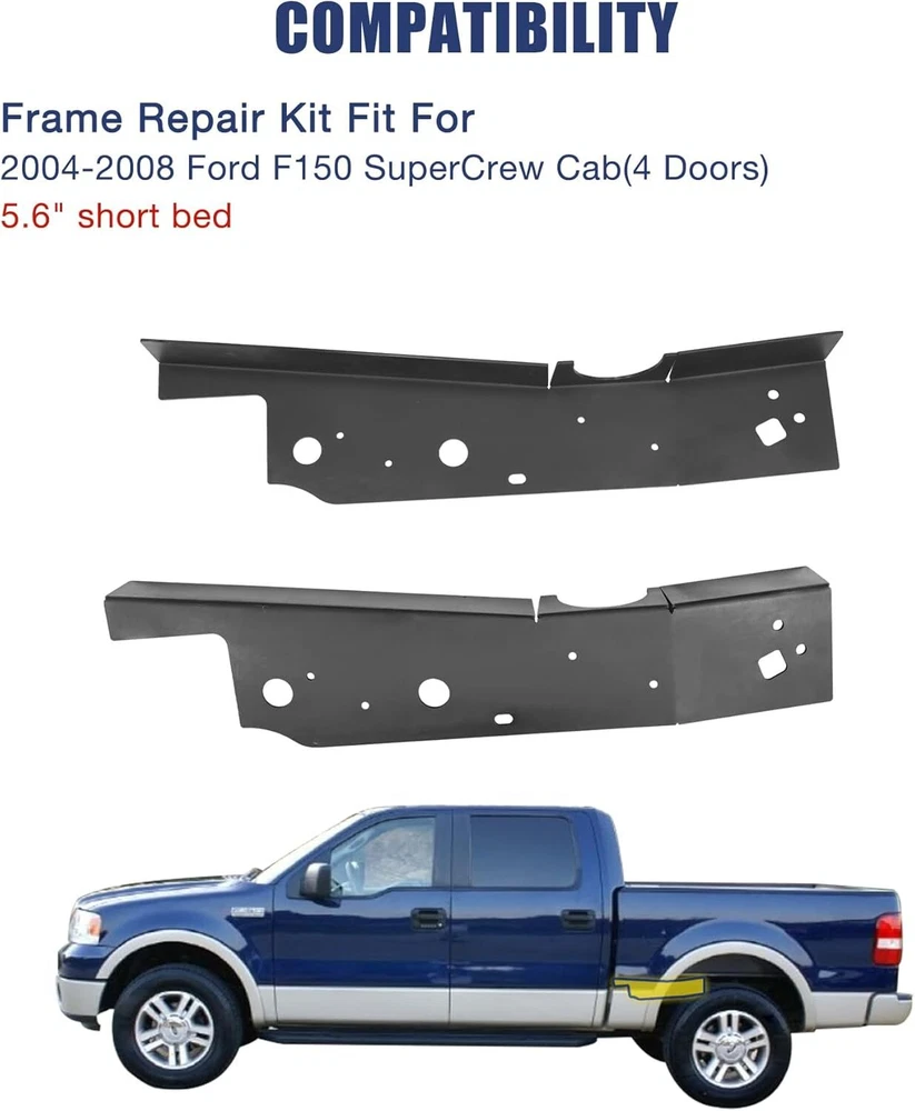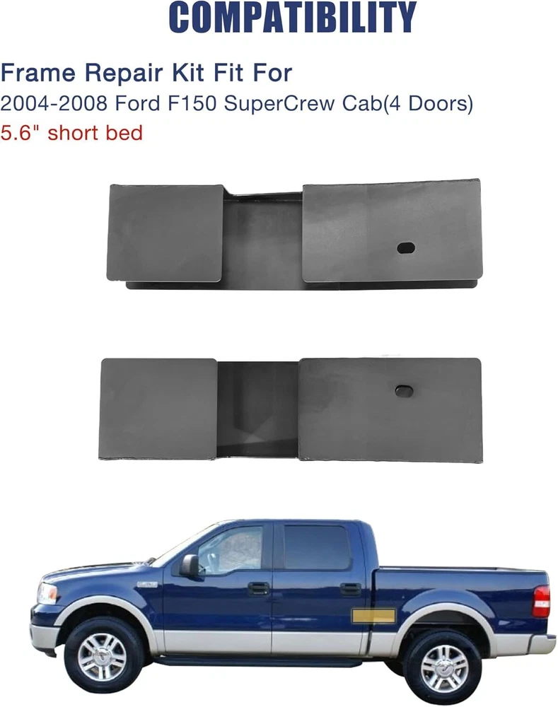 Choose the right frame repair kit which fits for 2004-2008 Ford F150 Free Shipping on this item Model C684/C1442/C1786/C1787/C1785/C1378 Choose the right frame repair kit which fits for 2004-2008 Ford F150 Fast Free Shipping 30 Day Return Policy Full Factory Warranty Product Details Note: Any Free Shipping Promotion is Valid to the 48 contiguous states. for Alaska, Hawaii, Puerto Rico, Guam,Virgin Islands and Samoa, extra shipping fee will be charged. ABOUT THIS ITEM C1786: Center Rear Frame Repair Kit Fit for 2004-2008 Ford F150 Super Crew Cab 5.5" Short Bed Frame Repair Compatibility: The center rear frame repair fits for 2004-2008 Ford F-150 Super Crew Cab 5.5' short bed (4 doors) Premium Quality: Our frame repair kit is constructed from premium materials, each component of the frame repair kit is expertly CNC CUT, ensuring long-lasting durability and reliable performance for your truck Easy Installation: The center rear frame repair kit is designed for straightforward installation, just cut off the damaged frame and weld the center rear frame repair over the original frame Function: The frame repair was 16 inches long and designed to repair the frame between the rear cab mount and rear fuel tank crossmember Special Design: We have galvanized the surface of the frame rust repair, which can prevent oxidation and extend service life of the truck C684: Mid Frame Rust Repair Kit Fit for 2004-2008 Ford F150 Crew Cab 5.6' Short Bed Frame (4 Doors) 【Fitment】Frame repair kit is fits 2004-2008 Ford F150 - Crew Cab - 5.6' Bed. Engineered to match the design and dimensions of original components. 【Material】Center frame repair kit is made of quality carbon steel, precision CNC cut.Thicker than your existing frame.Surface electrogalvanizing is easy to weld. 【Cost-effective fix】Frame repair kit allows you to repair a rusted or damaged chassis frame rather than replacing the entire frame, greatly reduce repair costs. 【Improved design】Re-engineered with improved drainage.Our design includes drain holes to prevent future corrosion and rust. 【Function】 Frame repair fit for Ford F150 is to repair the cabs mid frame section which starts at the transmission cross member and end just before the forward rear leaf spring mount. C1787:Over Axle Frame Repair Kit Fit for 2004-2008 Ford F-150 Crew Cab 5.5' Short Bed Frame Replacement (4 Doors) COMPATIBILITY: The over axle frame repair replacement only fits for 2004-2008 Ford F-150 Crew Cab 5.5' short bed (4 doors) Premium Quality: The frame repair kit is made of premium quality steel and precision CNC cut, which can improve the rust resistance of your vehicle Function: The frame repair was 25 inches long and designed to repair the frame between the spare tire crossmember and the rear bump stop SPECIAL DESIGN: We have galvanized the surface of the frame rust repair ,which can which can improve the stability of the mid frame repair kit's corrosion, rust and oxidation resistance Easy to install: Just clean the damaged frame and weld the over axle frame repair over the original frame C1442:Full Center Frame Rust Repair Kit Fit for 2004-2008 Ford F150 SuperCab (2.5 Doors) 5.5' & 6.5' Bed Frame Repair COMPATIBILITY: Ford full mid frame repair kit fits for 2004-2008 Ford F150 Super Cab (2.5 doors) 5.5' & 6.5' Bed Frame Repair . EASY TO INSTALL:Just weld the f150 frame repair kit to the top of the frame ,which starts at the transmission crossmember and ends before the front and rear leaf spring mounts, without removing the cab mounts. HIGH QUALITY MATERIALS: The center frame repair kit is made of high quality steel through advanced CNC cutting technology. SPECIAL DESIGN: We have galvanized the surface of the ford mid frame rust repair ,which can which can improve the stability of the mid frame repair kit's corrosion, rust and oxidation resistance. FUNCTION: The ford frame repair kit can repair the F-150 super cabs driver and passenger side center frame section,which can proteGet your ford back on the road. C1785:Front Frame Rust Repair Kit Fit for 2004-2008 Ford F150 Super Crew Cab 5.5" Short Bed Frame Repair Fitment: The front frame repair fits for 2004-2008 Ford F-150 Super Crew Cab 5.5' short bed (4 doors) models Premium Quality: Our front frame repair kit fit for f150 is crafted from premium materials and CNC CUT, which can ensure durability and provide a perfect fit and seamless integration with your truck Easy Installation: Designed for ease of use, the front frame repair kit just cut off the damaged frame and weld the front frame repair over the original frame, making it a perfect choice for both professional mechanics and DIY truck enthusiasts Function: The frame repair was 25 inches long and designed to repair the frame before the front transmission crossmember, which can safeguard your truck from corrosion and prolong the lifespan of your F150 and maintain its structural integrity Special Design: We have galvanized the surface of the frame rust repair, which can improve the stability of the mid frame repair kit's corrosion, rust and oxidation resistance C1378:Mid Frame Rust Repair Kit Fit for 2004-2008 Ford F150 Regular Cab 8‘ Long Bed Frame Repair Kit COMPATIBILITY: Ford mid frame repair kit only fits for 2004-2008 Ford F150 Regular Cab 8‘ Long Bed and don't fit for F150 Regular Cab Short Bed. HIGH QUALITY MATERIALS: Ford frame rust repair kit is made of CNC high-tech cutting and high-quality carbon steel precision refining, which can well guarantee the quality of frame repair kit. SPECIAL DESIGN: Ford mid frame is designed to restore ford frames. The galvanized coating on the surface prevents wear and tear over long periods of time on the road, increasing the life of the truck. FUNCTION: The ford frame rust repair can restore the mid frame 6 inches after the transmission crossmember to the rear leaf spring mount, increasing the body's resistance to corrosion as well as rust, helping to get Ford back on the road! EASY TO INSTALL: Just 