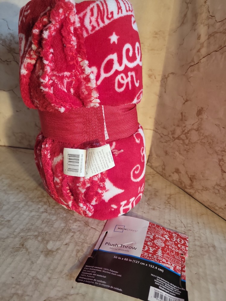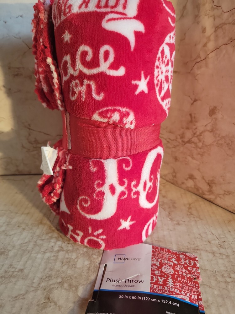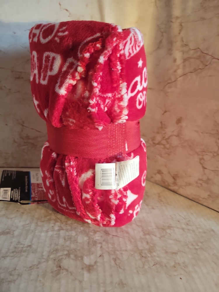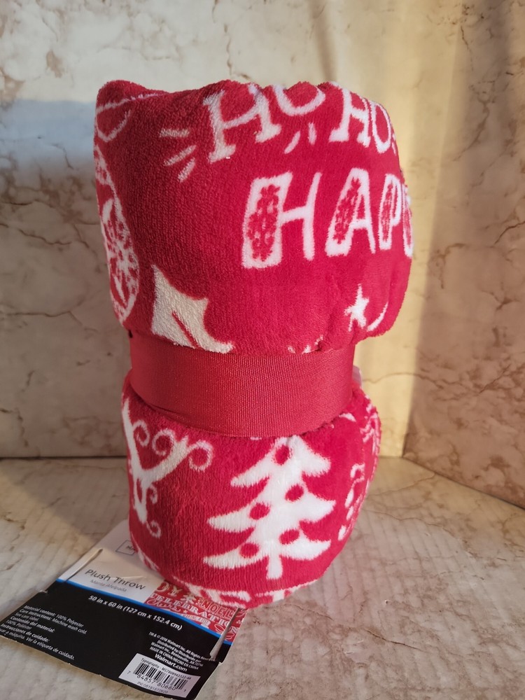 Christmas 50in x 60in Soft Plush Throw ~ Noel - Joy - Happy Holidays - HO HO HO. These are just some of the words adorning this cheerful, cozy,warm throw. New, coming from a tobacco free home. (PB6)...