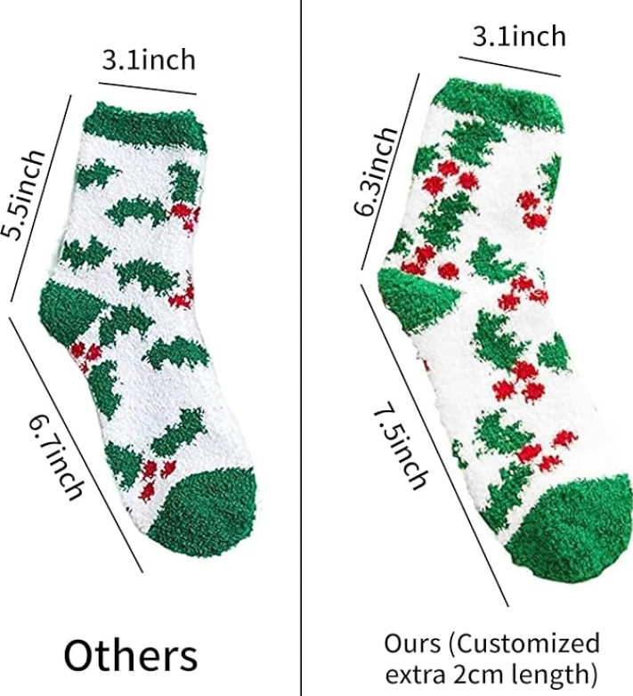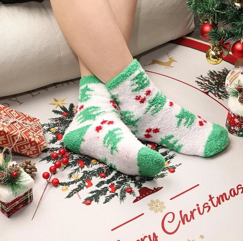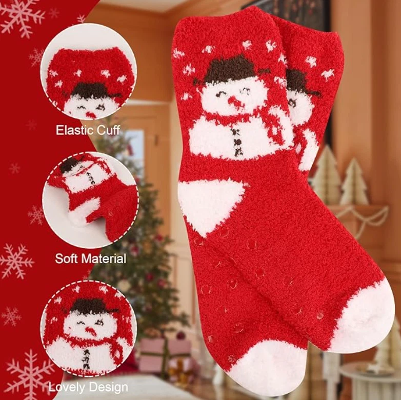 Adult multi-color christmas holiday socks,pack of 6(3 paris and 12 paris,choose what you needed),only from October Elf,which are used for men and women, classic Santa Claus,colorful snowflakes, reindeer and different innovative pattern designs. At the same time, a unique designed Christmas card is presented to send the best greetings for the Christmas Day Size - These socks are one size to fits most person we have made our factory to lengthen extra 2 cm for the bottom and tube (Length:9.4inch- 10.6inch ).All styles are Customized Size and Anti-slip on the bottom.Built for comfort, so everyone can enjoy these Christmas holiday socks. Material - 97% polyester 3% spandex.providing the best and comfortable wearing experience for your daily activities even sleeping. Our 6-Pack fuzzy socks are ultra soft, cozy, warm and stretchable. Giving your feet maximum cozy and keeping you warm in cold Winter, also fluffy socks will protect your toe, ankle and sole, Keep enough body temperature to make exercise more relaxing Multifunctional - Assorted 6 Pairs socks,color as picture shown.Perfect gifts for the holiday season.Also these Christmas fluffy socks are a perfect slipper socks with non-slip grips,perfectnice length, above the ankle, no squeezing your feet in shoes around the house and your toe is not hurting, easy to slip on as well as off Best Gifts Option(Christmas Gift Box Included)-The Christmas fluffy socks are not only a Christmas wearing at home,but also a perfect gift choice for Christmas Holiday,Thanks Giving Day and New Year Festival!Giving your families or friends several pairs of warm socks will move them a lot.For any quality problems in 6 months,send us messagesat any time