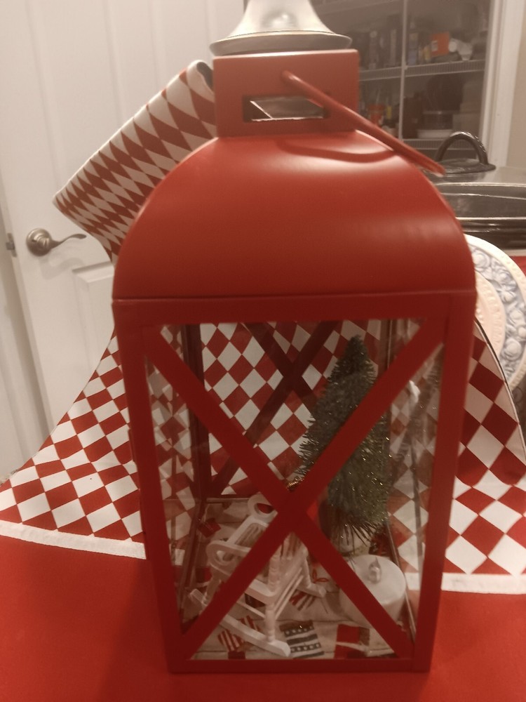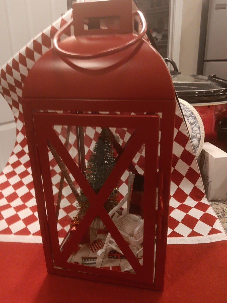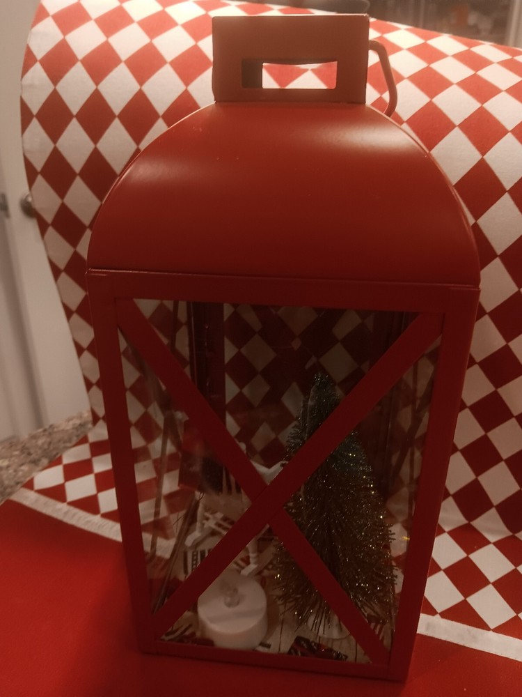 Bring the Christmas spirit to your home with this beautifully designed lantern featuring a rocking chair scene. Crafted with durable metal and painted in a vibrant red color, this lantern is perfect for anyone who loves the festive season. The lantern is a perfect addition to your holiday decorations and can be used as a centerpiece or placed on a mantle. This collectible item from Mainstays is a must-have for any holiday enthusiast. The lantern comes with a single unit quantity and is not handmade. Get into the holiday spirit with this wonderful Christmas lantern and create a cozy atmosphere in your home. 12.5 x 5.5 x 5.5