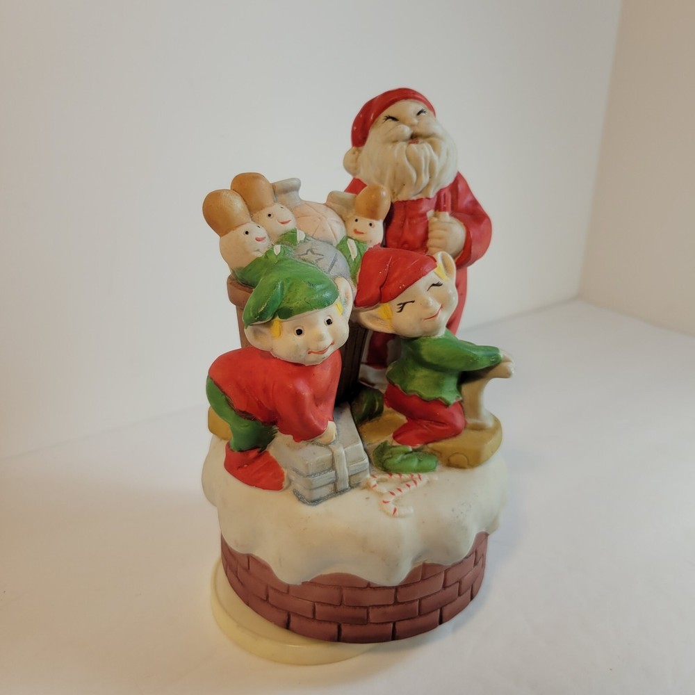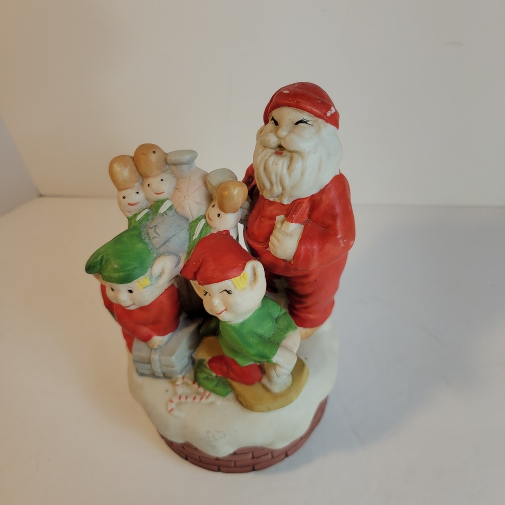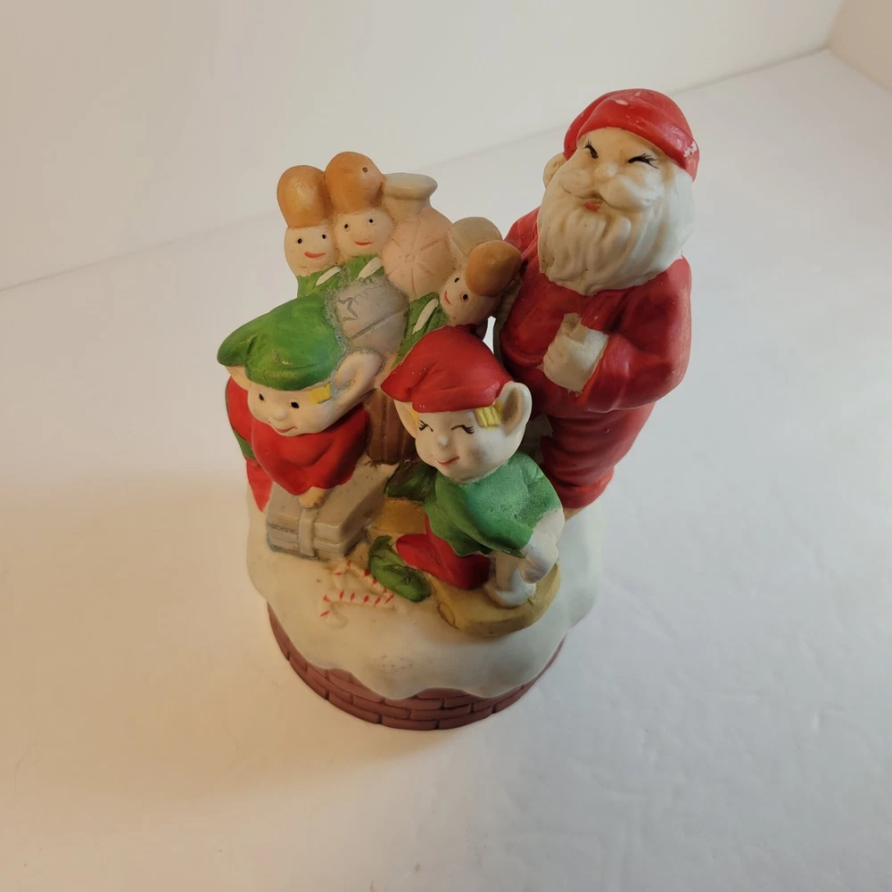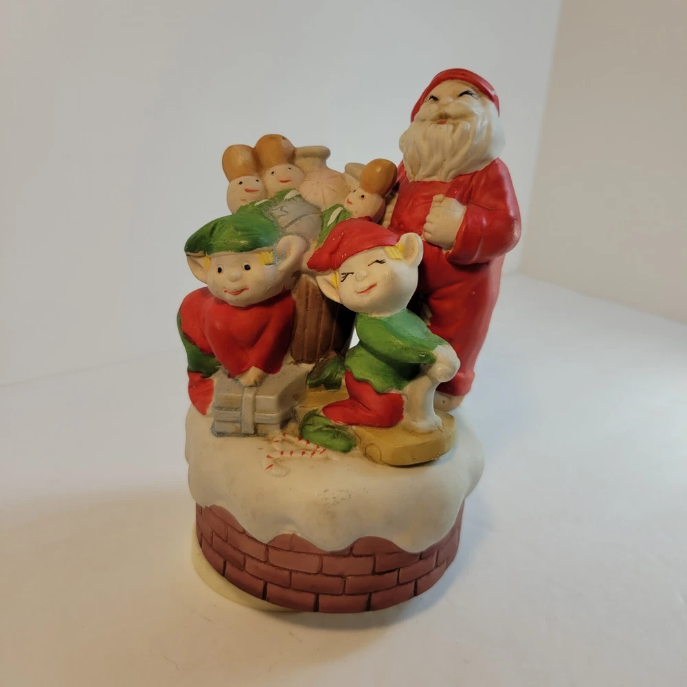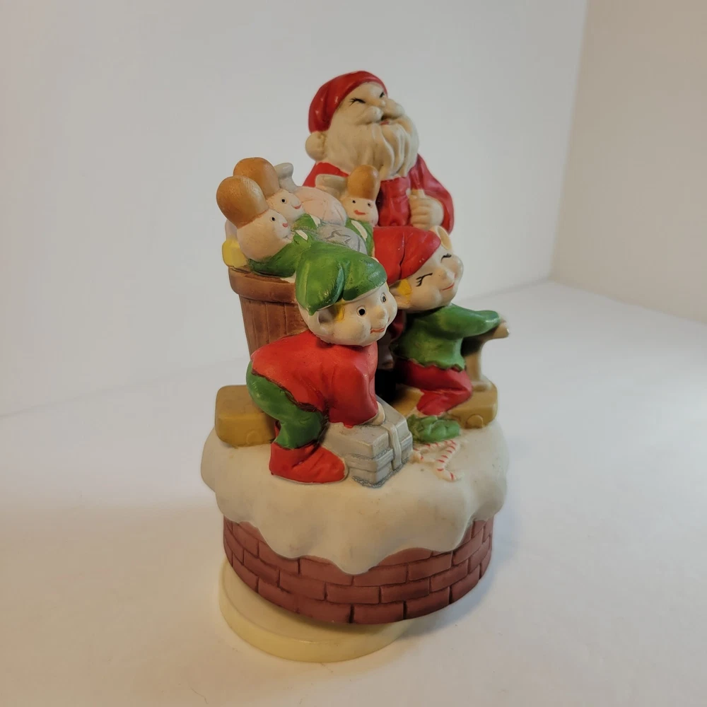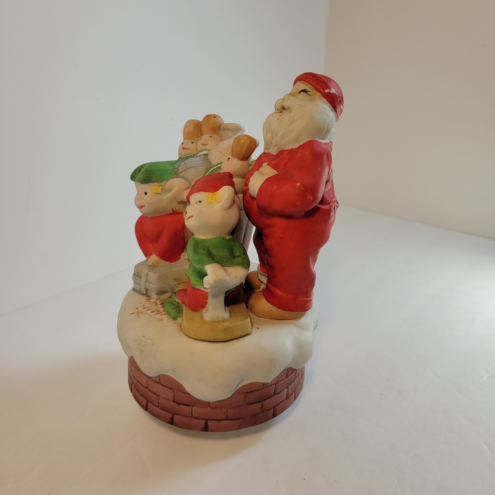 Christmas Santa Music Box with Elves and Nutcrackers Porcelain Wind Up Vintage...