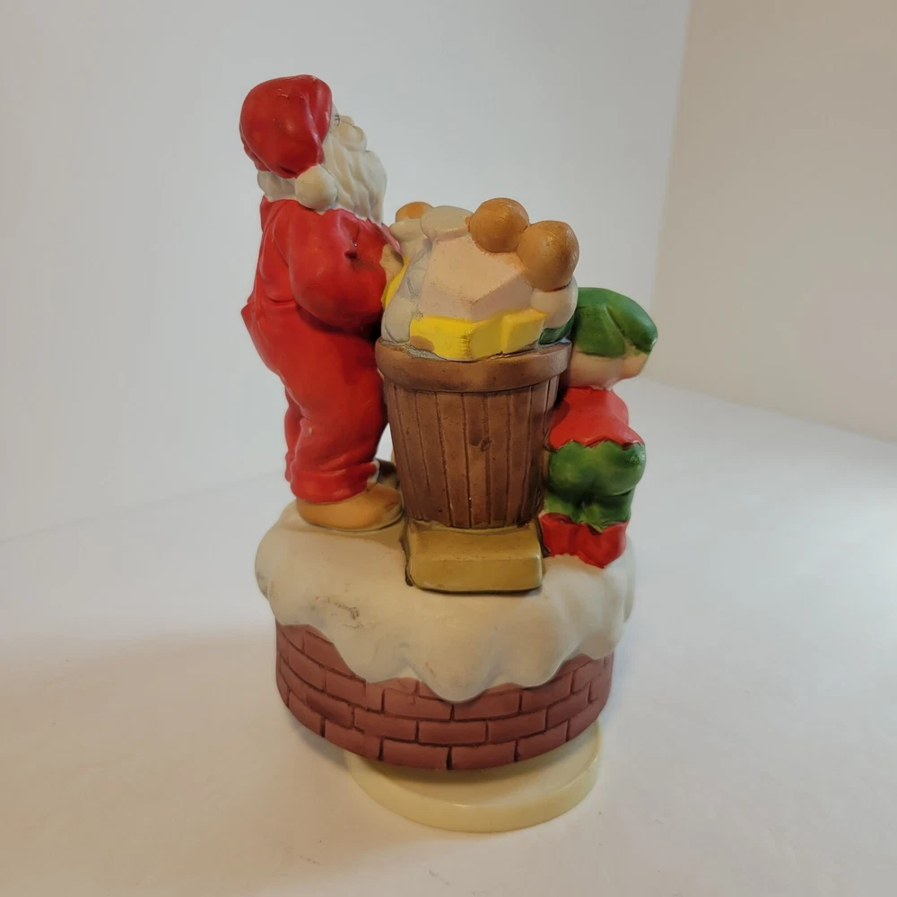 This adorable Christmas music box is a festive delight! The porcelain Santa, elves, and nutcrackers are beautifully hand-painted, and the wind-up mechanism plays classic holiday tunes clearly. It's a charming, vintage-style decoration that adds nostalgic warmth to any Christmas display—perfect for gifting or as a keepsake. The quality craftsmanship and cheerful design make it a must-have for collectors and holiday lovers!
