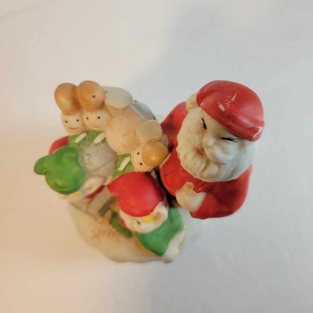 Christmas Santa Music Box with Elves and Nutcrackers Porcelain Wind Up Vintage