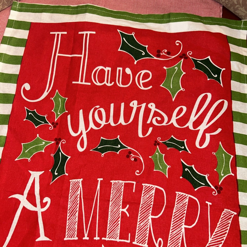 Christmas Tea Towel DII Have Yourself A Merry Little Christmas Green Res White...