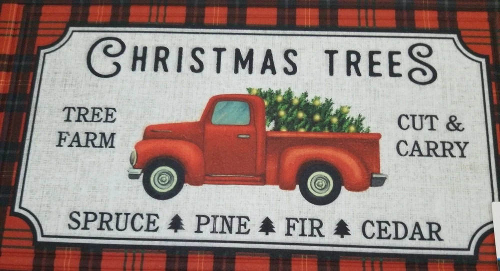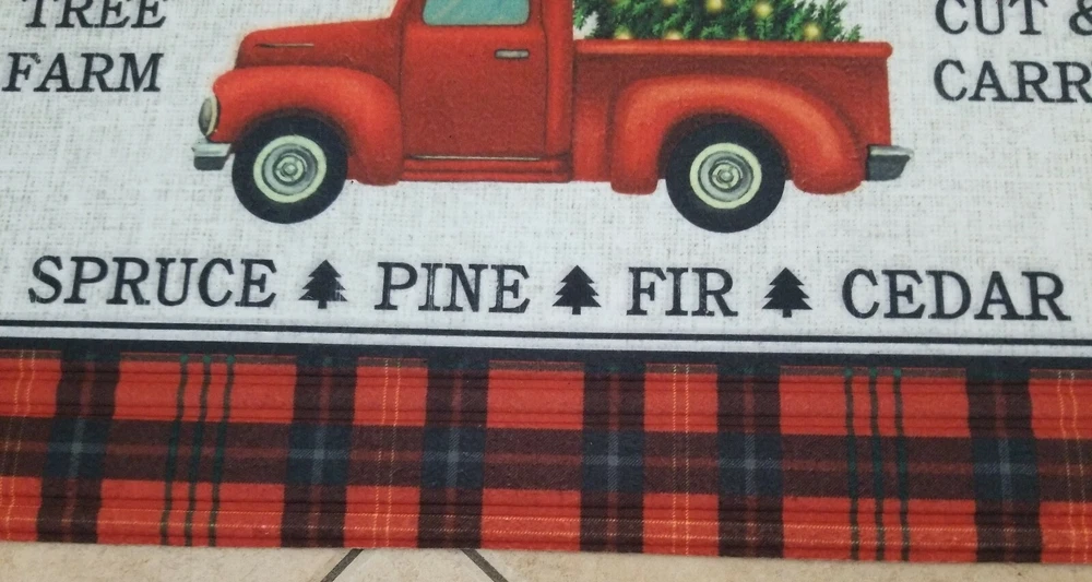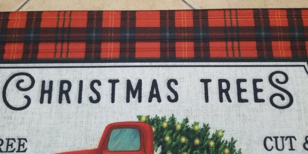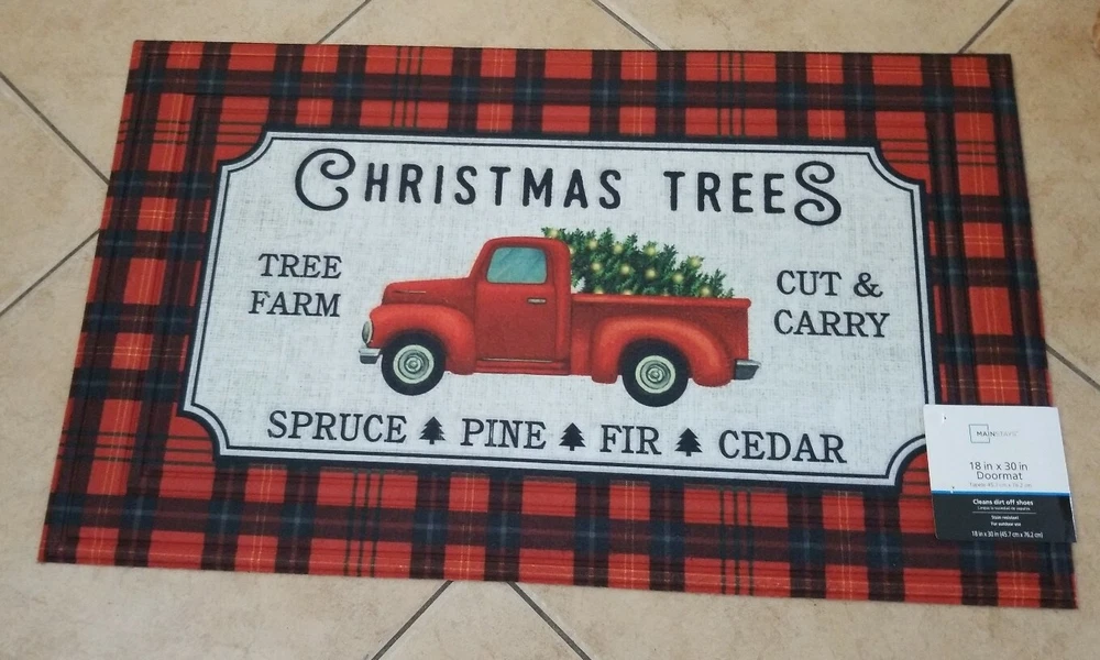 Up for sale is a NEW Christmas Trees Red Pick Up Truck Door Mat!! Item is New...Never Used...still has tag attached. Mainstays 18" x 30" Doormat Doormat says: Christmas Trees Tree Farm Cut & Carry Spruce Pine Fir Cedar Red, green, black & white in color Material contents: fabric face: 100% polyester ***For shipping the doormat is going to get rolled up to fit in a box to cut down price for shipping*** Nice Christmas Doormat Perfect for the Holidays Please look at all photos to see what you are buying....Happy Shopping!!!
