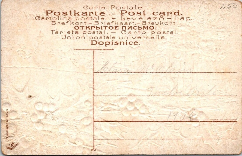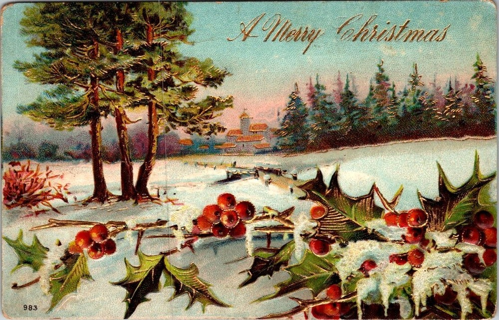 Christmas Vintage Postcard Winter Snowy Town Village Scene Winding Road Holly. Please inspect the pictures carefully as they are the best description, thanks. These are antique/vintage items and could have creases, bends, tears, missing corners/edges, please review the pictures carefully. thank you. I have been selling on eBay since 2004 and have always strived to maintain a 100% feedback rating, which is very important to me. I will always provide honest, trustworthy and friendly service to all my customers by stating an accurate description, shipping rate and shipping frequency. My goal is to receive a 5-star rating on each transaction if you are pleased with the transaction, if you are not, please contact me and I will make every effort to resolve the issue to your satisfaction. Please see the photographs for best description, most items are vintage or antique and have some form of minor defect such as bumped corner, crease or visual defect. If you have any questions, please ask i will get back to you ASAP. Thank You