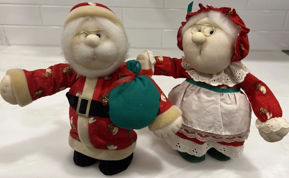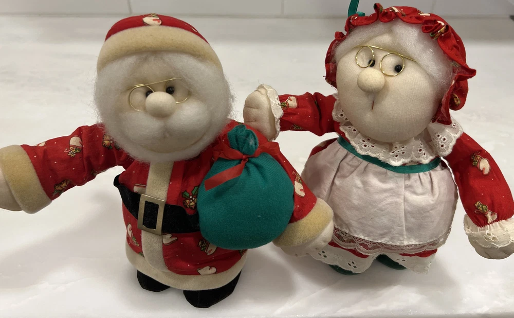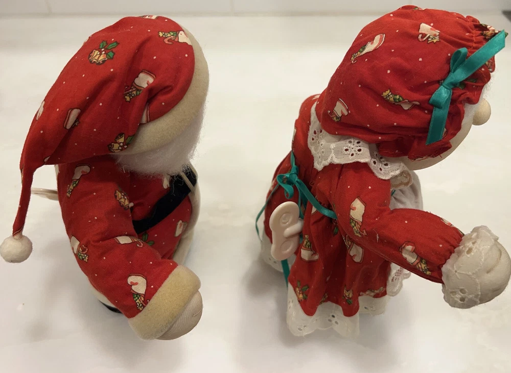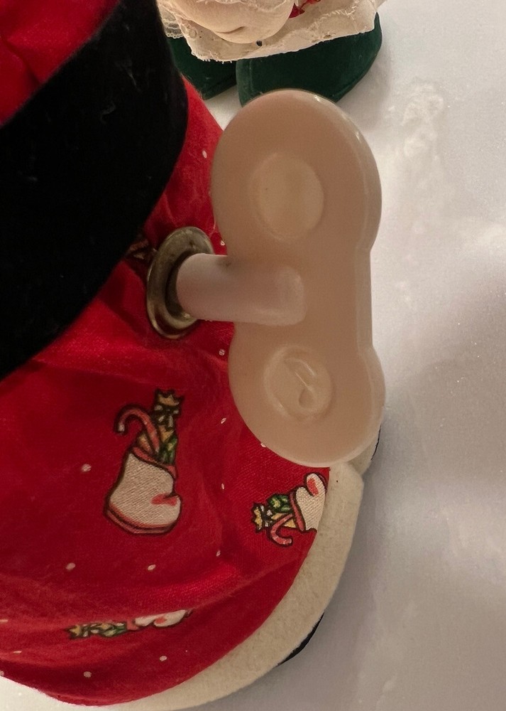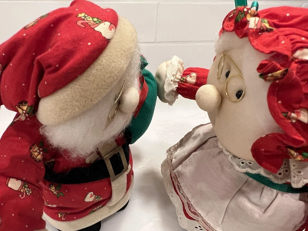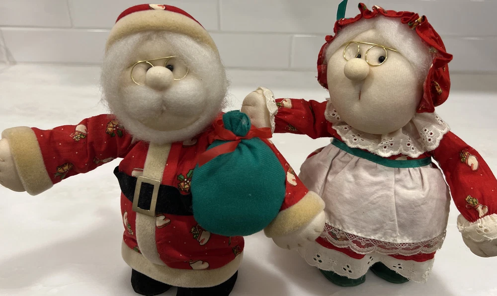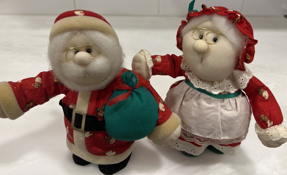 Vintage Santa and Mrs. Claus Animated 10” Wind Up No Batteries Made In Taiwan. These Are A Fantastic Wind Up Claus Couple. They Played Christmas music and their heads and arms move together. These Are Vintage; Please Inspect the Pictures As These Are The Actual Items Being Shipped. Dance with Santa and Mrs Claus Be Ready to get In The Christmas Spirit when That Time of Year Rolls Around.