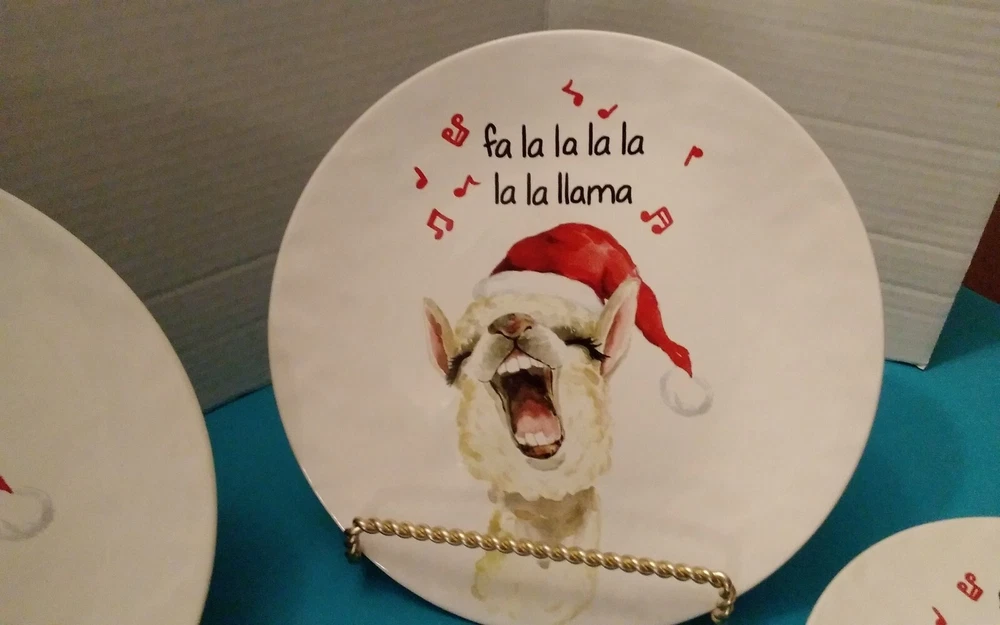 Christmas set of 6 Pier 1 Imports~Fa La La La Llama~Salad Luncheon 8.75” Plates...