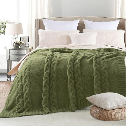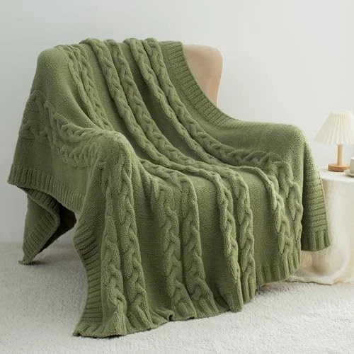 This chunky knit blanket is unbelievably soft and cozy—perfect for curling up on the couch or bed! The microfiber material is plush, warm, and lightweight, making it great for year-round use. Love the cable texture and rich olive green color. It arrived quickly, feels high-quality, and stays fluffy even after washing. Definitely worth it for the price—total game-changer for chilly nights!