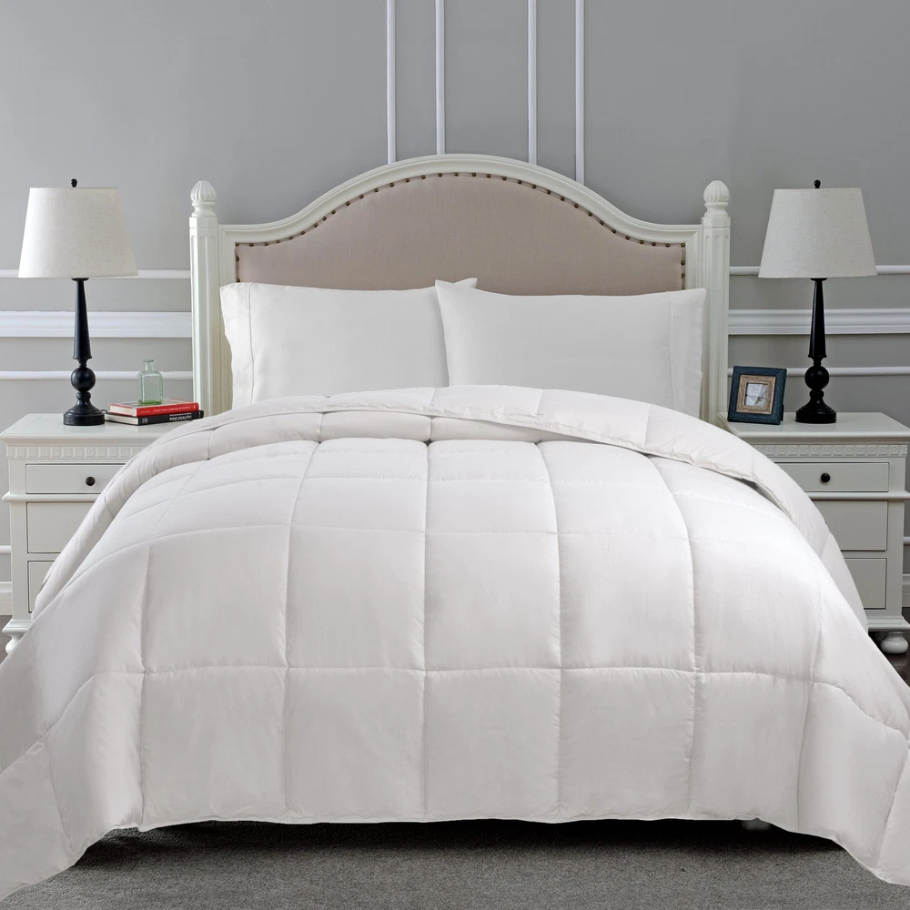 The lightweight and lofty Classic All-Season Reversible Down Alternative Comforter is the perfect year round bedding. The polyester fill allows air to circulate for a warm yet breathable comforter for any season. The Microfiber shell is excptionally soft and comfortable, sure to complement any room and provide a restful night’s sleep. The box-quilt design ensures that the filling will not shift, keeping an even cover throughout the night. Our durable comforter is easy to clean, while still providing the luxurious feel of pure down bedding. SUBTLE SOFTNESS. With an ultra soft shell made of the finest 100% Microfiber and lofty Down Alternative Polyfill, this colorful comforter / duvet insert excels in comfort. The microfiber shell is luxuriously soft and fade resistant, and the hypoallergenic fill provides for those with allergies to goose down comforters and feather bedding PERFECT FIT. This Twin size comforter measures 62" x 86" to fit your Twin or Twin XL bed. With 30 oz of white down alternative polyfill, this medium weight comforter is perfect for year round use COLORFUL BEDDING. Available in a wide range of bright, bold, and neutral colors to fit in a master bedroom, boy's or girl's room, college dorm bed, or guest room. Complete your bedroom set with 's collection of mattress toppers, mattress protectors, blankets, and pillows. Our wide range of premium quality down alternative and memory foam bedding will make your bed so cozy, you'll never want to leave EASE OF CARE. The sewn-through baffle box construction, crafted with double needle stitching, prevents our fill from shifting. Our Classic Comforter comes conveniently packaged in its own reusable comforter storage bag. This beautiful comforter is machine washable, and can be tumble dried on low heat to re-fluff. We recommend removing all bedding promptly from dryer to reduce any wrinkling. Always care label instructions for best results