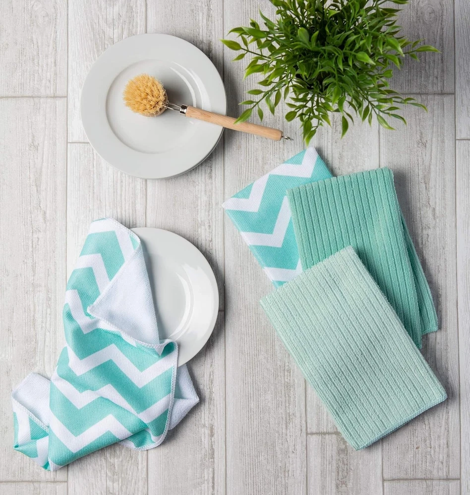 These microfiber dishtowels are a game-changer! Super absorbent, they soak up spills fast and leave no streaks or lint behind. The chevron design is stylish, and they work great for dishes, counters, and even polishing glass. Love that they reduce the need for harsh chemicals—just water works wonders. Super durable and easy to toss in the wash. A must-have for any kitchen!