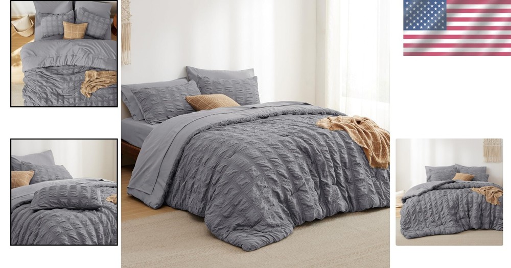 Cloud-Like King Seersucker Bedding Set - Soft & Cozy with All Essentials ‹ › ‹ › ‹ › ‹ › ‹ › ‹ › ‹ › ‹ › ‹ › ‹ › Cloud-Like King Seersucker Bedding Set Experience the luxurious embrace of our Cloud-Like King Seersucker Bedding Set, designed to elevate your sleeping experience with exquisite style and comfort. Elegant Home Decor Combines the intricate seersucker craft with a charming plaid pattern. Perfect for adding a sophisticated touch to any bedroom or as a thoughtful gift for loved ones. Ideal for special occasions such as Mother’s Day, Women's Day, Christmas, or simply to show you care. Cloud-like Warmth Features a premium microfiber filling blend that offers the perfect balance of weight and warmth. Creates a serene, cloud-like sleeping environment that cradles you to sleep. Extra Soft Made from fine brushed microfiber for exceptional softness. Smooth and breathable fabric ensures maximum comfort with no rustling noise, allowing for a peaceful night’s rest. Easy Care Crafted with high-quality microfiber and a unique dyeing technique to resist fading, shrinking, and seam slippage. Machine washable in cold water on a gentle cycle; tumble dry low for easy maintenance. Inclusive Bedding Set Includes all essentials: 1 comforter (104" x 90"), 2 pillowcases (20" x 40"), 2 pillow shams (20" x 36" + 2"), 1 fitted sheet (78" x 80" + 14"), and 1 flat sheet (108" x 102"). Transforms your bare mattress into a cozy sleep haven, perfect for year-round comfort and warmth. Why Choose Our Cloud-Like King Seersucker Bedding Set? Indulge in ultimate comfort and elevate your sleep sanctuary with our Cloud-Like King Seersucker Bedding Set. Designed with elegance and softness in mind, this bedding set empowers you to rest deeply and dream sweetly in a refined atmosphere. Transform your evenings and gift yourself or your loved ones a touch of luxurious coziness. Order your Cloud-Like King Seersucker Bedding Set today, and experience the art of refined relaxation! Shipping Free & Fast Shipping - We offer free shipping to most of the USA with a normal delivery time of 3-7 days. However, due to the current situation, additional delivery time (up to 3 weeks) may be required for some items. Alternative Carriers - We may use alternative carriers (e.g. USPS, FedEx, UPS, etc.) to ensure your package arrives safely and on time. Due to the use of multiple carriers, we are unable to provide a tracking number automatically. Handling Time - Orders are processed and shipped within 1-2 business days of receiving cleared payment. Shipping Restrictions - Shipping to Alaska, Hawaii, Puerto Rico, Guam, and other US territories may incur shipping charges or delivery restrictions. Please contact us before ordering, or your order can be refunded/cancelled. State Restrictions - There may be restrictions based on your state of purchase. For example, certain items may not be shipped to California due to state regulations. Contact for Tracking Updates - If you require tracking updates or have any concerns about the delivery of your order, please feel free to contact us, and we will be happy to assist you. Return 30-Day Hassle-Free Returns - We want you to be completely satisfied with your purchase. If you are not, you can return the item within 30 days of receiving it for a full refund or exchange. Easy Return Process - To start a return, simply contact us and we will provide you with a prepaid return shipping label and detailed instructions. Restocking Fee - There are no restocking fees for returns. However, the buyer is responsible for return shipping costs if the return is not due to a seller's error. Refund Processing Time - Refunds will be processed within 5 business days of receiving the returned item in its original condition. Payment We accept all major credit cards, PayPal, and Apple Pay for your convenience. Your payment information is secure and encrypted to ensure a safe and seamless transaction. Please complete your payment within 3 days of purchase to avoid any delays in shipping. Feedback Your feedback is extremely important to us. We strive to provide the best products and customer service possible. If you are satisfied with your purchase, please take a moment to leave us a positive review. If you have any concerns or issues with your order, please contact us before leaving negative feedback. We are committed to resolving any problems and ensuring your satisfaction. Contact Us If you have any questions or concerns, please feel free to reach out to our customer support team. You can contact us through the eBay messaging system. We are available Monday to Friday, 9:00 am to 5:00 pm EST, and we will do our best to respond to your inquiry within 24 hours. Buy it now and enjoy a pleasant shopping experience! UPC: Not Set Model: Not Set Set Includes: Comforter,Fitted Sheet,Flat Sheet,Pillowcase,Pillow Sham Material: Microfiber,Polyester,Seersucker,Brushed Microfiber Character: Not Set Features: Breathable,Cooling,Hypoallergenic,Lightweight,Stain Resistant,Easy Care Theme: Modern Care Instructions: Do Not Bleach,Machine Wash Department: Adults Room: Bedroom Labels & Certifications: Not Set Size: King Type: Comforter Set Brand: Unbranded Color: Grey Fill Material: Microfiber Pattern: Plaid Item Width: Not Set Item Length: Not Set MPN: Not Set Character Family: Not Set Number of Items in Set: 7 Insulation: All Seasons Style: Modern Season: All Country/Region of Manufacture: Not Set Closure Type: No Closure Thread Count: 201-400 Drop Length: Not Set GSM (Grams per Square Meter): 301 to 450 Product Line: Not Set Personalize: Not Set
