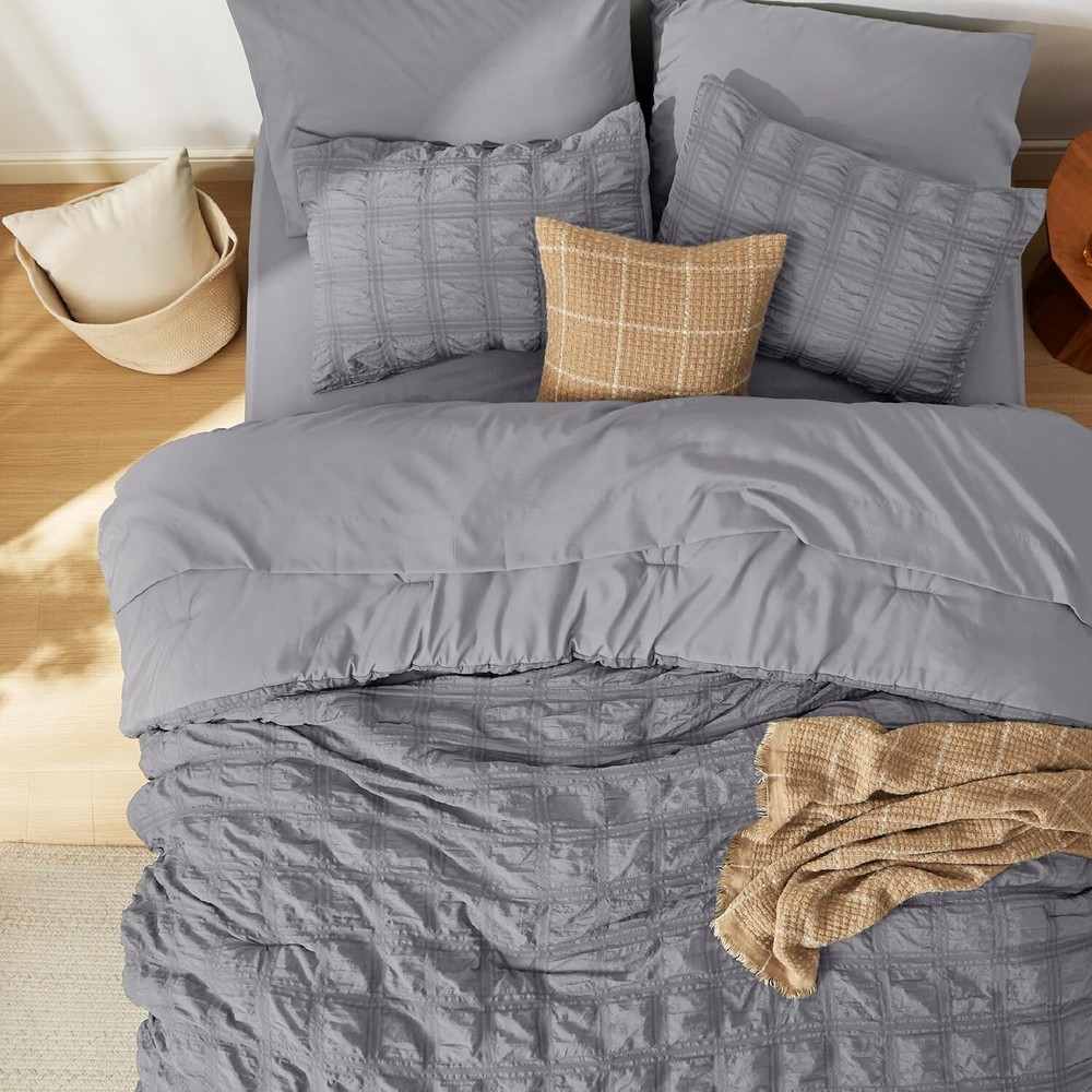 This bedding set is incredibly soft, cozy, and stylish—perfect for a luxurious night’s sleep. The seersucker fabric feels light yet durable, and the elegant plaid design adds a refined touch to any room. It comes with all the essentials, making it a breeze to set up. Great for upgrading your bedroom or gifting to someone special! Highly recommend for comfort and quality.