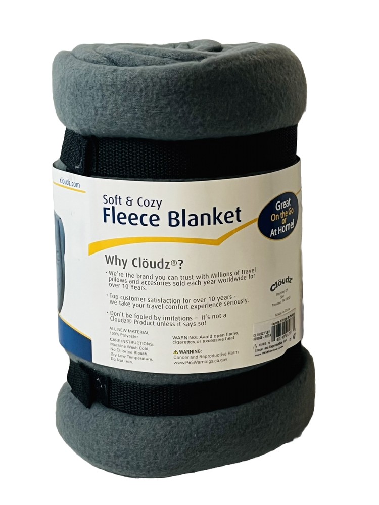Stay cozy and comfortable on your travels with the Cloudz Travel Blanket in Gray. Measuring 50x60 inches, this rectangular shaped blanket is crafted from 100% polyester, making it warm and perfect for any travel or for curling up on the couch at home. The travel blanket is ideal for teens, adults, and kids and can be used anywhere. The Cloudz Compact Travel Blanket is easy to care for with machine washable instructions. The blanket is compressed for easy storage, with hook and loop straps and is perfect for on-the-go, making it an excellent addition to your travel essentials. So, whether you're hitting the road or the air, this travel blanket is sure to keep you comfortable throughout your journey.