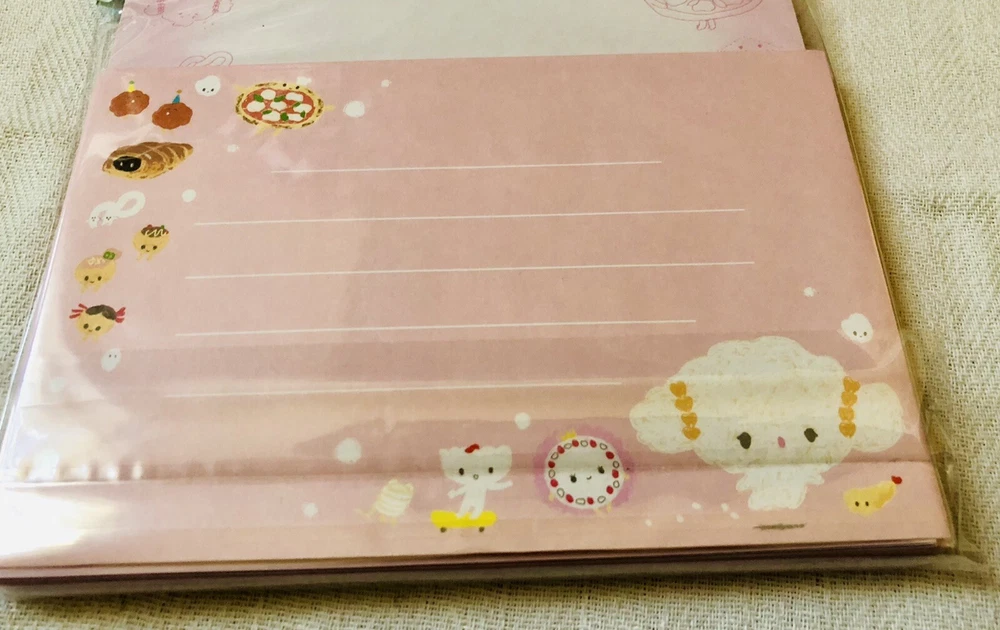 🎀 Cogimyun die cut LETTER SET LOT 2 Designs Japan Import Sanrio US Seller New Cutegift. Will be shipped with tracked USPS shipping. This listing comes with one food set and one heart set! It will also come with a little freebie! Heart design - Small sheet: 4 1/2" H x 4 1/2" L - Large sheet: 7 1/2" H x 6" W - Envelope: 4 1/2" H x 6" L Food design - Small sheet: 4 1/2" H x 4 1/2" L - Large sheet: 7 1/2" H x 6" W - Envelope: 4 1/2" H x 6" L Each set comes with: - 5 sheets of die-cut Memo sheets - 10 sheets of normal letter paper - 10 envelopes Made in Japan Selling from my collection to save up for school. Please note colors on the screen may appear a little different from the actual product. Please feel free to ask any questions you have prior to purchasing the item! I can combine shipping for different items! Just let me know :) Thank you for looking at my listing! Take care and stay safe! No returns please. Some pictures credit to the Sanrio website to show what is included in the pack.