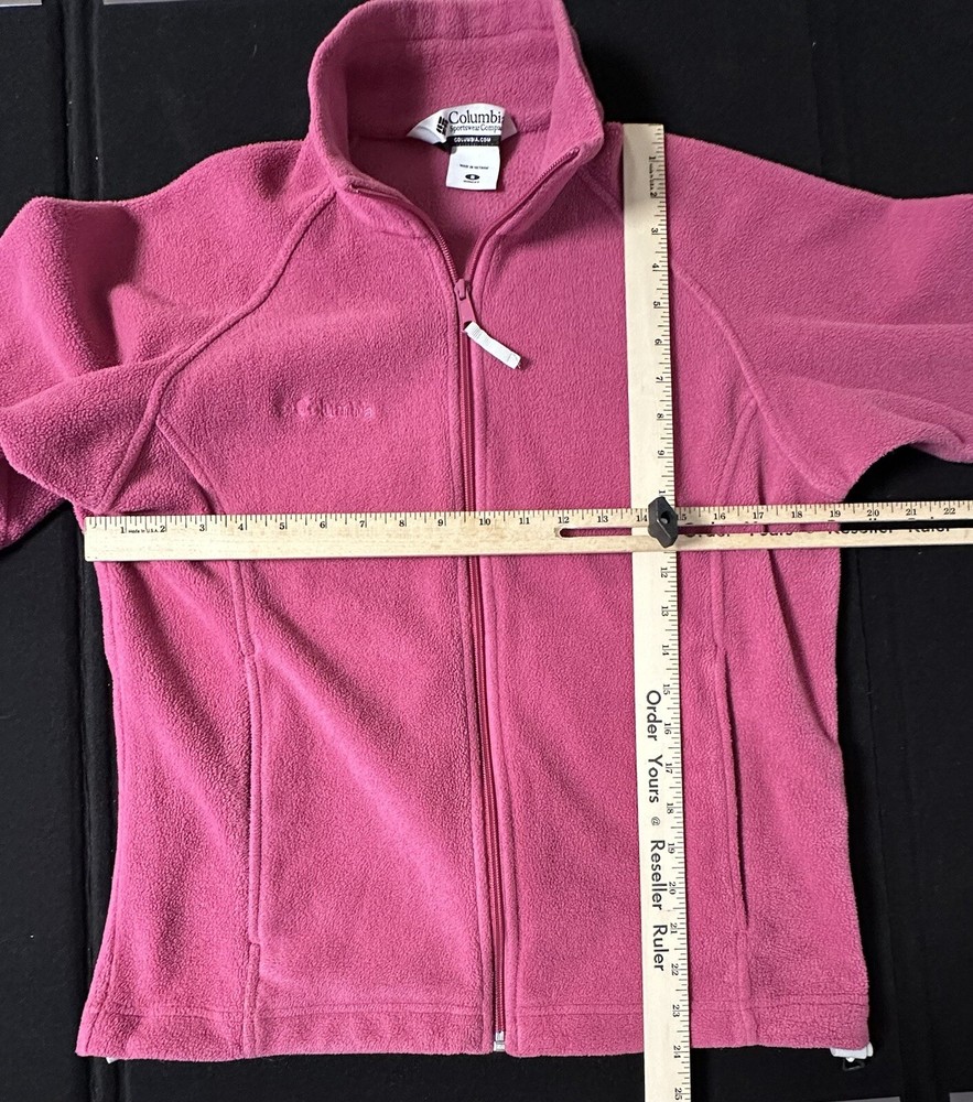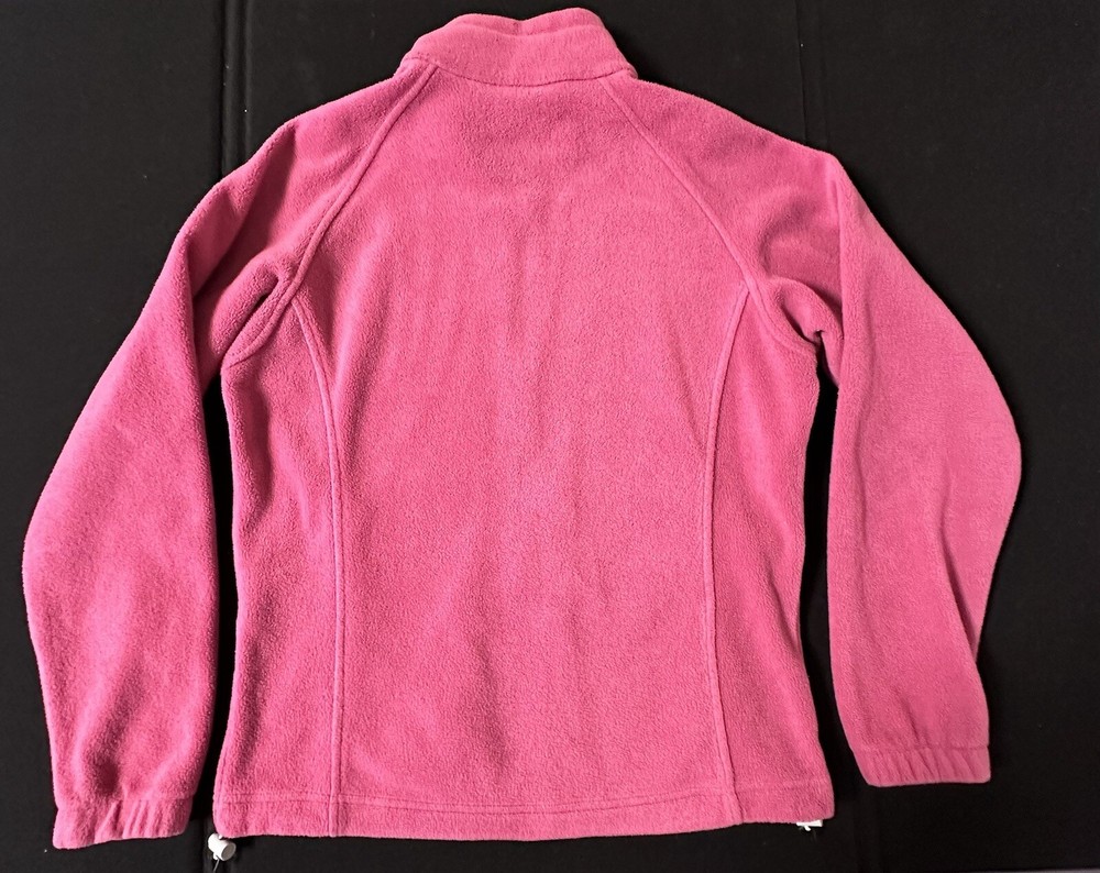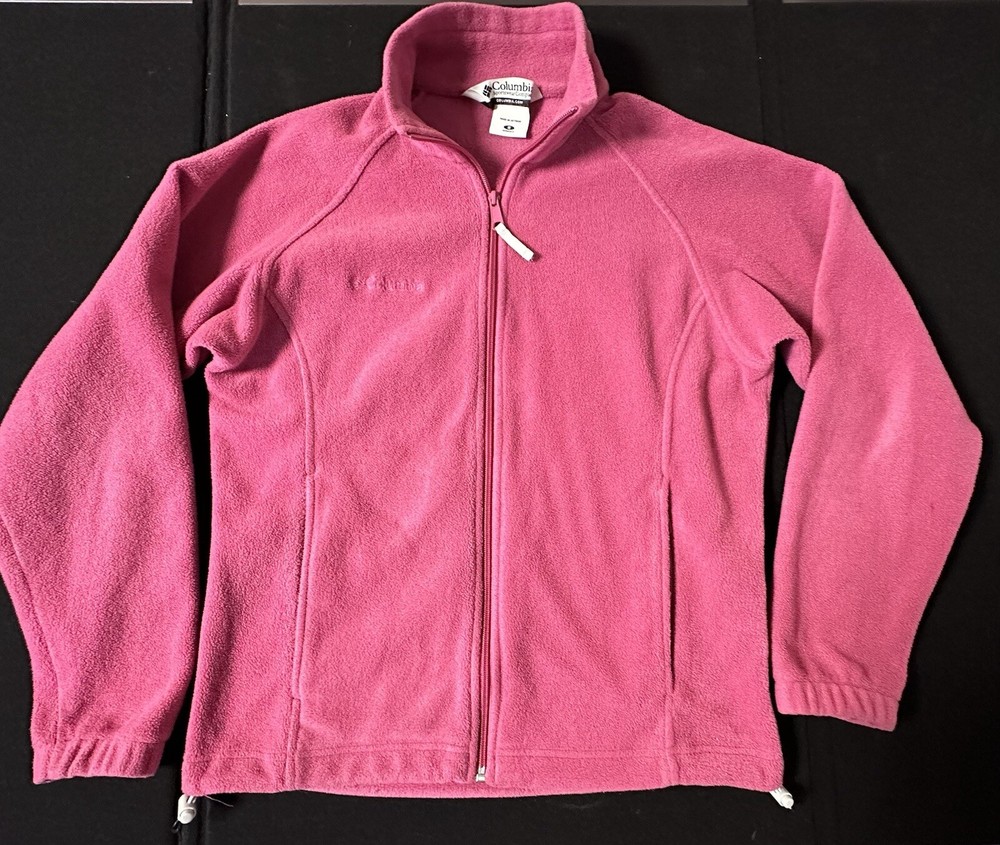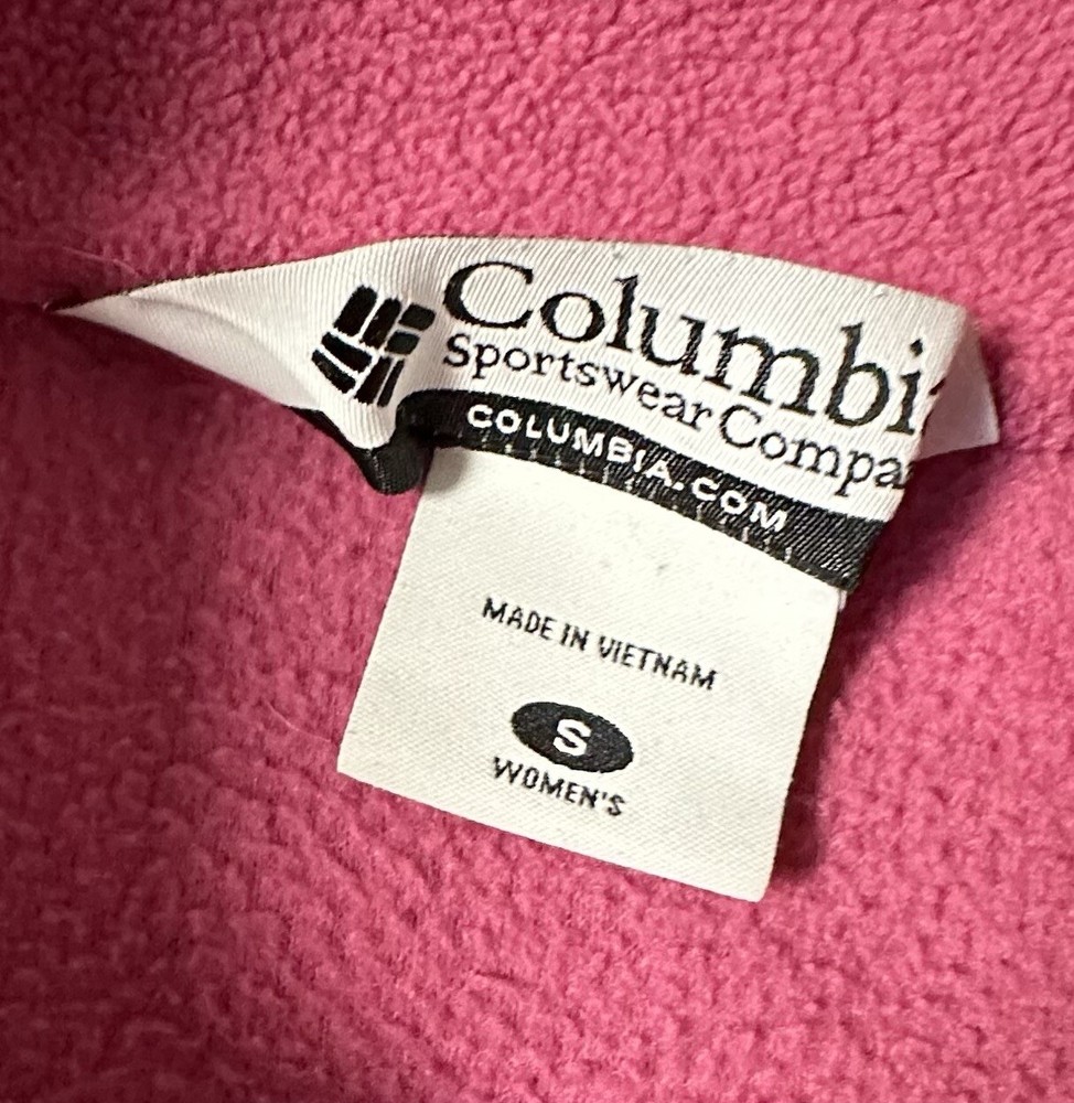 Stay cozy and stylish with this Columbia Fleece Jacket in size Small. The jacket features a full zip closure and long sleeves, making it the perfect outerwear for the fall, winter, and spring seasons. The mid-length design and solid pink color add a touch of casual elegance to your wardrobe. Made of soft and durable polyester fleece fabric, this jacket is machine washable, ensuring easy maintenance. Its unique logo accent and regular fit make it a must-have for any fashion-forward woman. Ideal for casual occasions, this basic jacket is perfect for layering and adding warmth without sacrificing style.