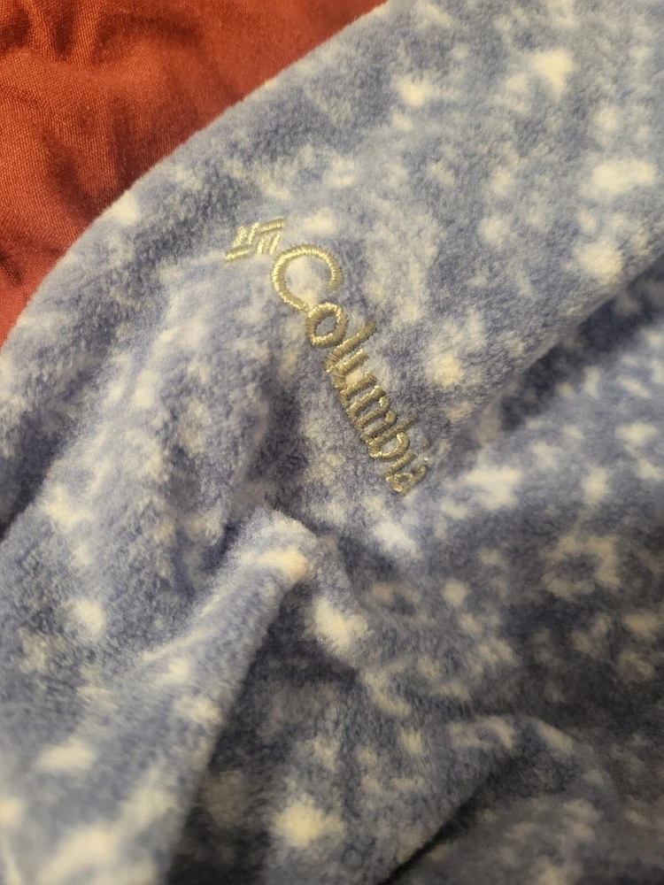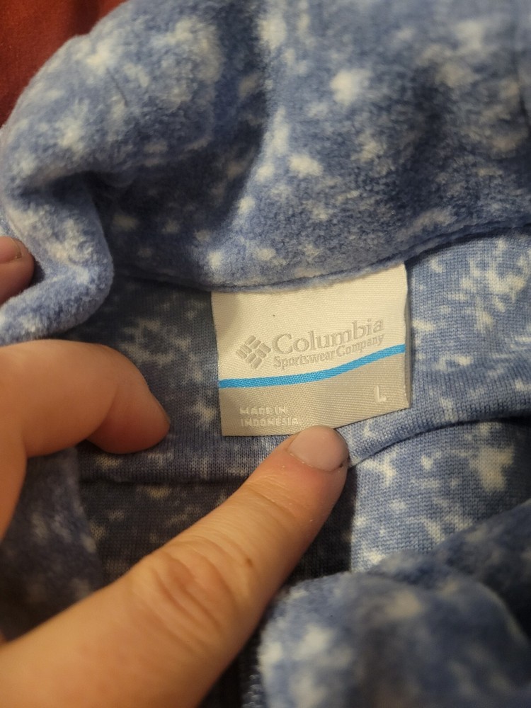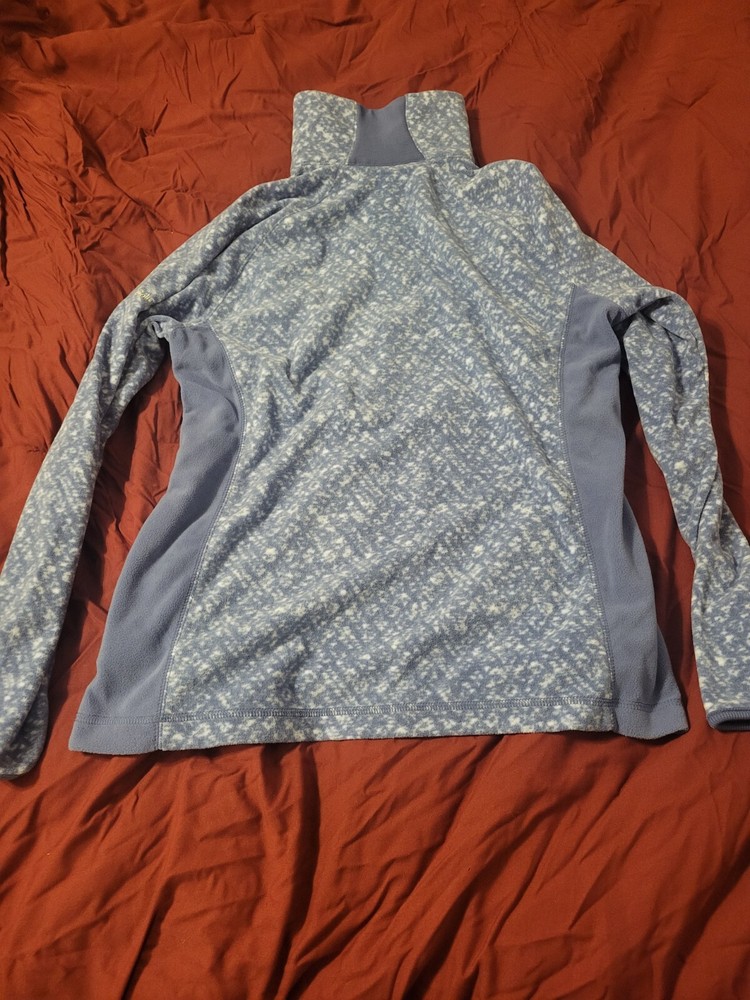 Columbia Pullover Sweater Womans Size Large Fleece Quarter Zip Blue And White Cozy activewear winter sweater Great condition No rips holes or stains...