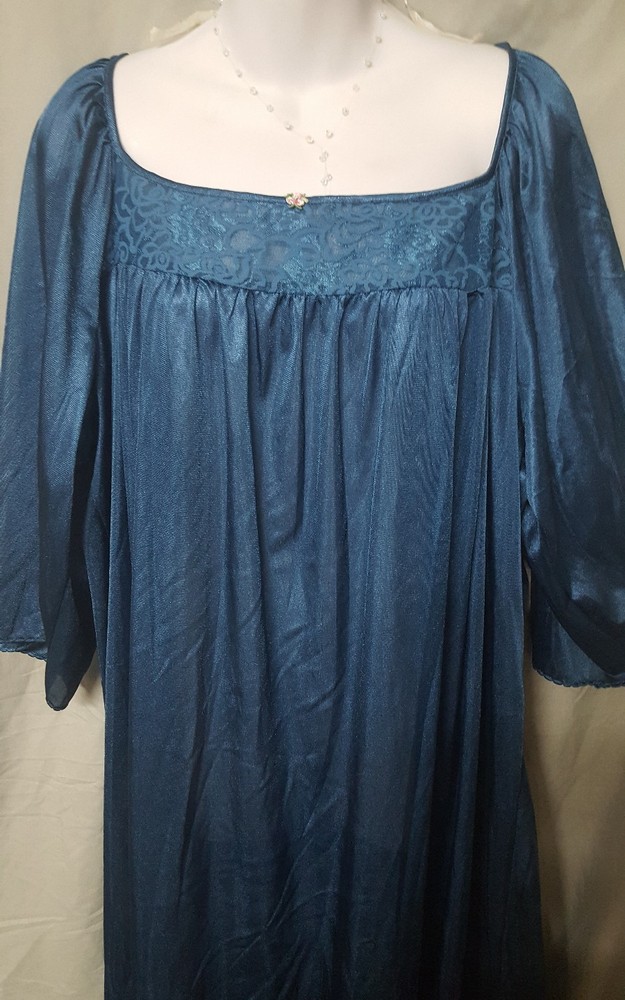 NEW, UNUSED...TAKEN OUT OF PACKAGE TO PHOTOGRAPH ...IT WILL BE EITHER Comfort Choice OR Only necessities DARK TEAL ANKLE LENGTH LIGHTWEIGHT NIGHTGOWN WITH LACE TRIM AND 3/4 SLEEVES...SEMI SHEER SIZE 5X....BUST MEASURES 74" LENGTH MEASURES 51" SLEEVE MEASURES 20" NATIONAL US COMPANY US MATERIALS, ASSEMBLED IN HAITI. FAST SHIPPING US SELLER 100% POSITIVE FEEDBACK THANKS FOR LOOKING...ALWAYS HAPPY TO ANSWER QUESTIONS CHECK OUT MY OTHER ITEMS PLEASE ADD A NOTE TO YOUR ORDER OR MESSAGE ME IF YOU WOULD LIKE DISCREET PACKAGING.