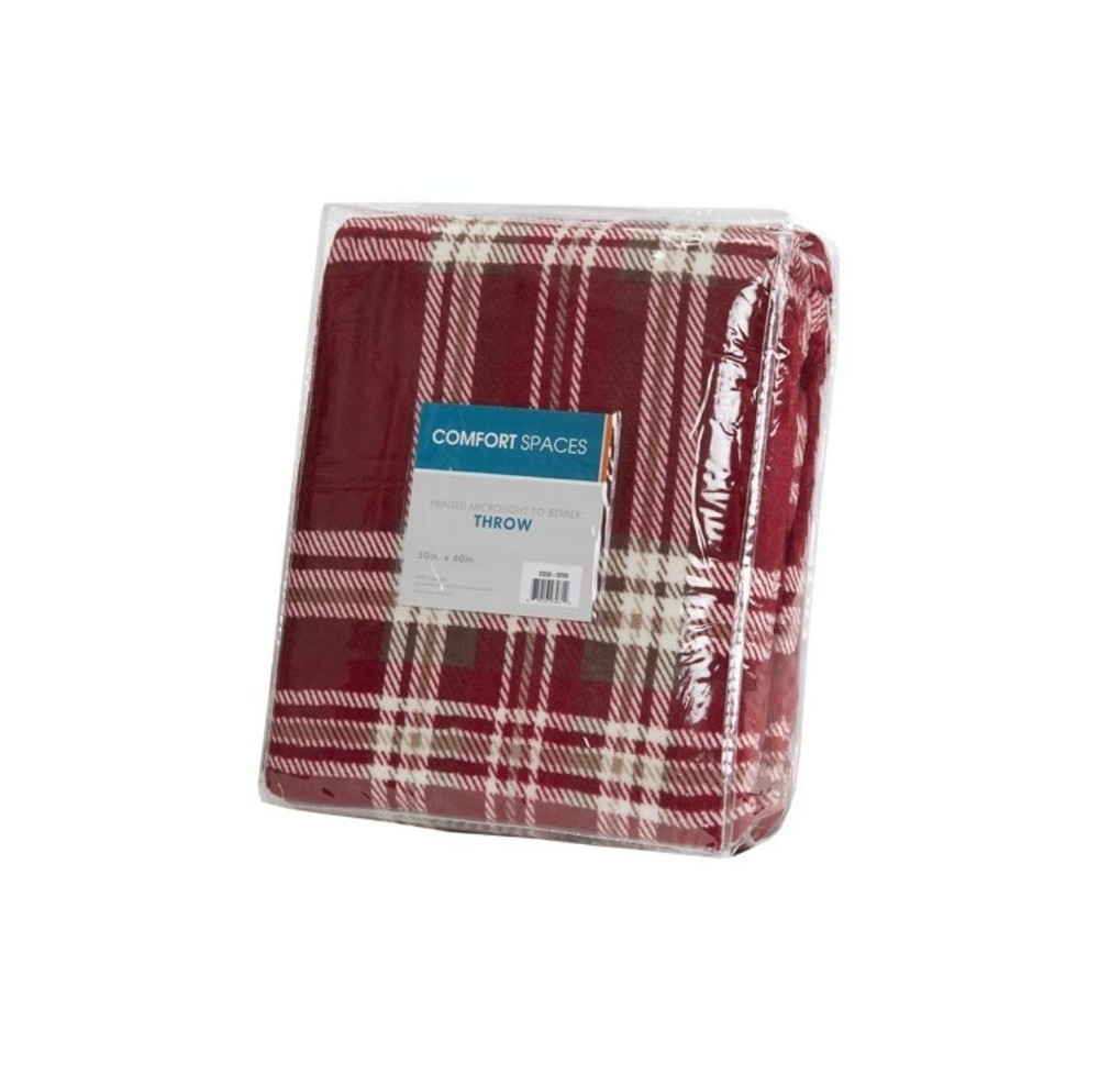 Comfort Spaces Ultra Soft and Cozy Sherpa Couch and Bed, Plush Fleece Reversible. 1 Throw: 50"W x 60"L 100% Micro Sherpa Face: Print Plush, Reverse: Micro Sherpa, Polyester, Hypoallergenic The Plush to Sherpa throw is available in multiple colors and style The pattern printed in makes this throw all the more attractive The lightweight Plush material provides extra smoothness Machine washable for easy care Get warm and cozy this winter with Comfort Spaces Plaid Sherpa/Plush Throw. If all you are planning to do on a chilly weekend is curl up with a book or a cup of coffee on your couch, this throw is going to be your best buddy. The Plush to Sherpa throw is available in multiple colors and style. The pattern printed in makes this throw all the more attractive. It is not just your snuggling buddy but it is also a pretty addition to your home decor. So shop online for this throw today. The lightweight Plush material provides extra smoothness. The reverse side is Sherpa fabric which offers extra warmth, and hence the throw is most suited for all the chilly days ahead. This throw measures 50(W)x60(L) inches.