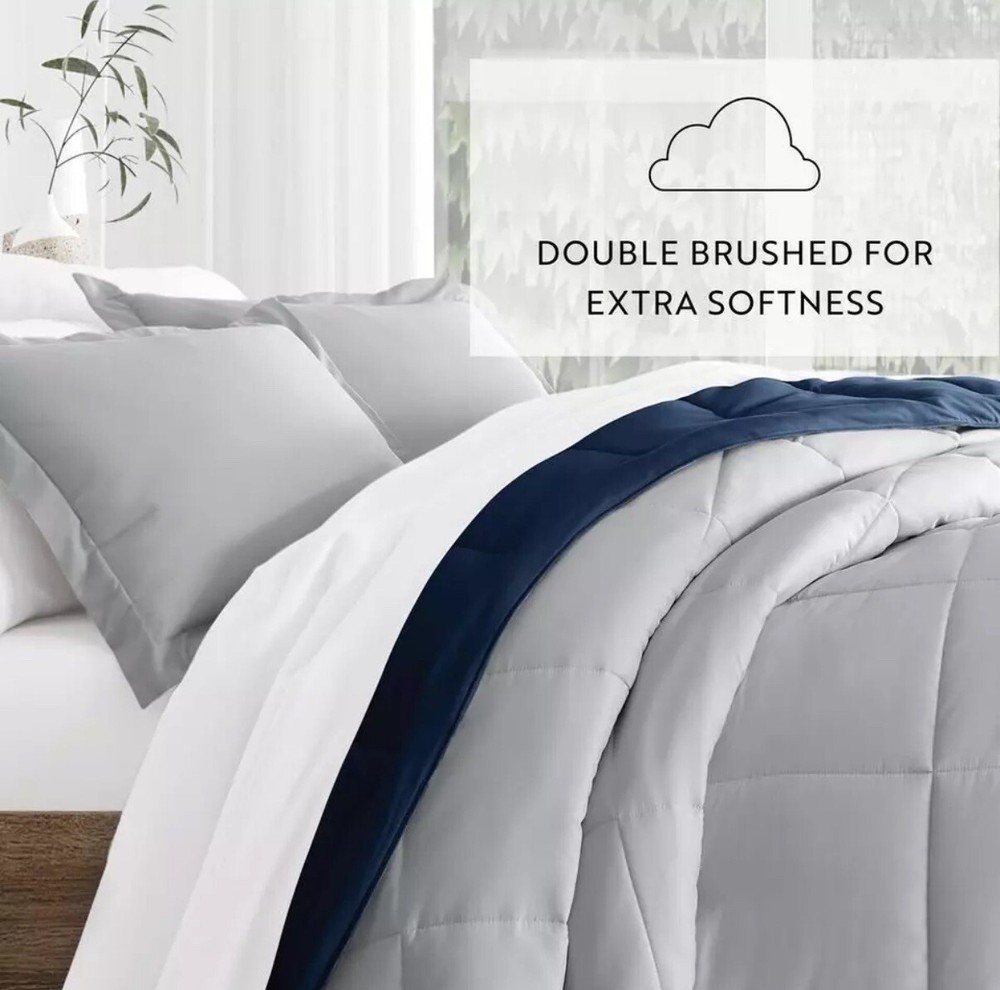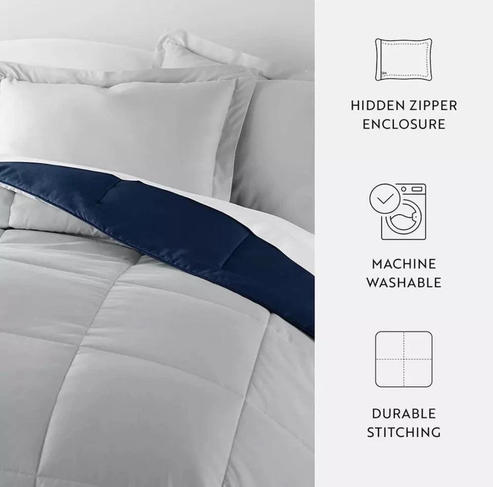 Comforter Down Alternative King/Cal King Soft Microfiber Reversible Navy/Gray. Condition is New with tags. Shipped with FedEx Ground or FedEx Home Delivery....